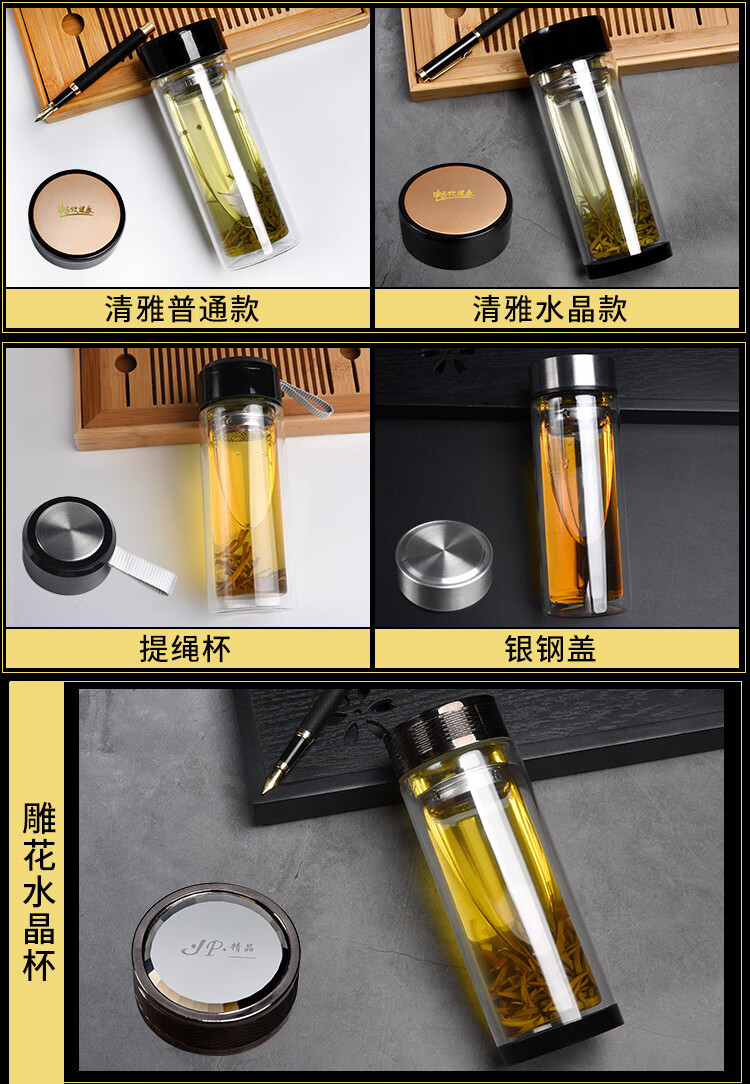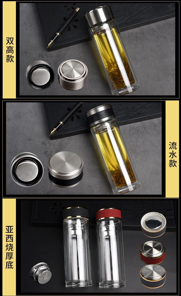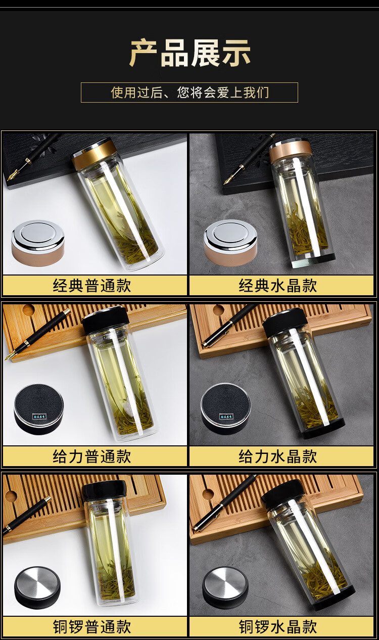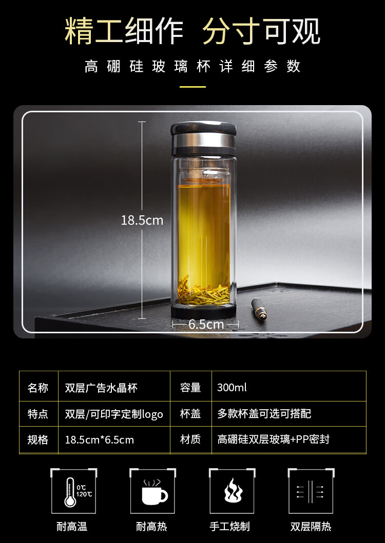 双层玻璃杯透明耐高温隔热茶杯广告杯子礼品水杯 给力加厚 300ml(一个)