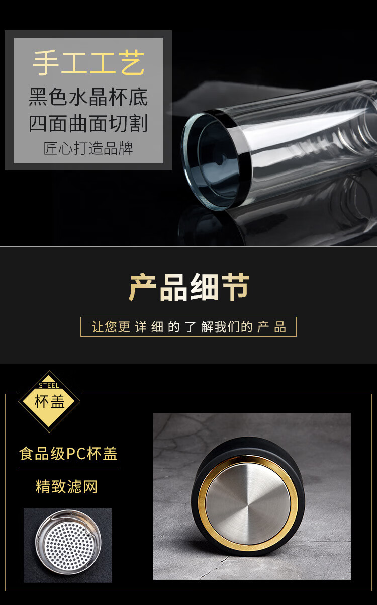 富光 男女士真空不锈钢保温杯 旅行运动水杯子 便携式车载办公茶杯 幽冥黑 500ml