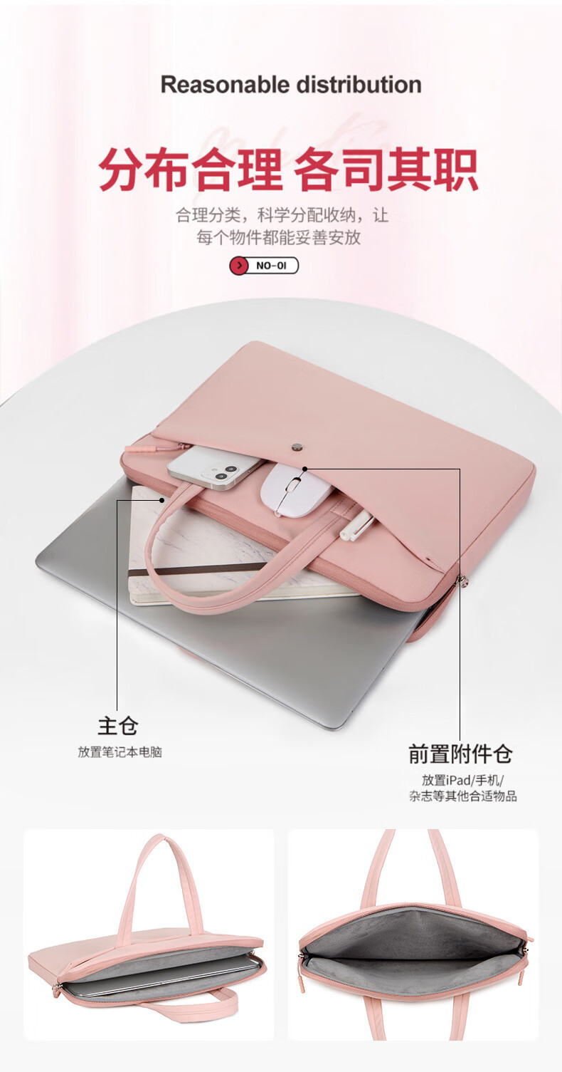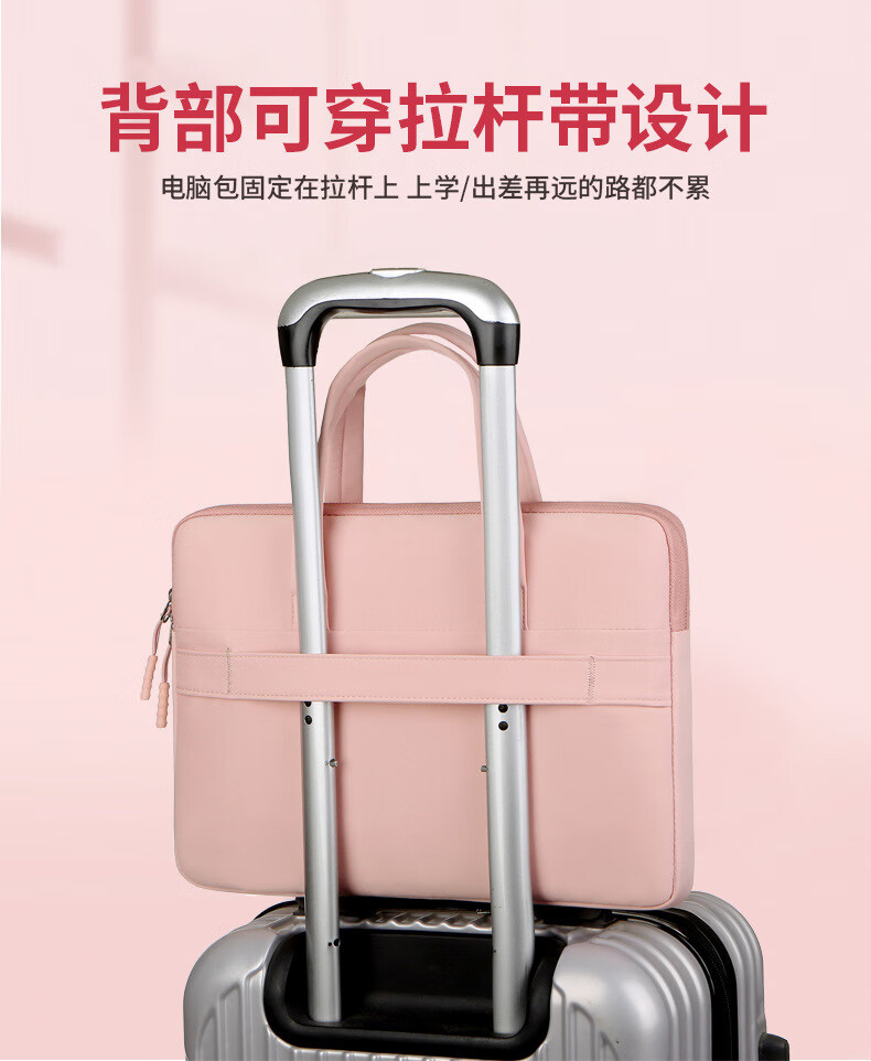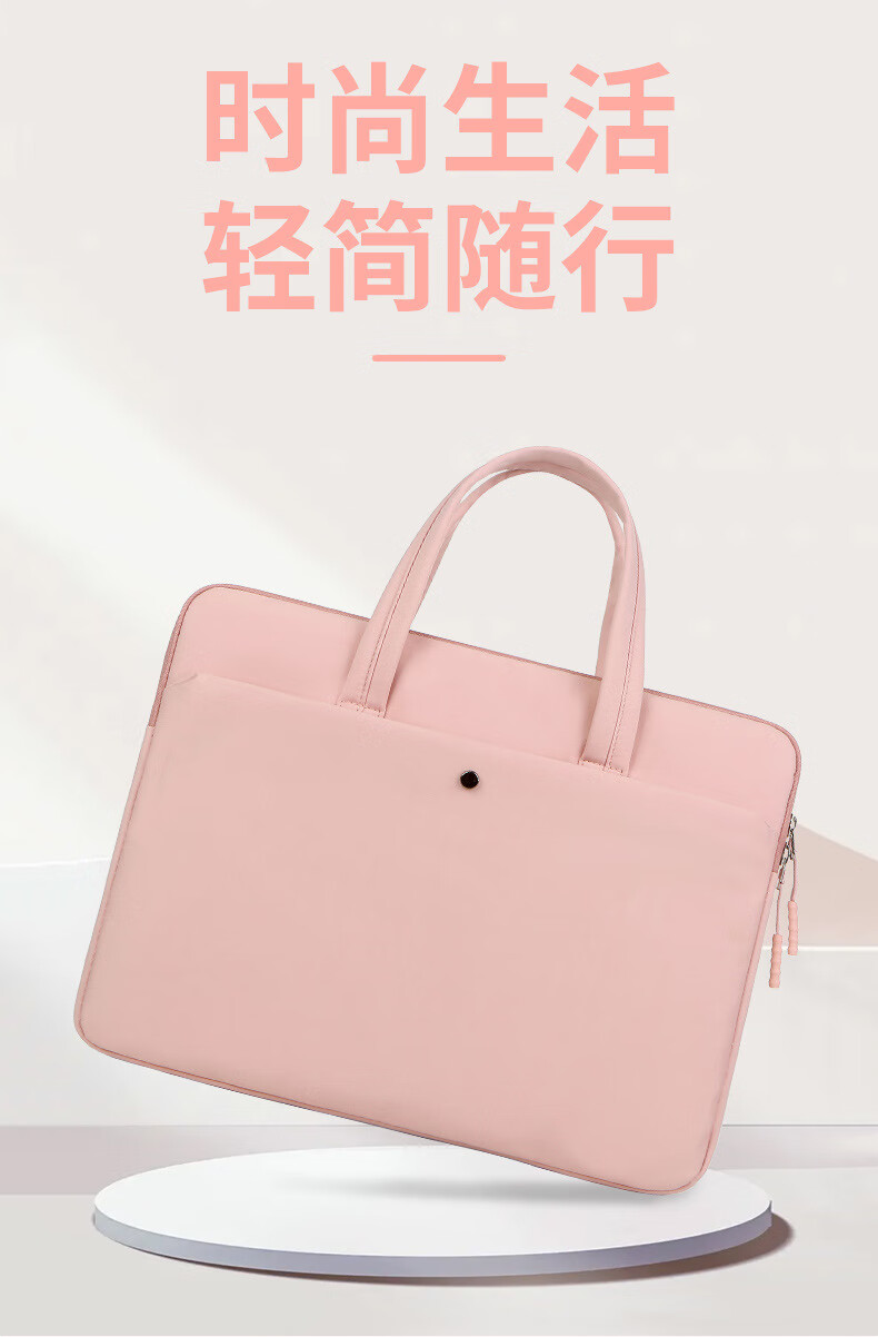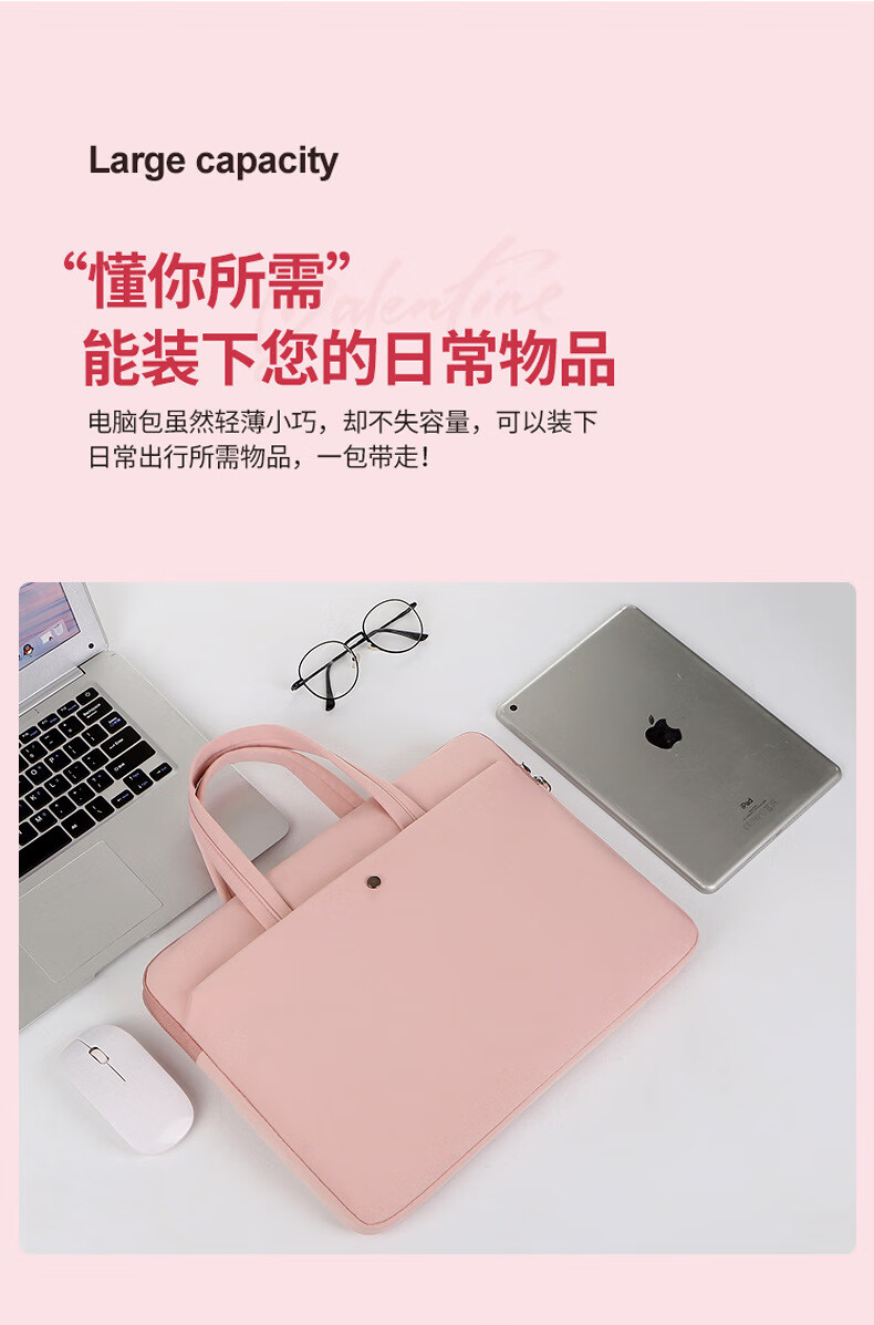 【严选好物】手提电脑包公文包女多功能防震电脑内胆包定印制logo 粉色 1313.3寸通用