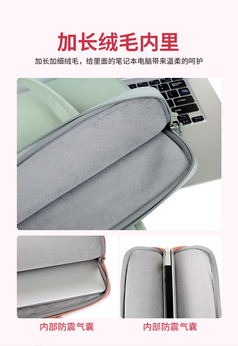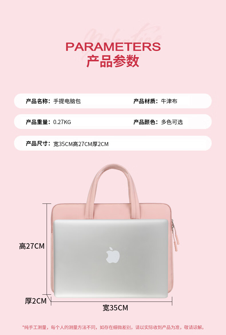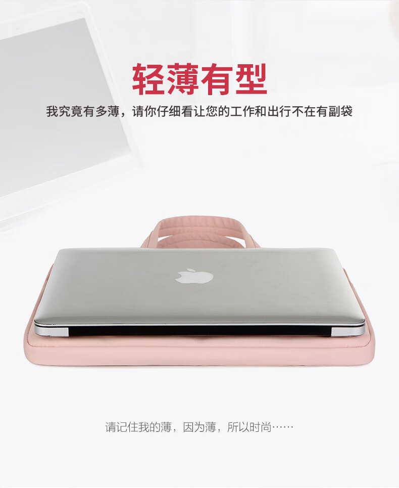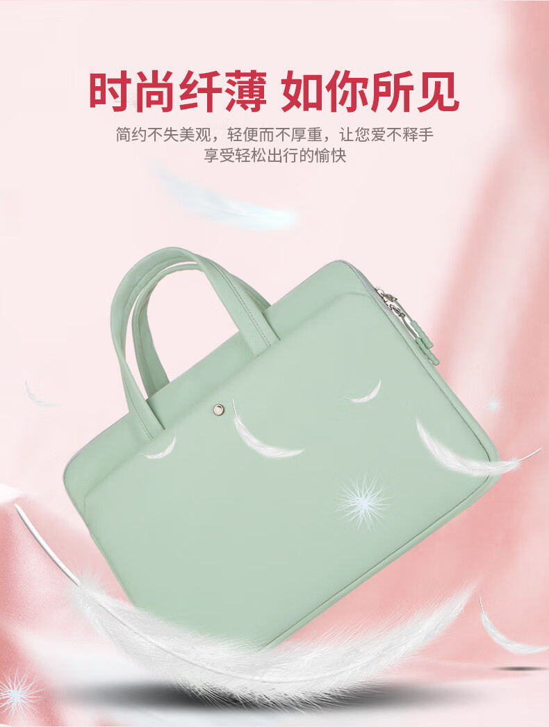 【严选好物】手提电脑包公文包女多功能防震电脑内胆包定印制logo 粉色 1313.3寸通用