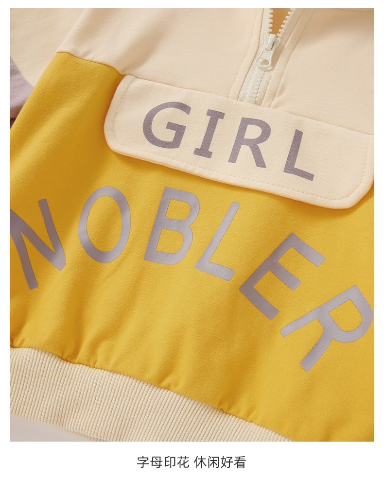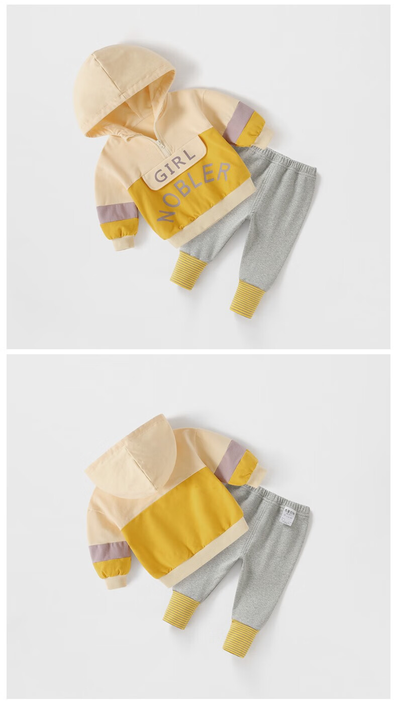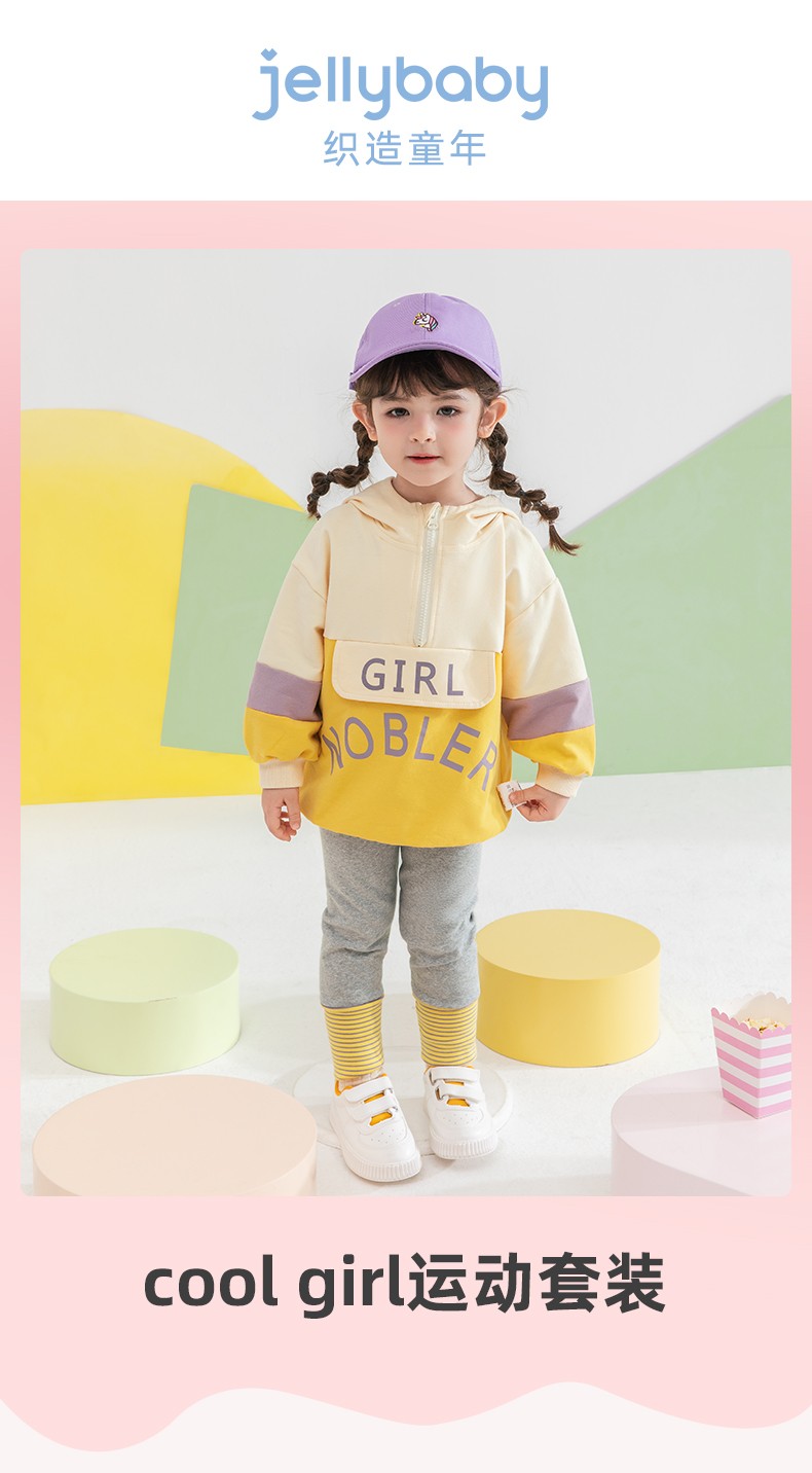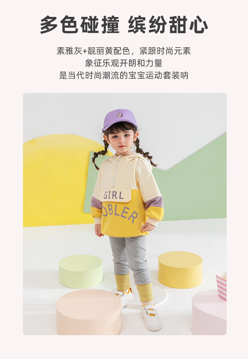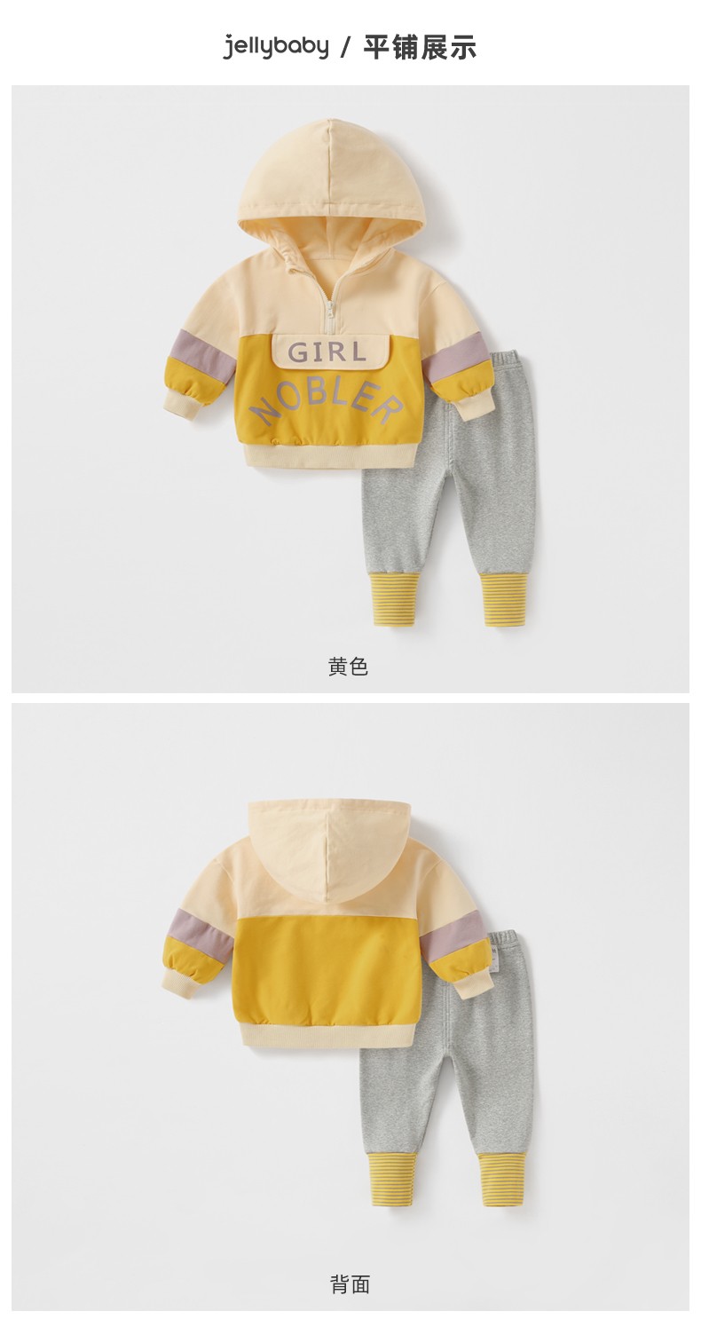 JELLYBABY【撞色连帽卫衣女童套装】2024秋季新款休闲运动套装儿童套装 黄色 90