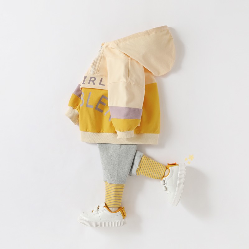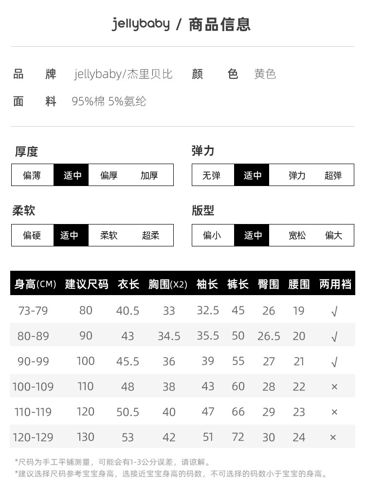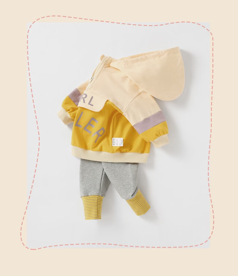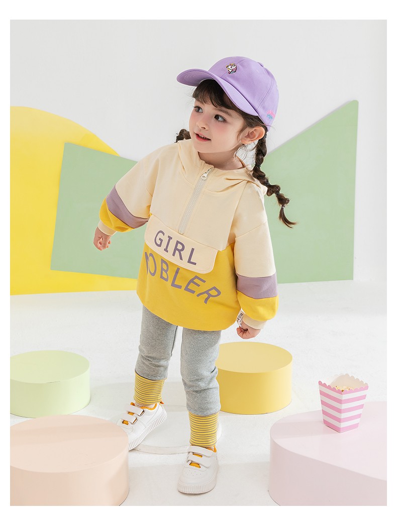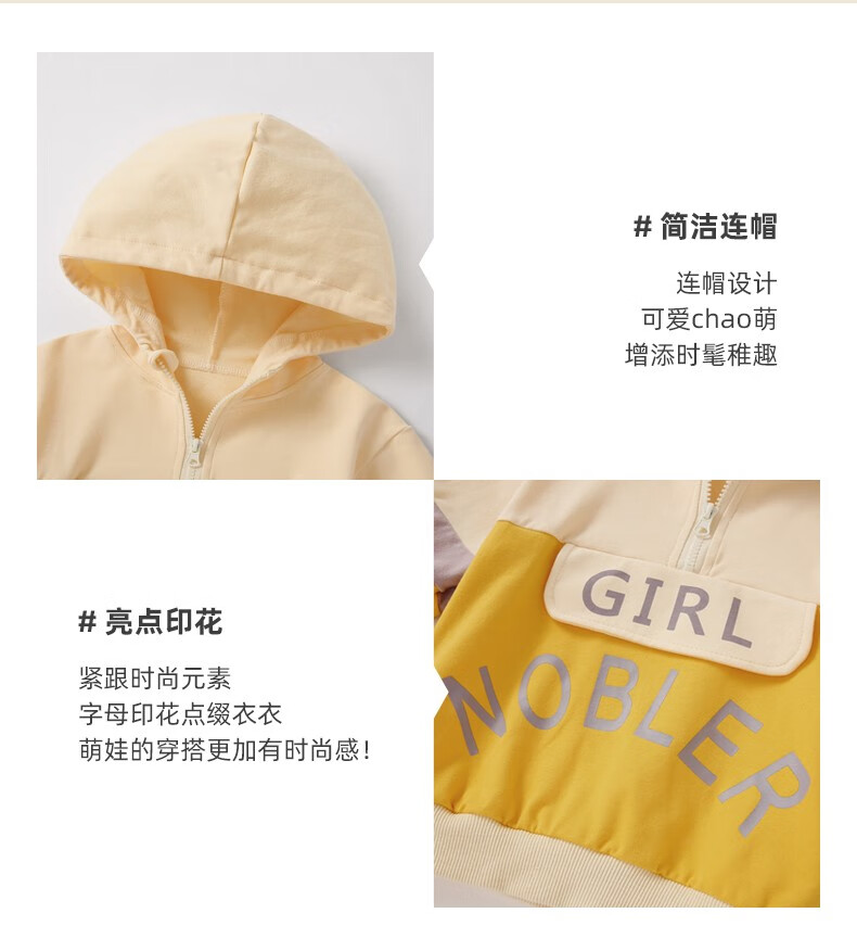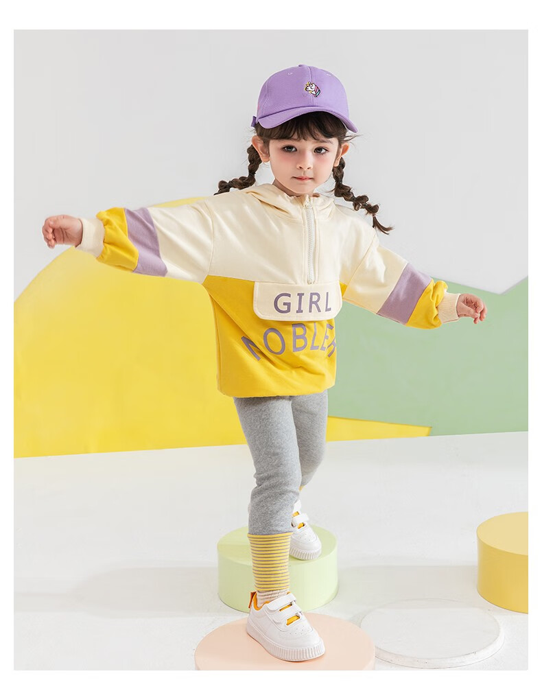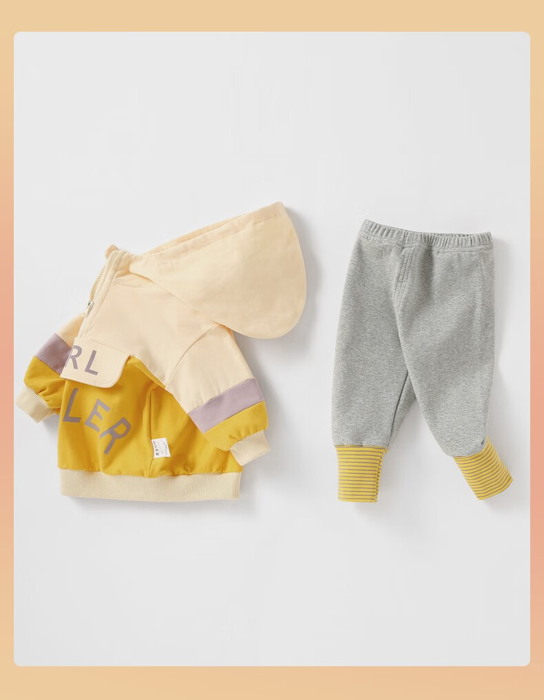 JELLYBABY【撞色连帽卫衣女童套装】2024秋季新款休闲运动套装儿童套装 黄色 90