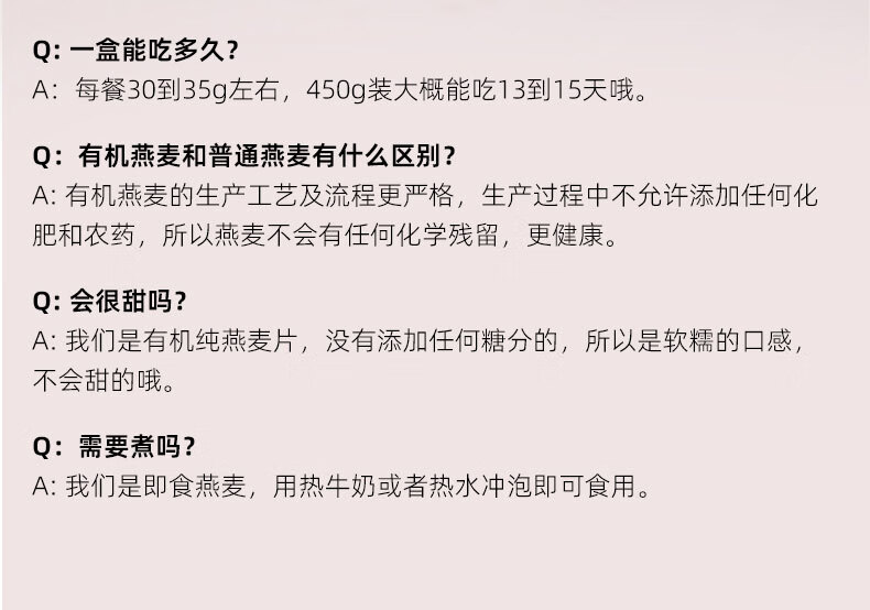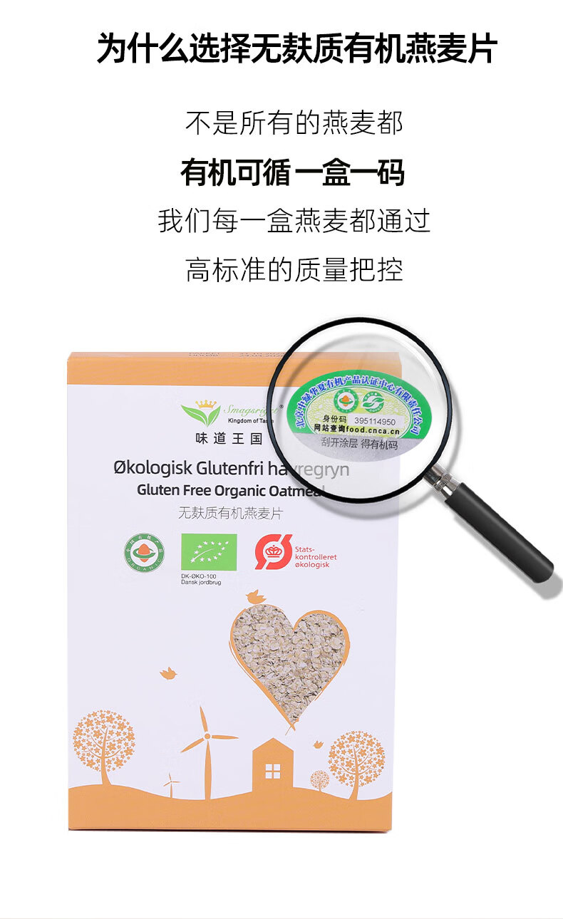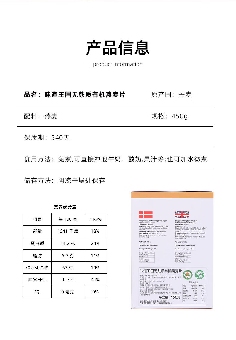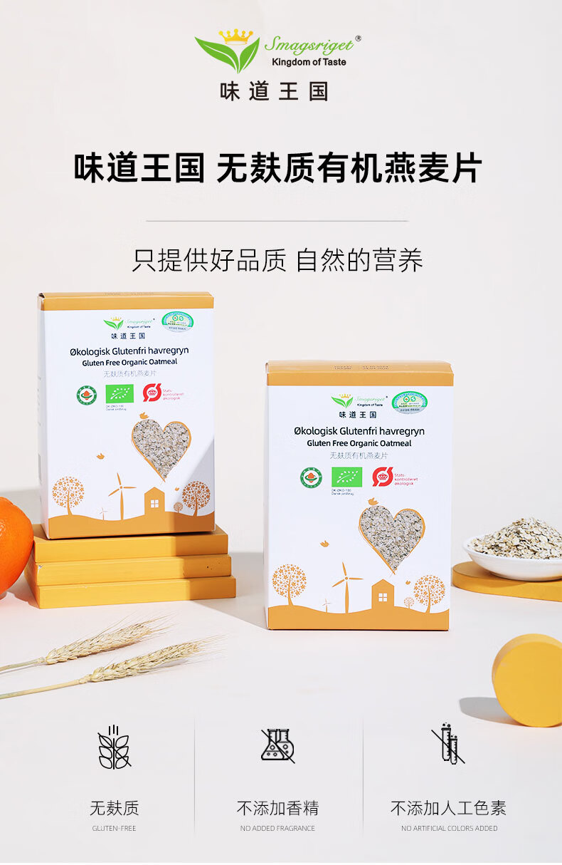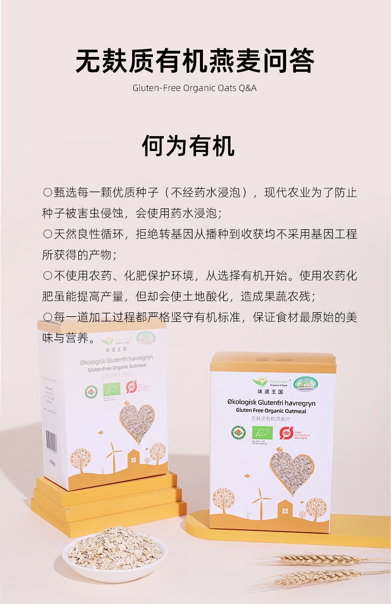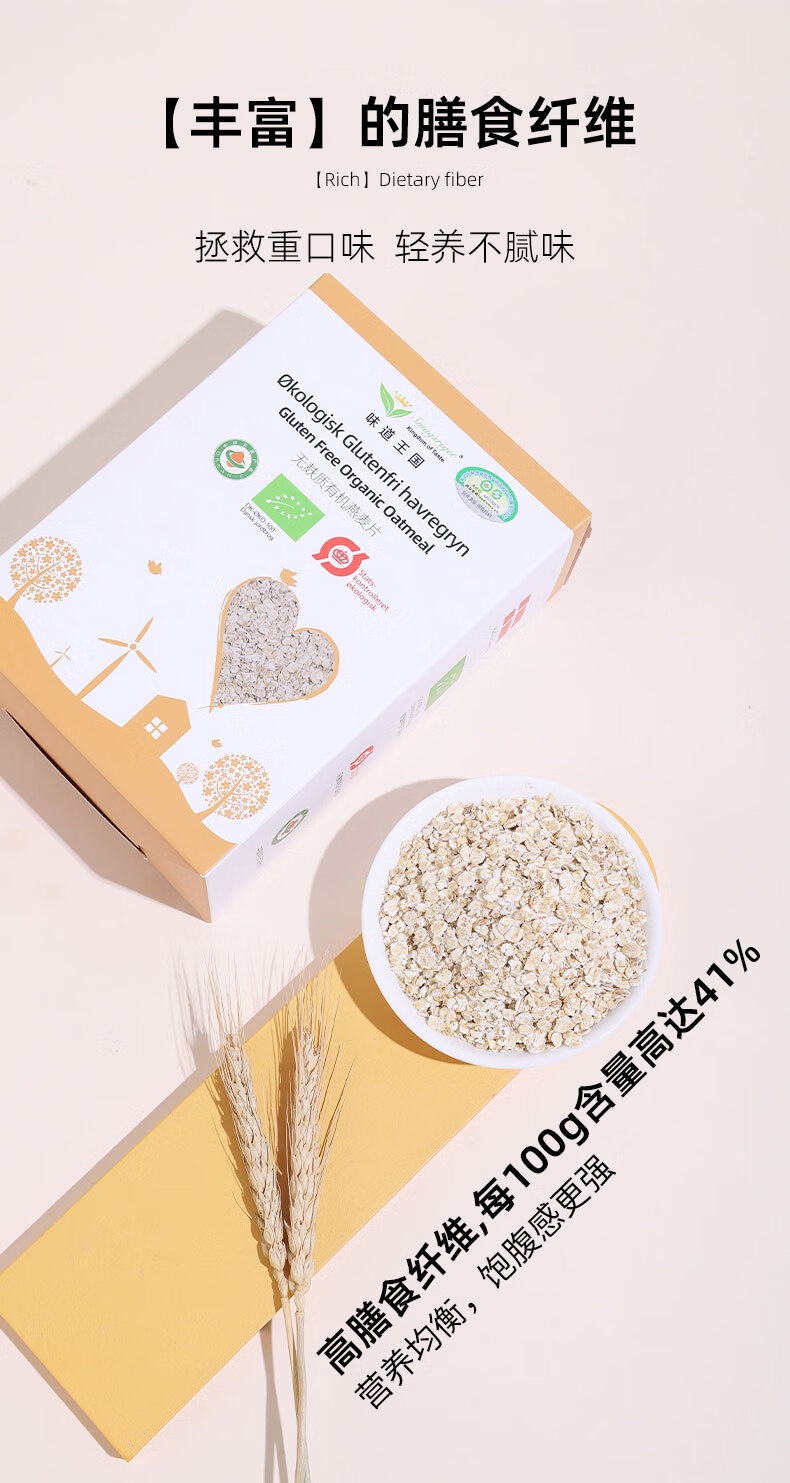 味道王国进口无麸质有机燕麦片450g 早餐即食 0添加高蛋白 富含膳食纤维