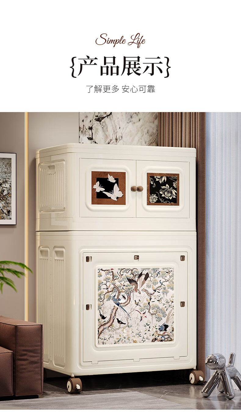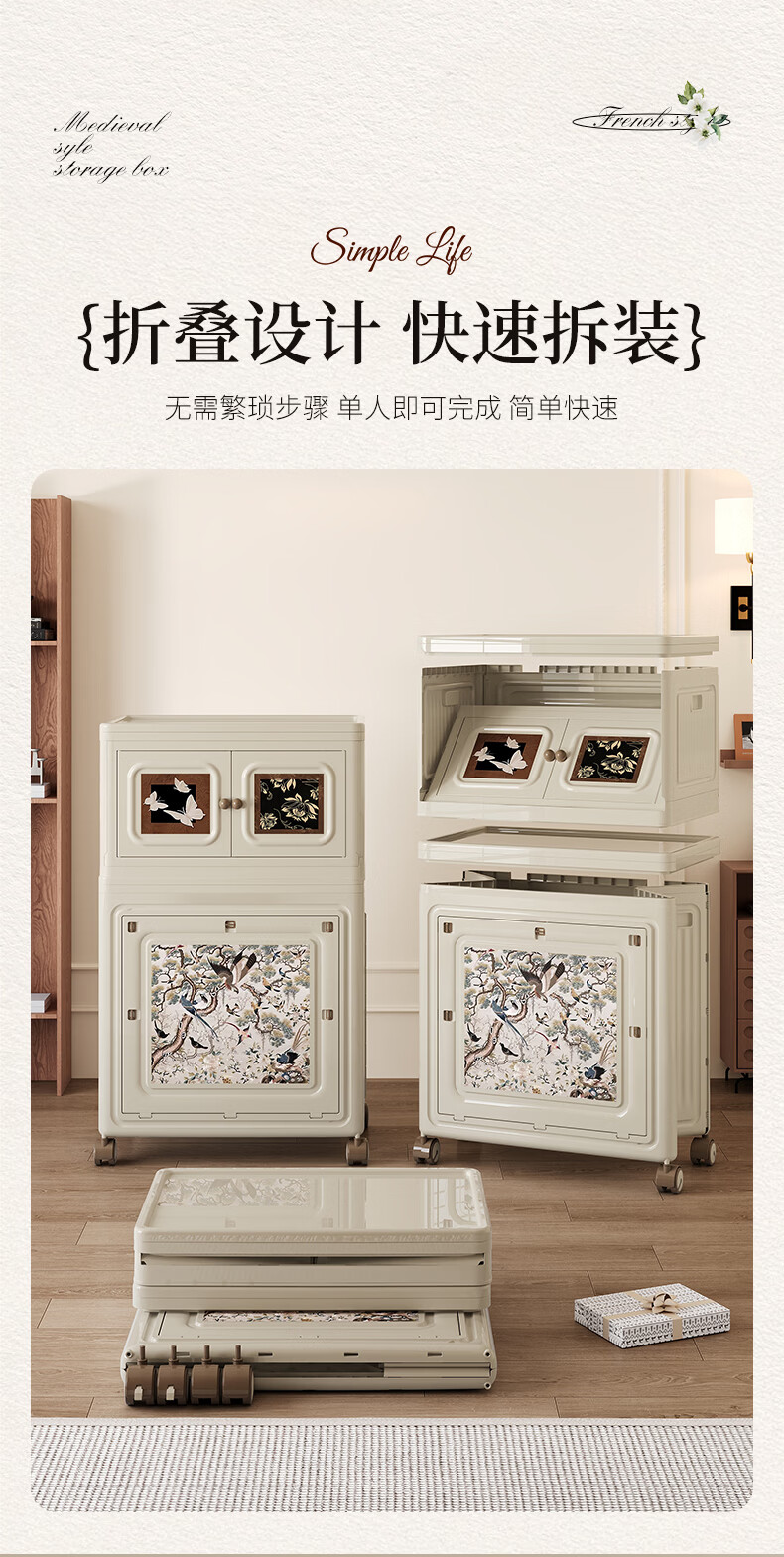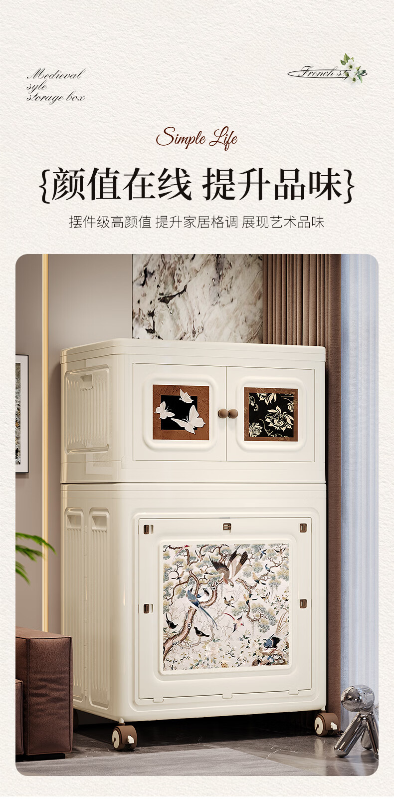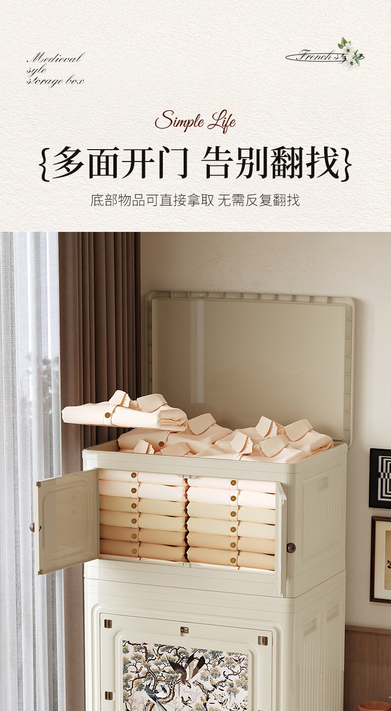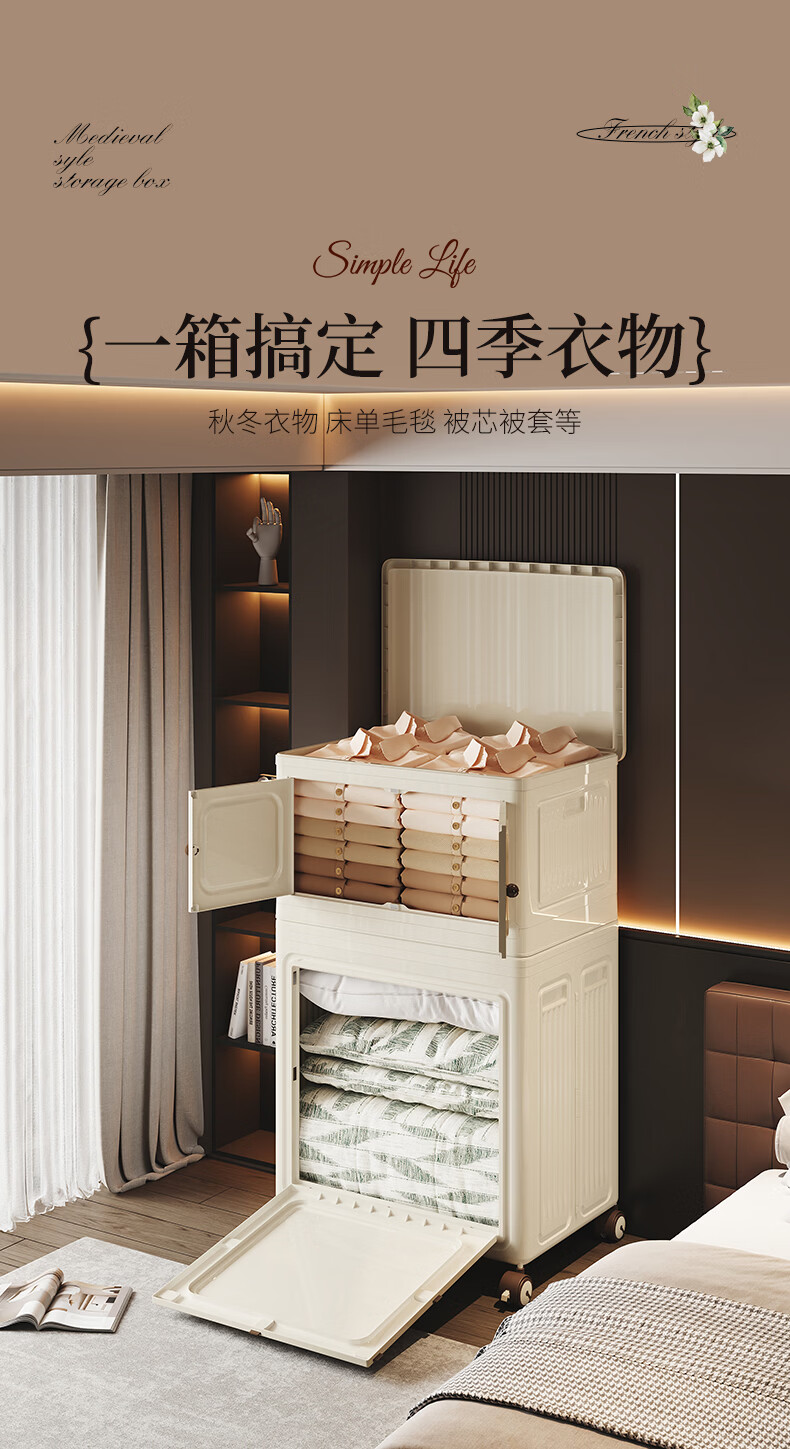 纳份爱【德邦入户】衣服收纳箱翻盖大容量被子整理箱换季储物柜收纳神器 300L 奶油透【双开门/可折叠/送轮子】
