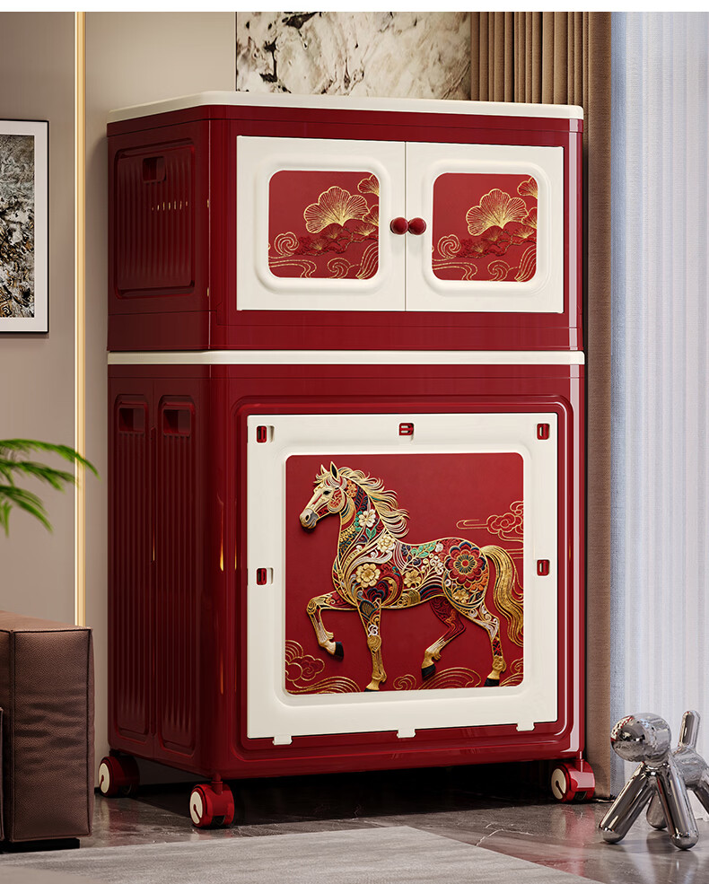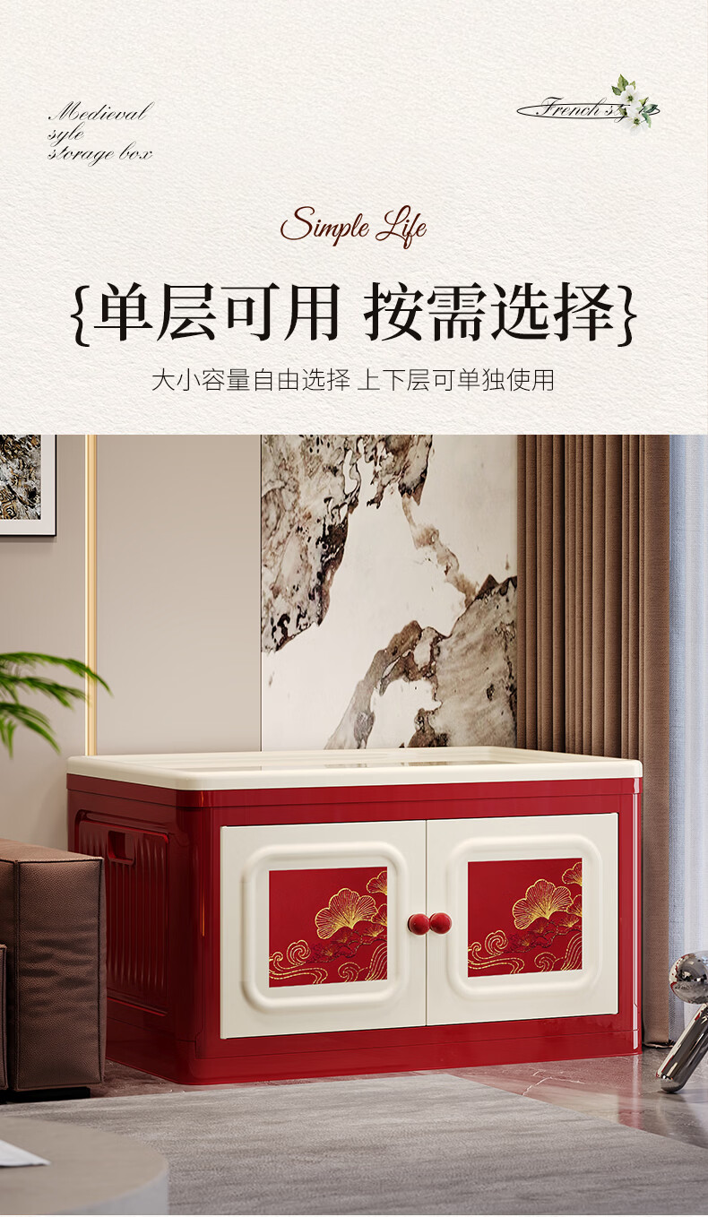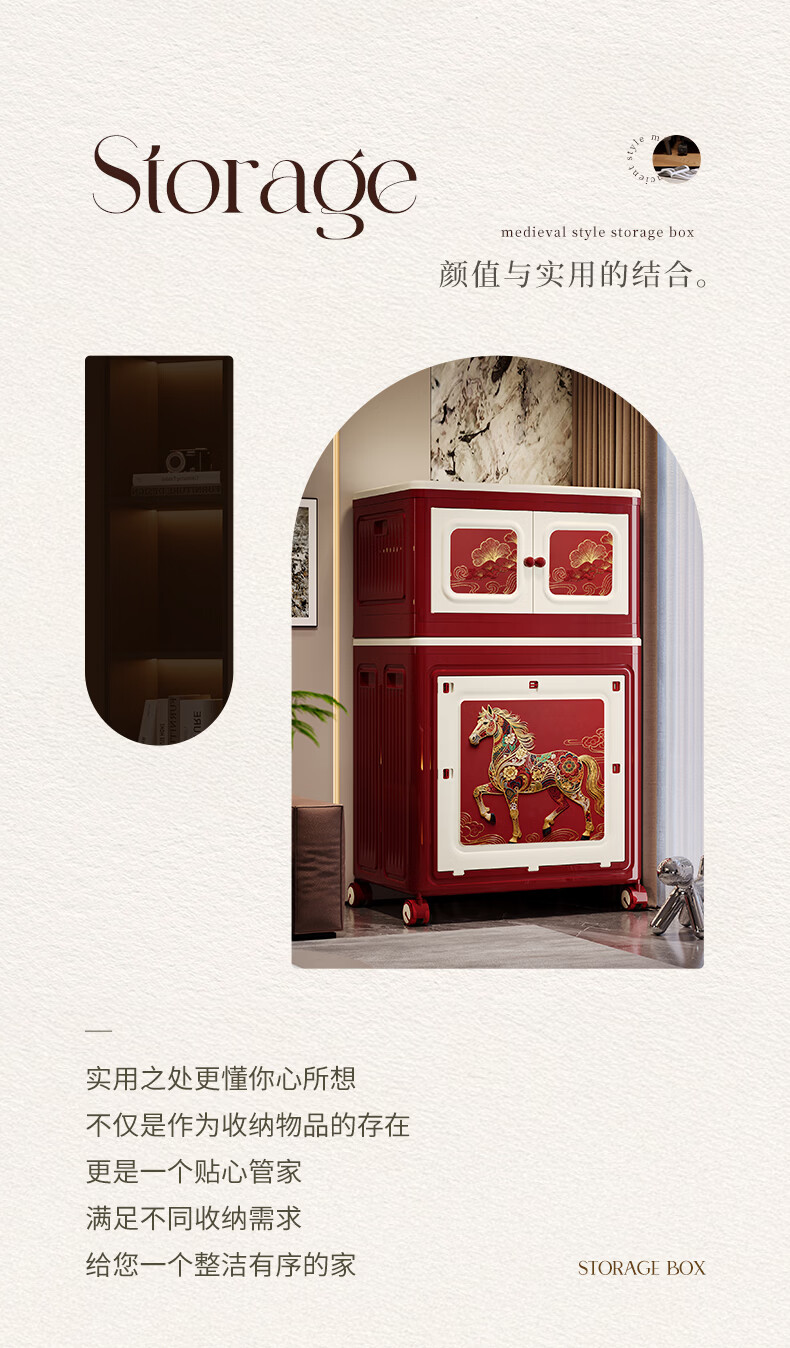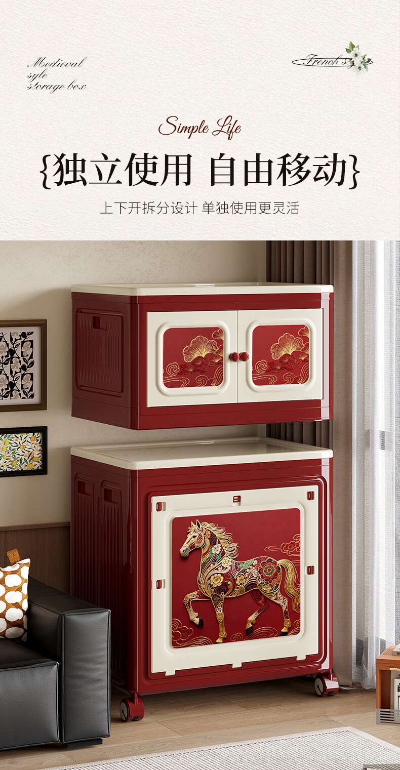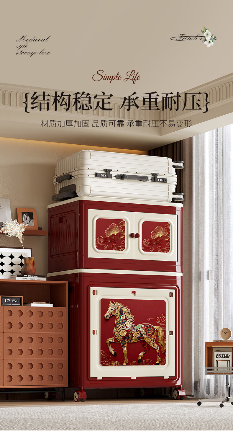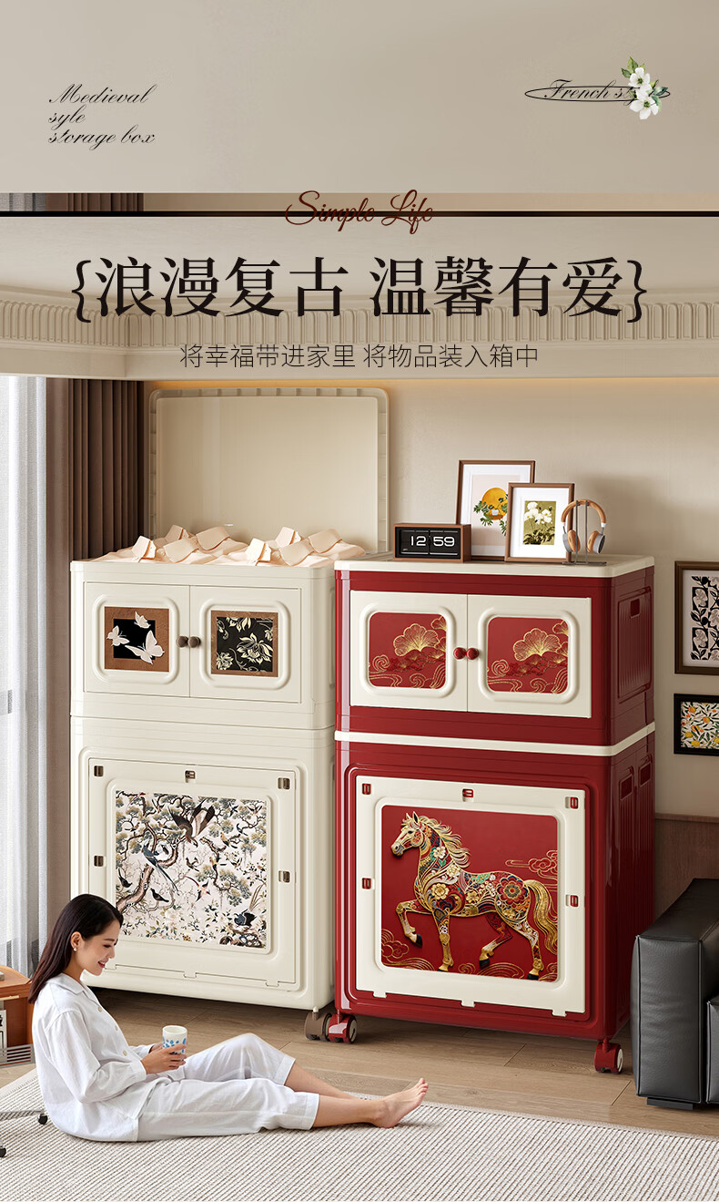纳份爱【德邦入户】衣服收纳箱翻盖大容量被子整理箱换季储物柜收纳神器 300L 奶油透【双开门/可折叠/送轮子】