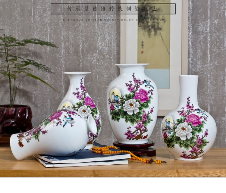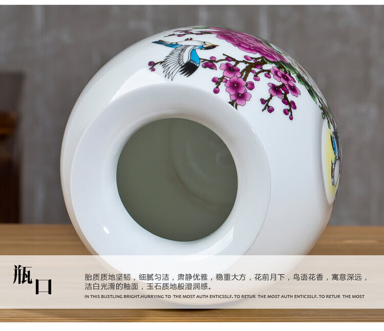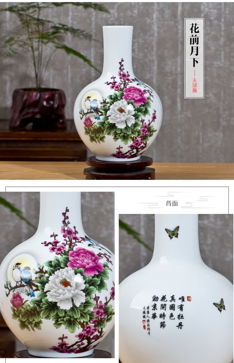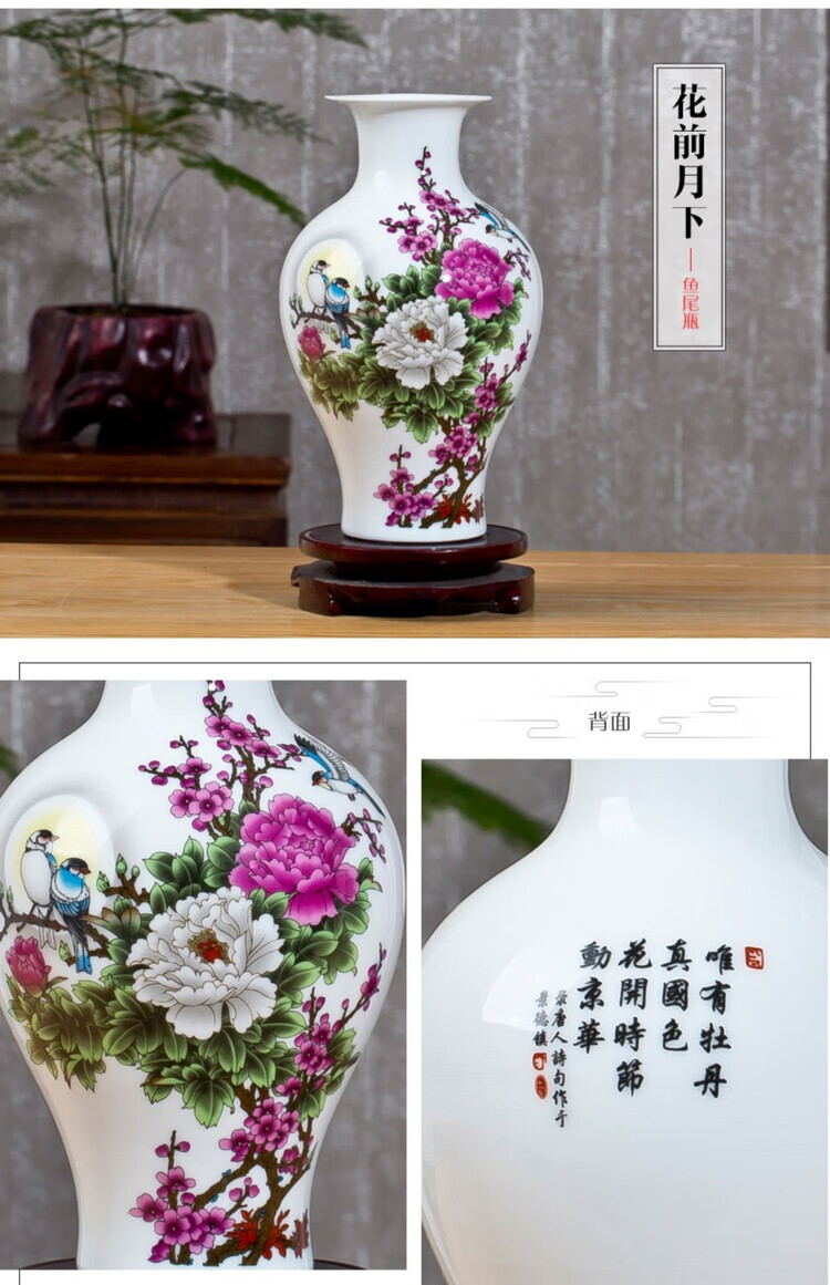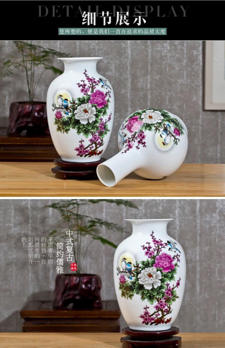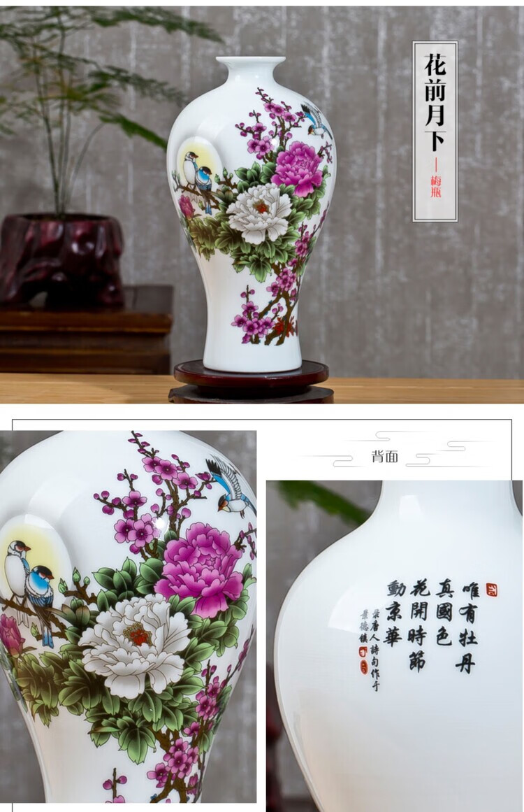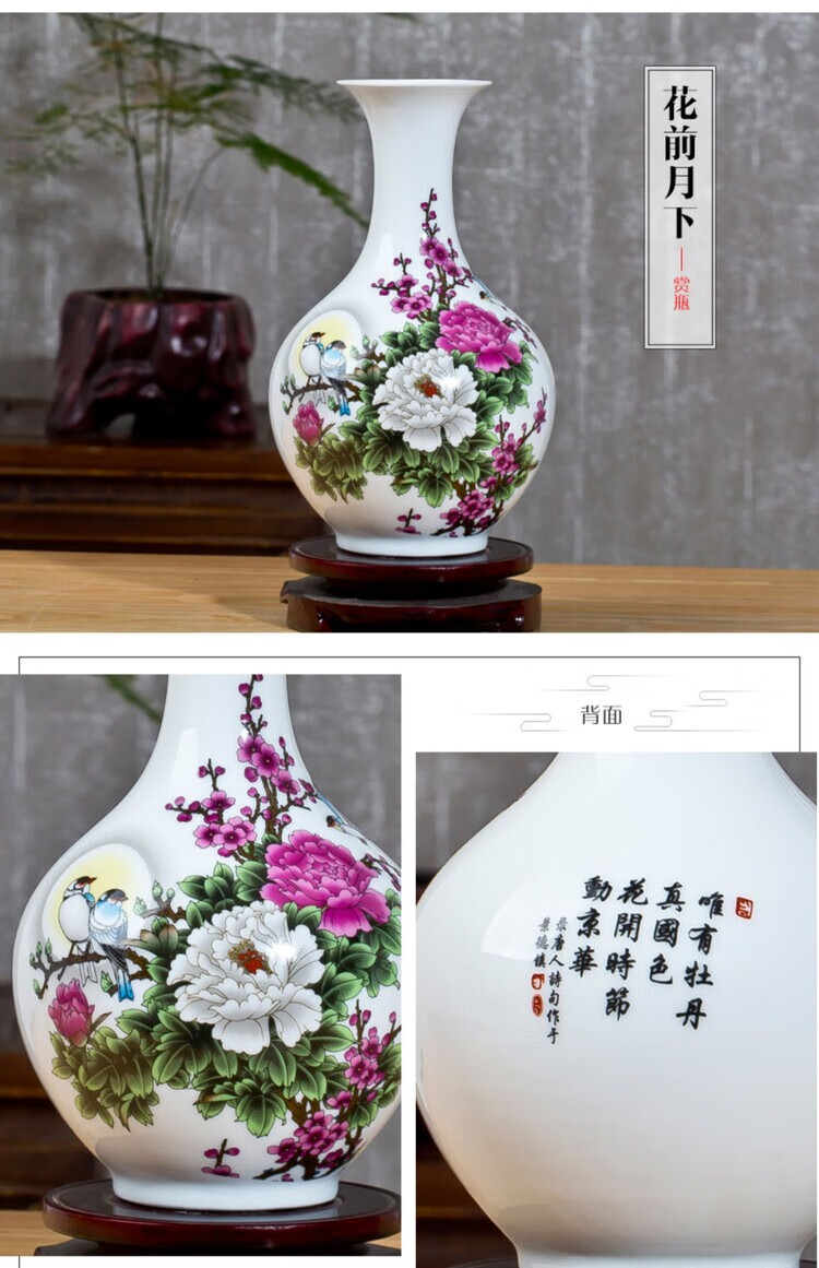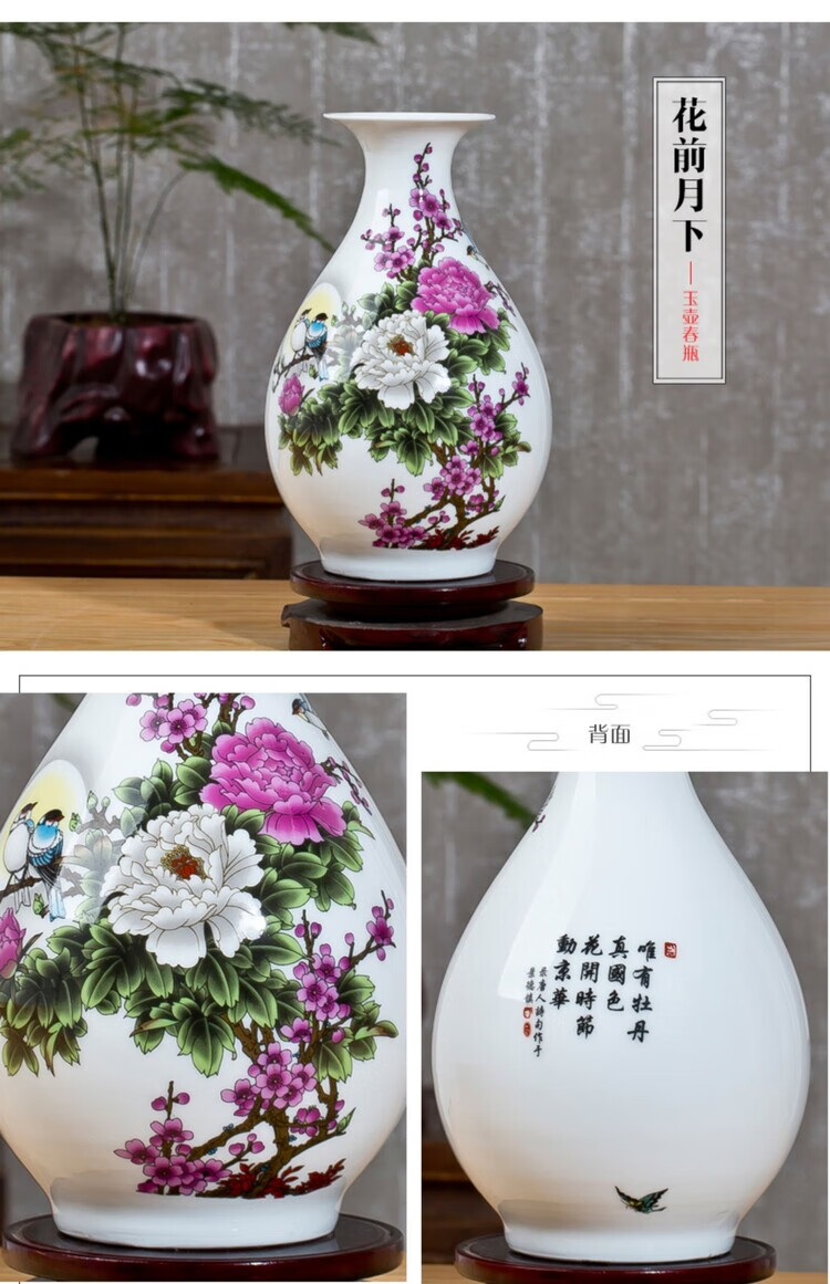 OYKTN景德镇小花瓶陶瓷摆件客厅插花现代简约家居干花装饰品瓷器瓷瓶子 花前月下赏瓶+木底座
