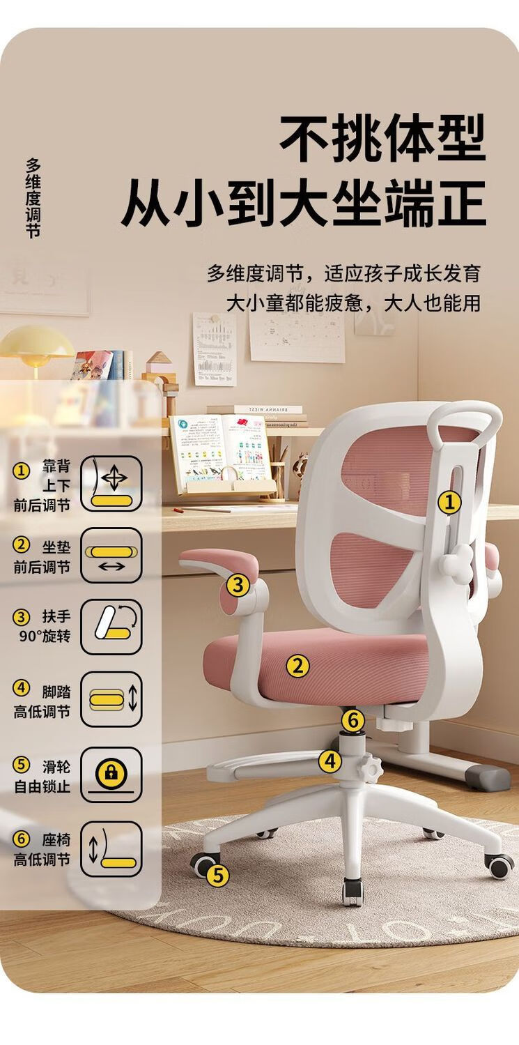 欣慕雅儿童学习椅小学生写字椅可调节升降座椅娇正坐姿书桌靠背作业椅子 缤纷蓝丨四项动态调节椅背丨防爆气杆 加厚海绵垫