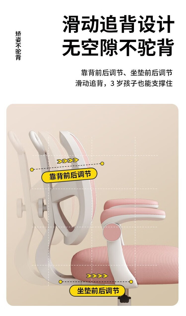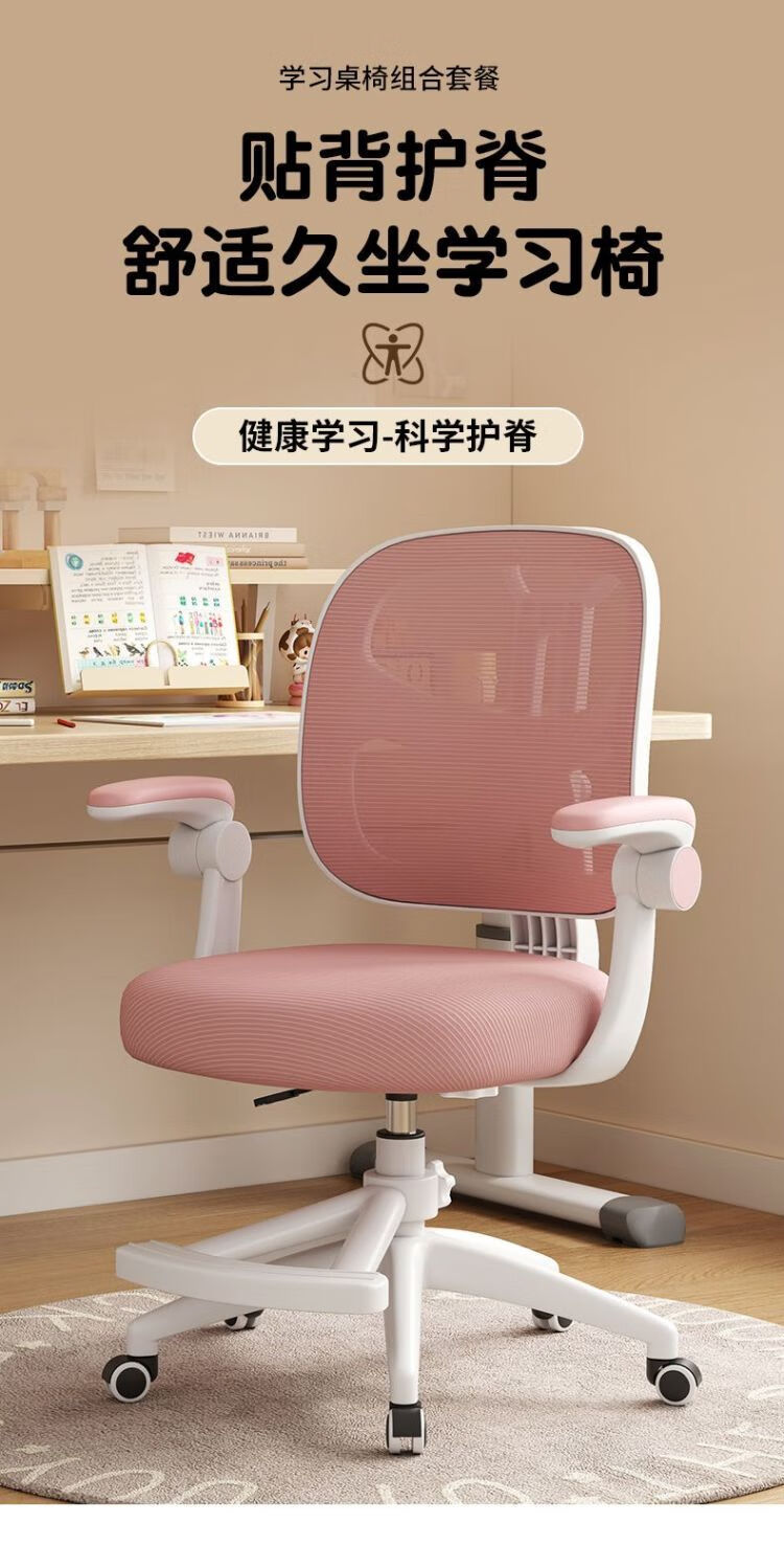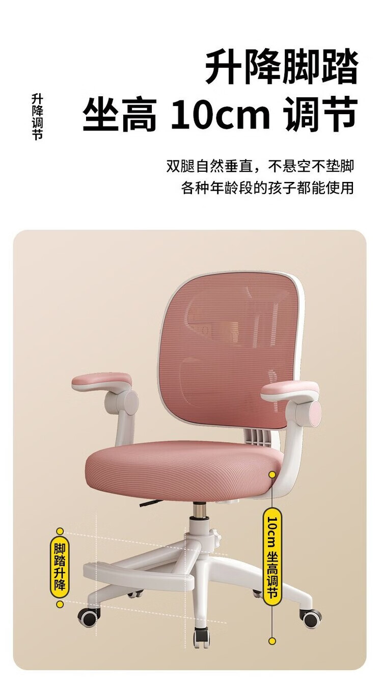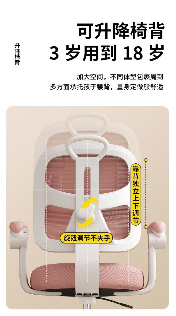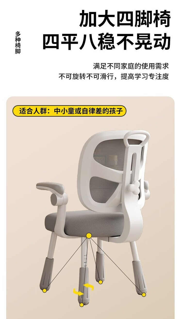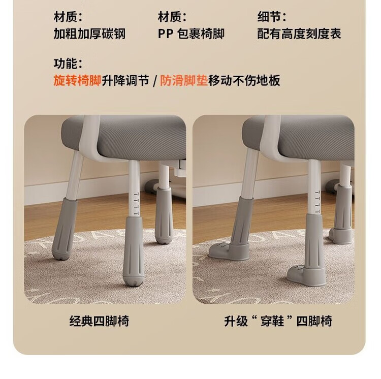 喵同学儿童学习椅子儿童座椅可升降调节中小学生专用写字椅追背椅靠背椅 自由升降+经典脚踏-加高款-灰