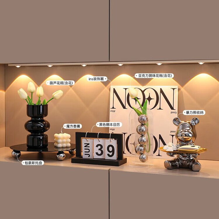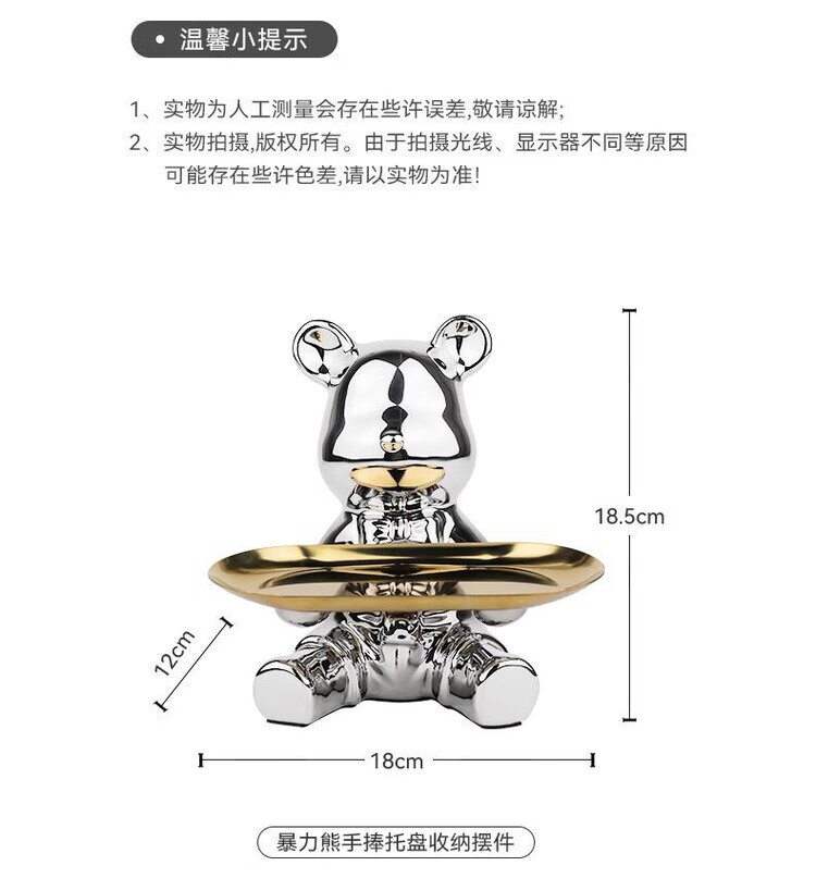 OYKTN轻奢玄关摆件暴力熊客厅高级感餐边柜装饰品钥匙收纳乔迁新居礼物 【玄关柜搭配轻奢摆件】1件套A