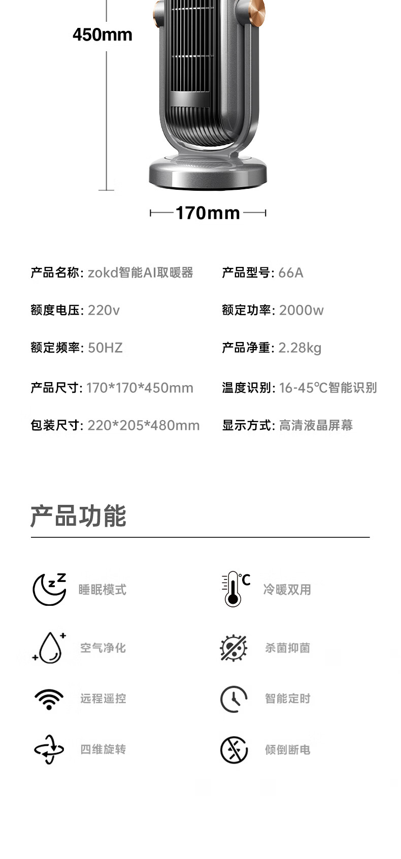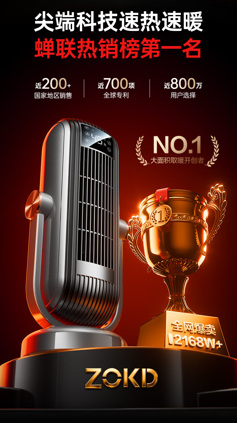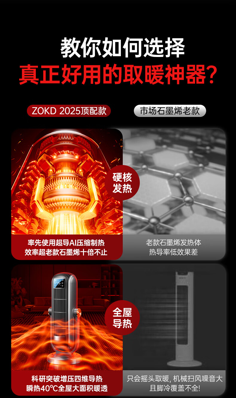 Zokd【负离子节能取暖器丨京东次日达】空气能取暖器家用小型立式暖风机全屋升温大面积恒温浴霸烤火炉 尊享款【速热大面积丨AI智控升温】