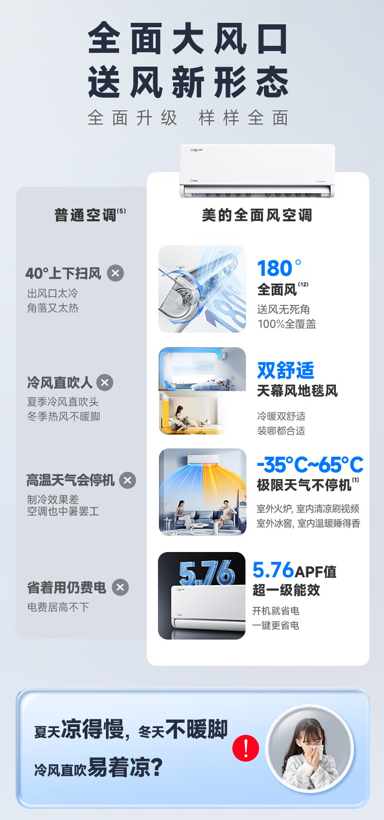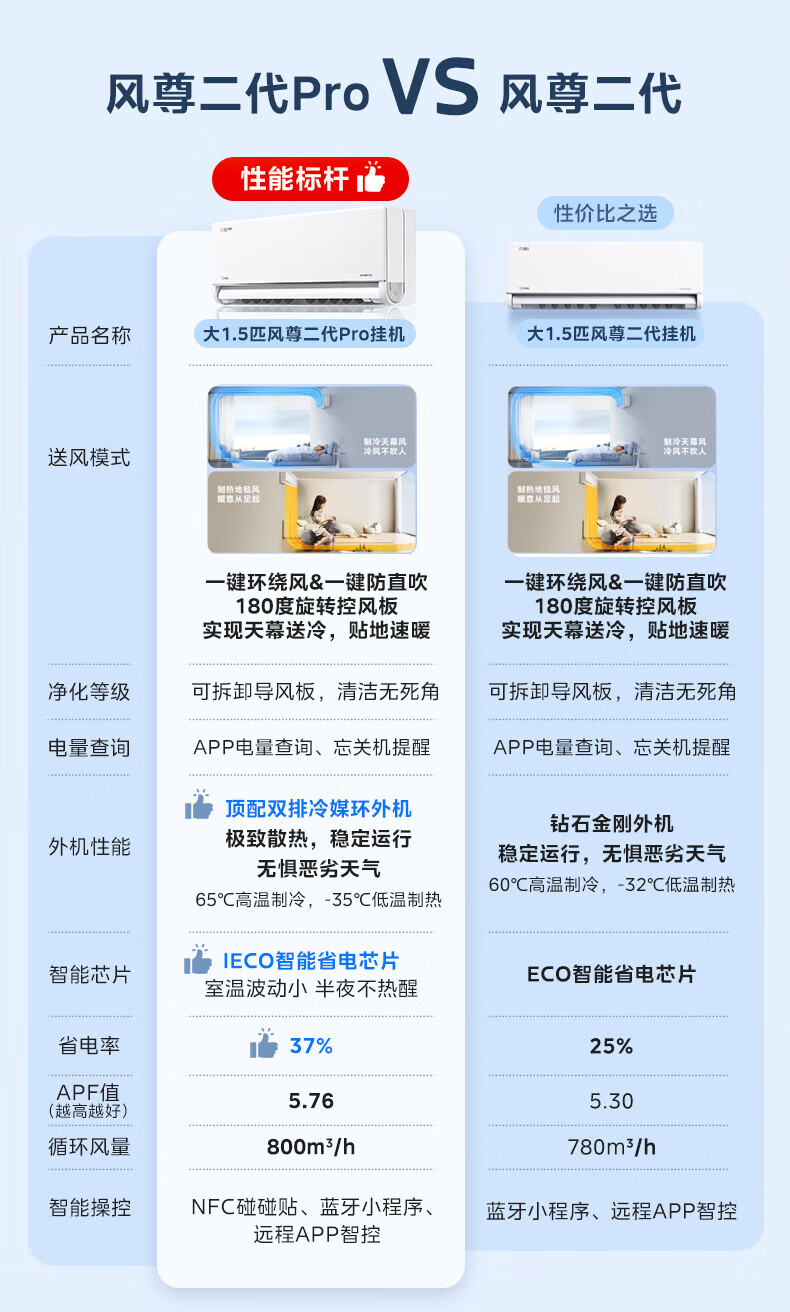 美的(Midea)空调风尊二代Pro 挂机大1.5匹 家用空调新一级能效 变频冷暖 空调补贴20%以旧换新 壁挂式节能低噪 大1.5匹 一级能效 风尊二代pro 性能升级 撩客服底价