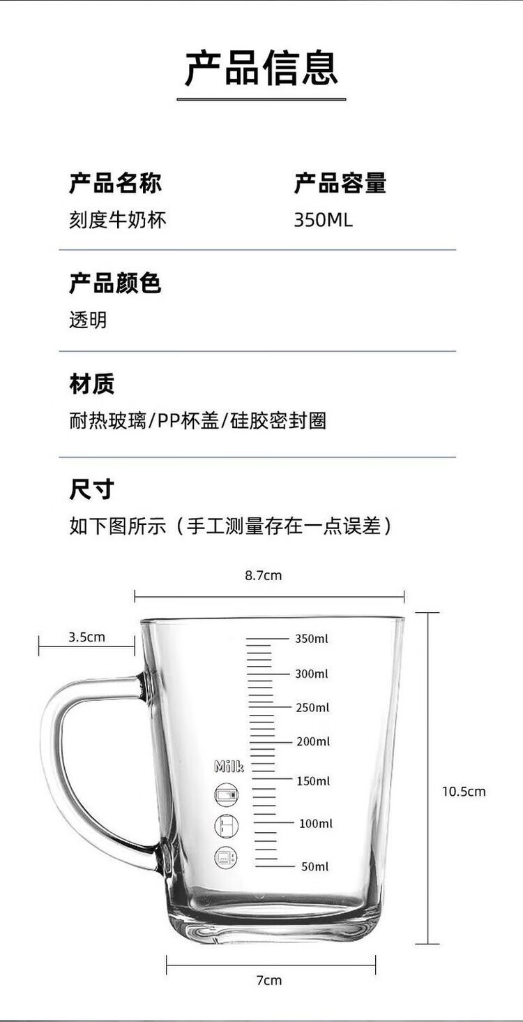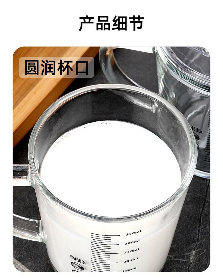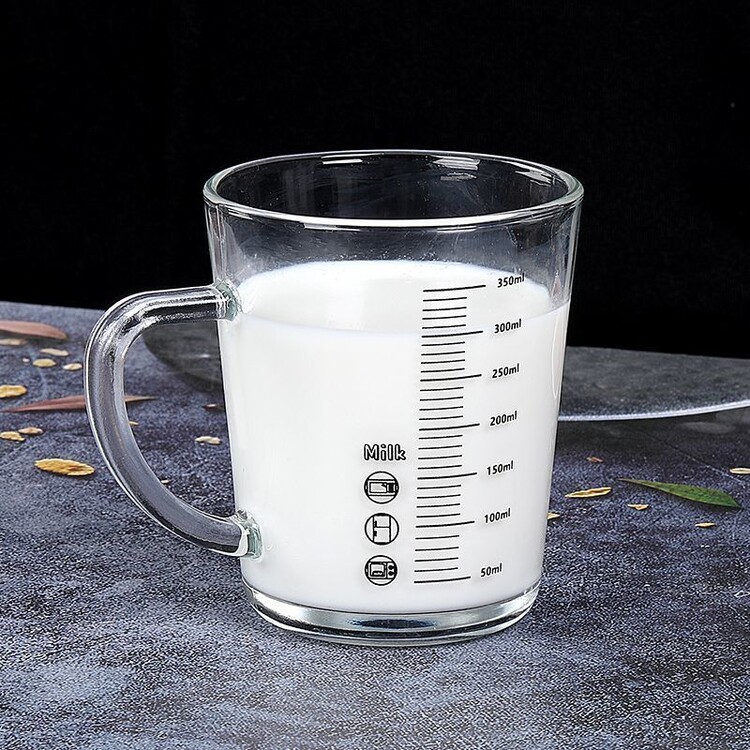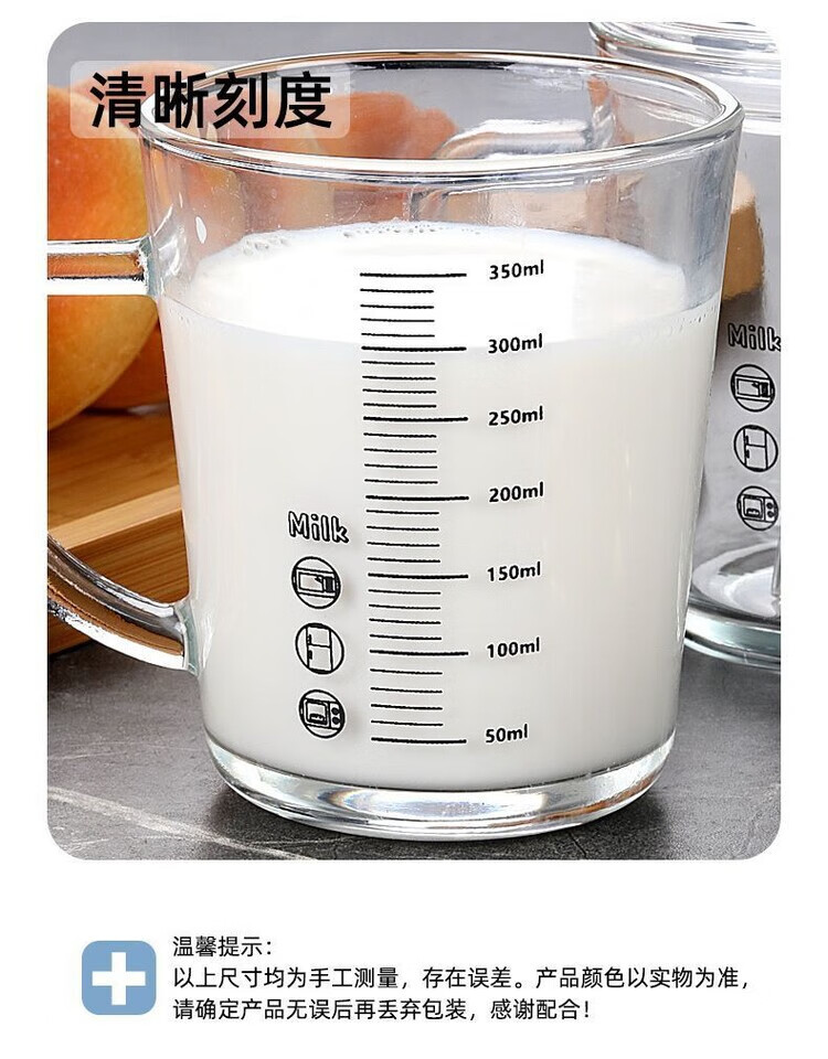 简漾玻璃杯水杯家用把手喝水杯子耐高温咖啡杯泡茶杯刻度牛奶杯豆浆杯 【2只】加厚刻度把杯