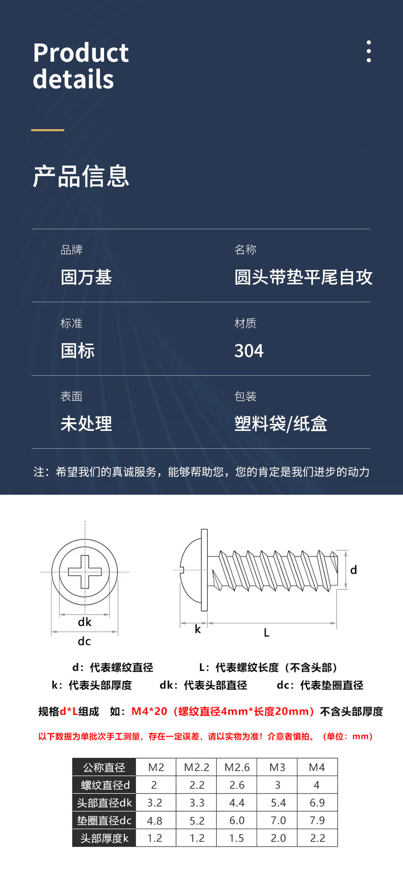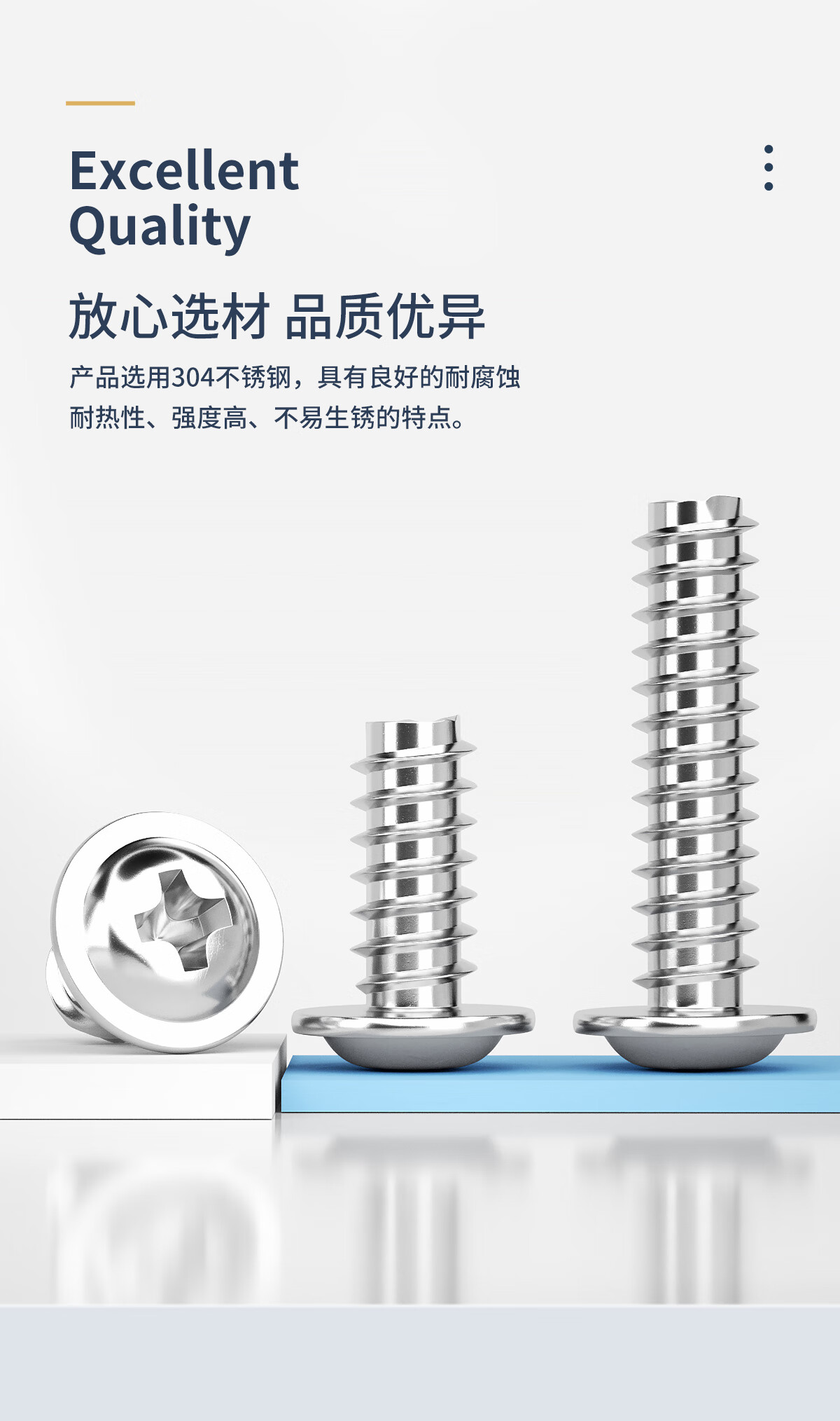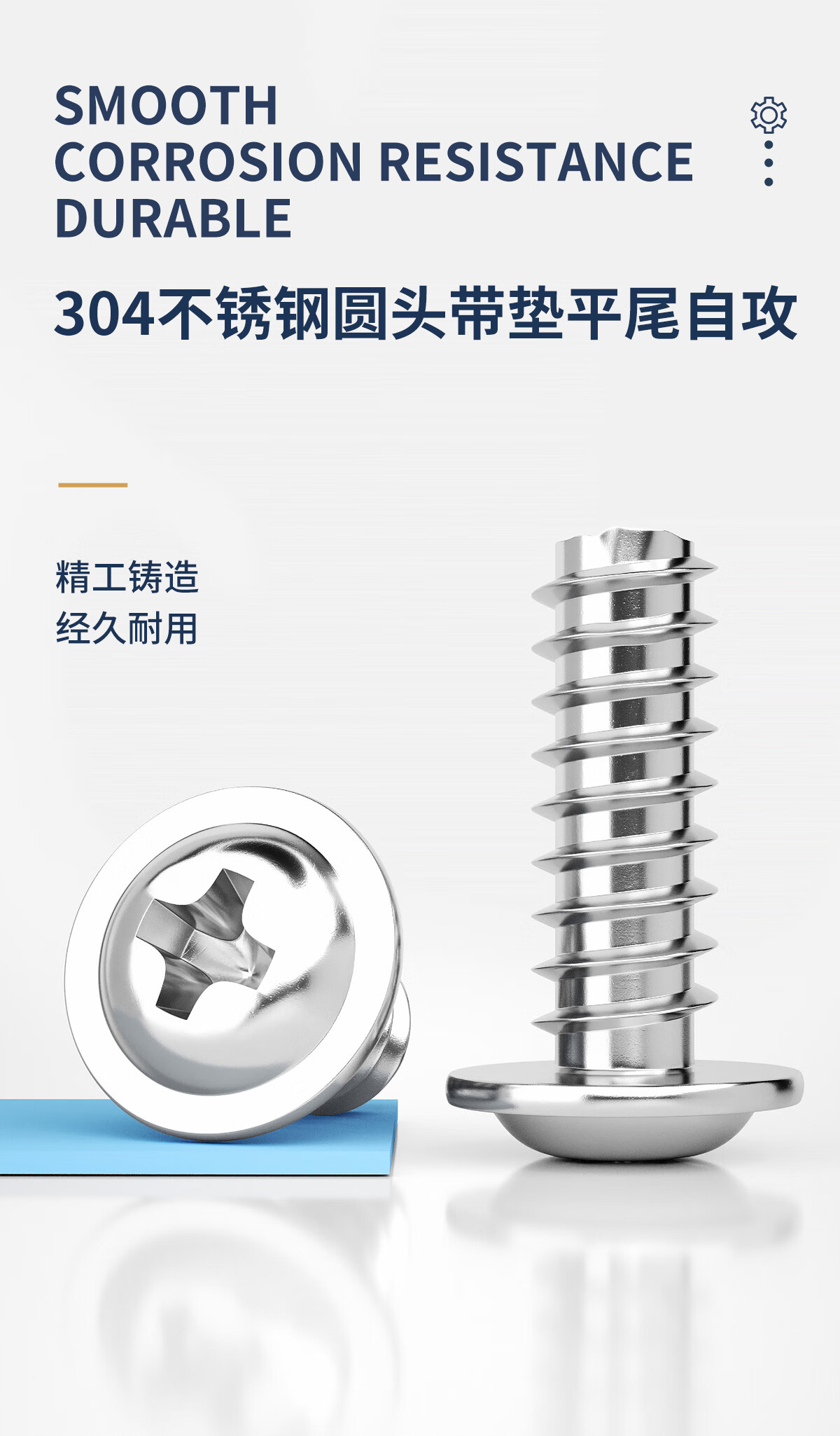 固万基(GUWANJI)304不锈钢十字圆头带垫平尾自攻钉盘头带介自攻螺丝PWB螺丝 M1.7x3x4.5[500个]