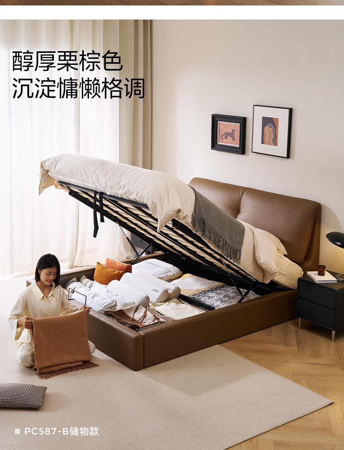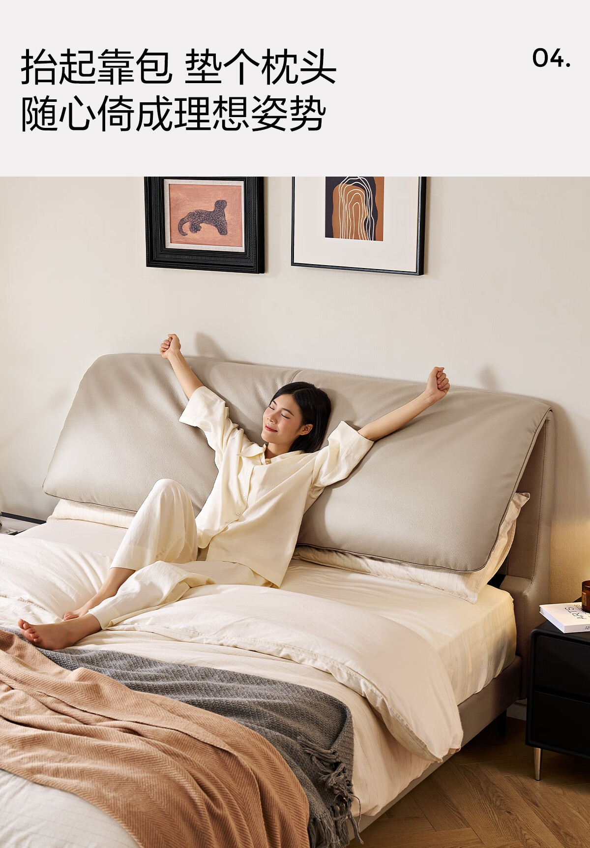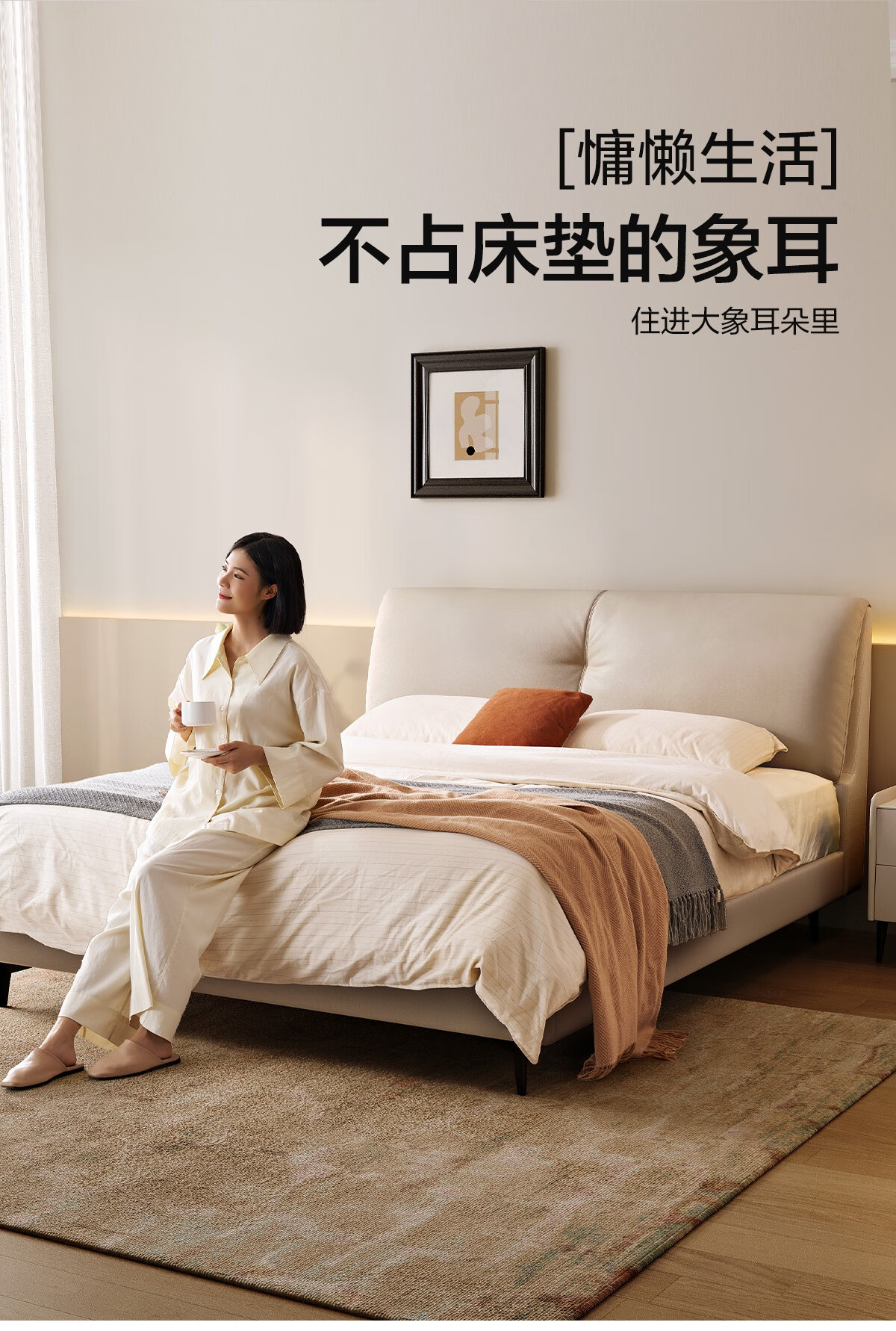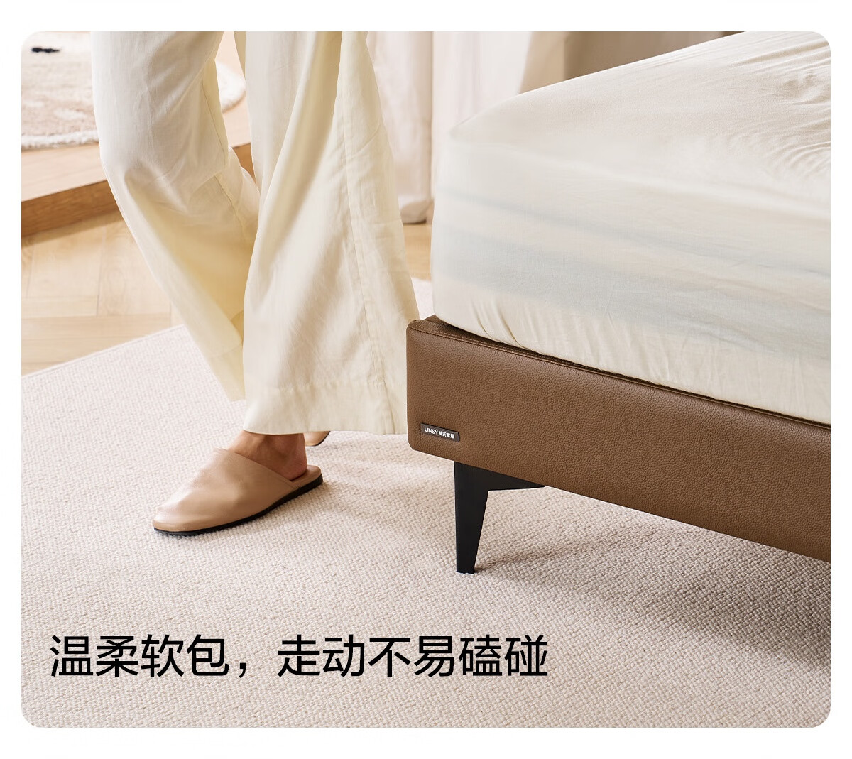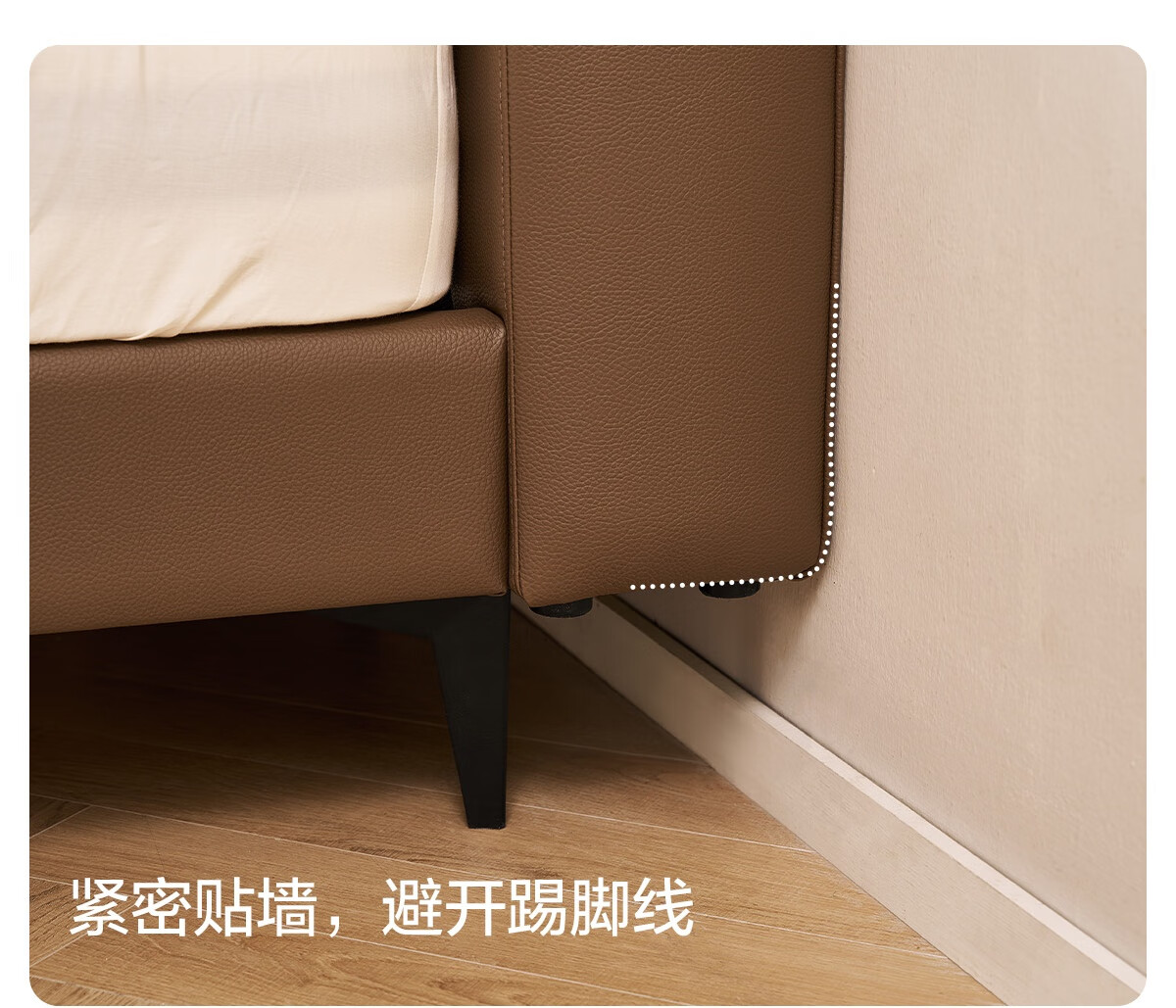 林氏家居1.8米x2米大象耳朵床双人床简约大气轻奢软靠包床主卧床PC587 栗棕色|高脚床 1800mm*2000mm