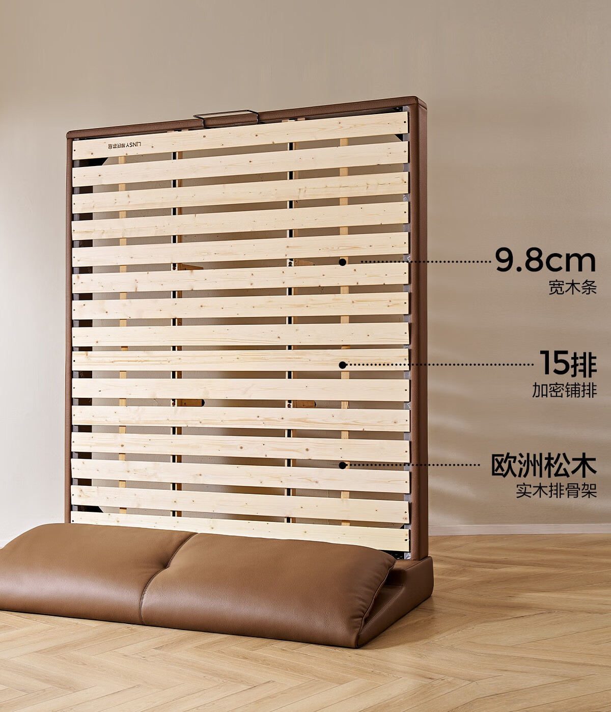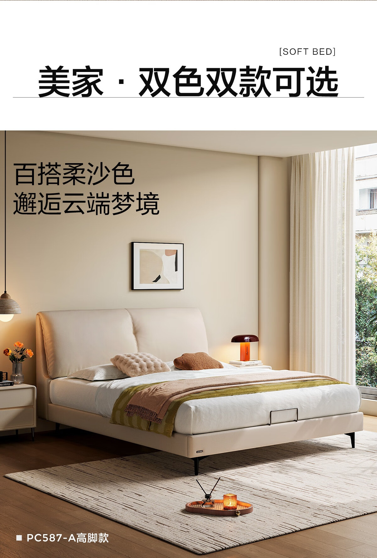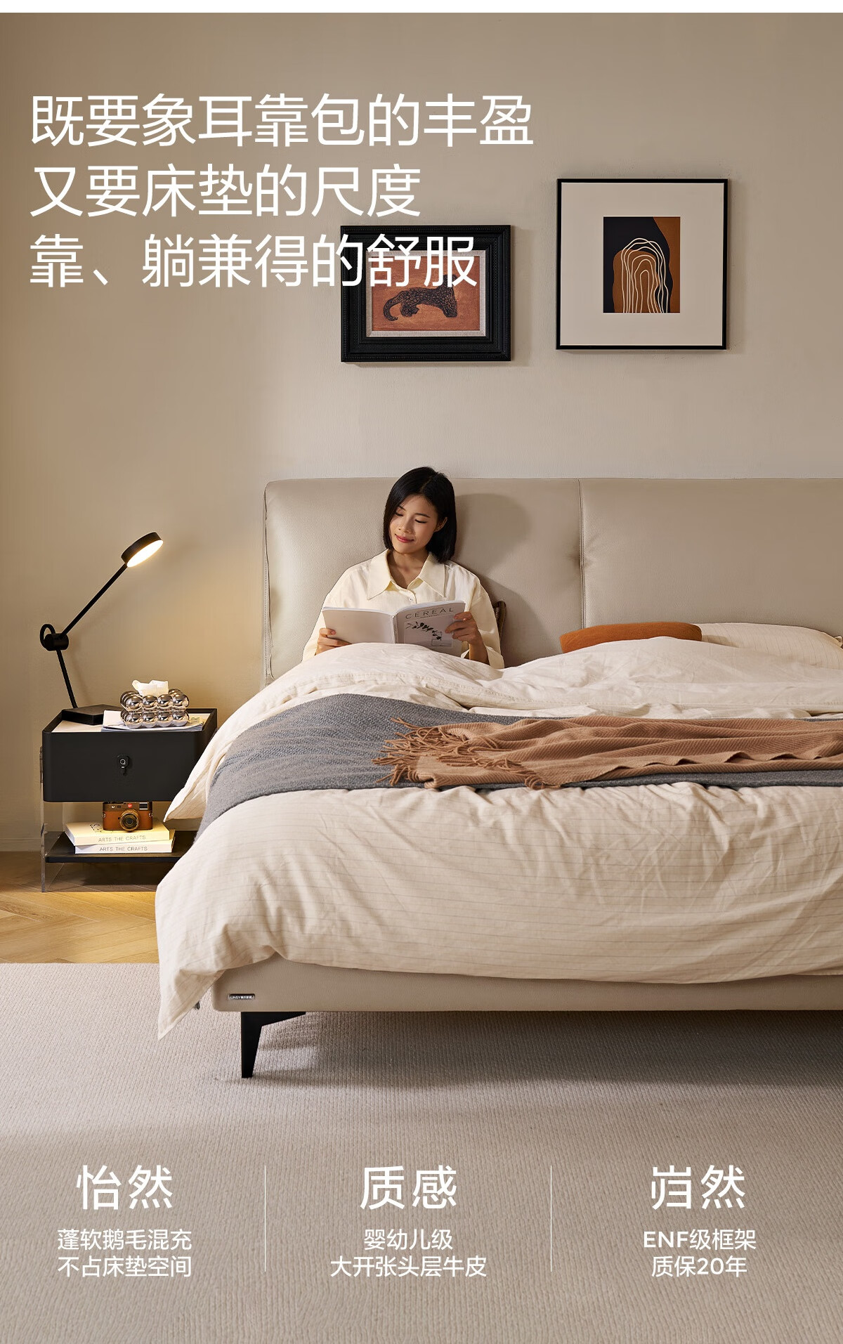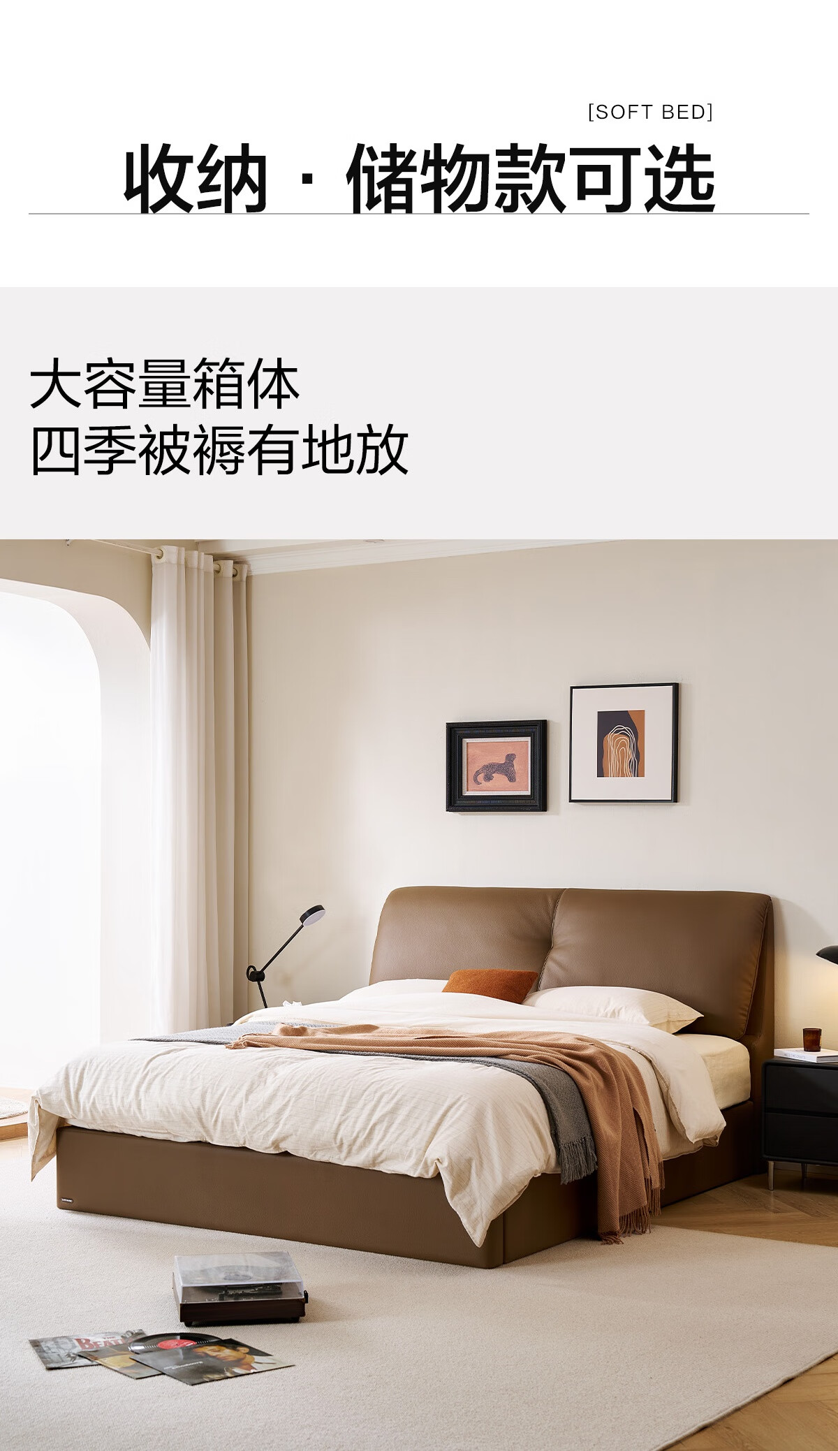 林氏家居1.8米x2米大象耳朵床双人床简约大气轻奢软靠包床主卧床PC587 栗棕色|高脚床 1800mm*2000mm