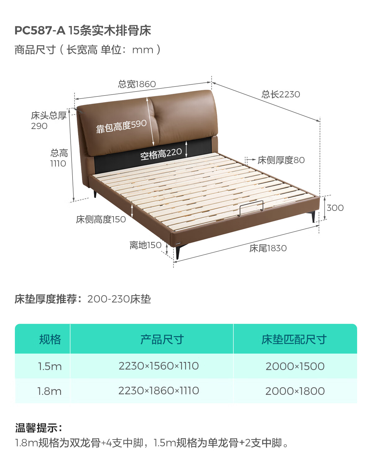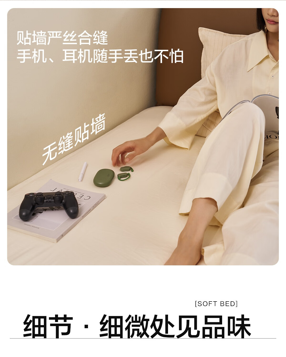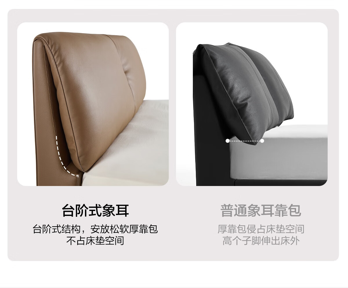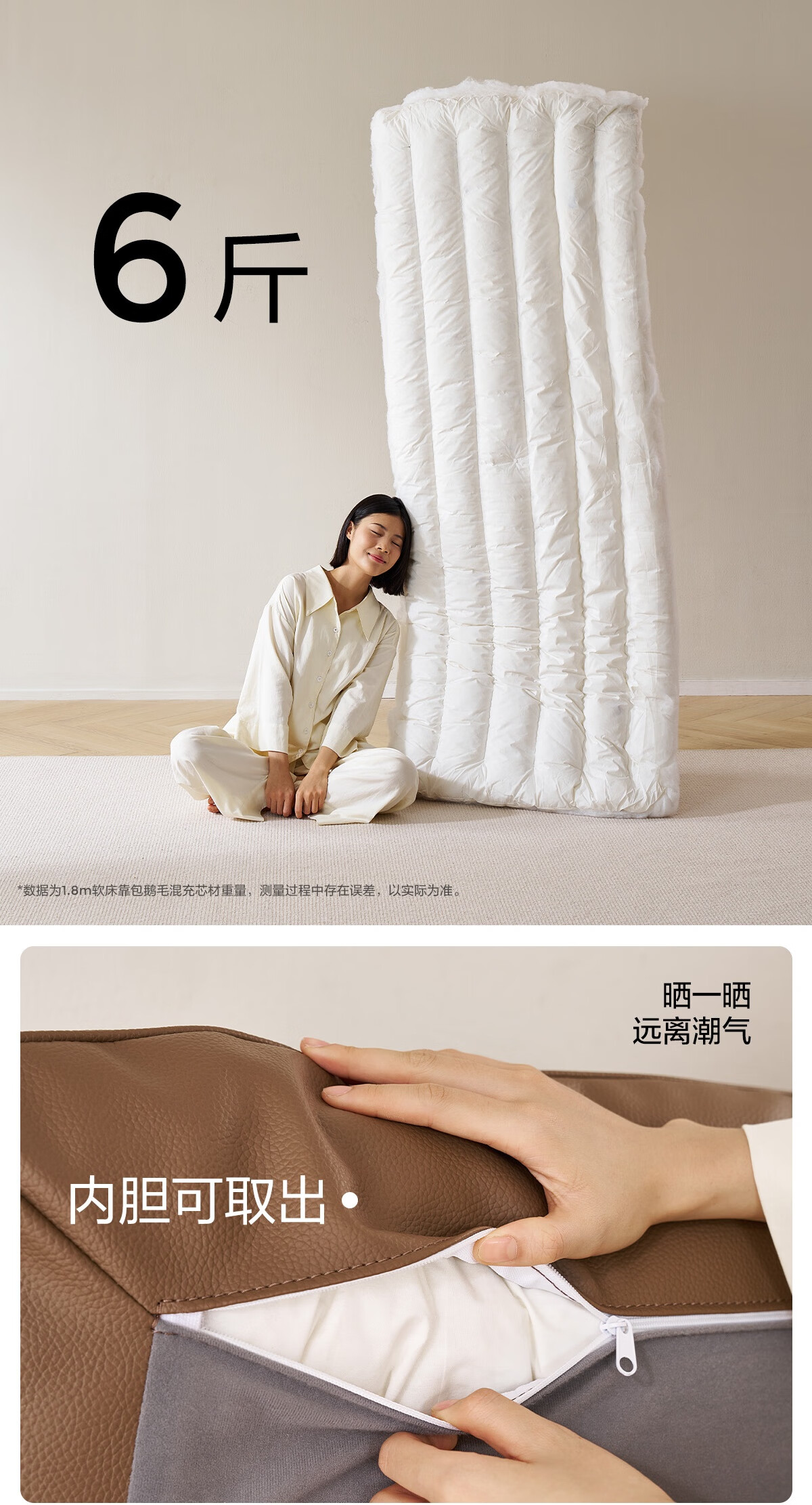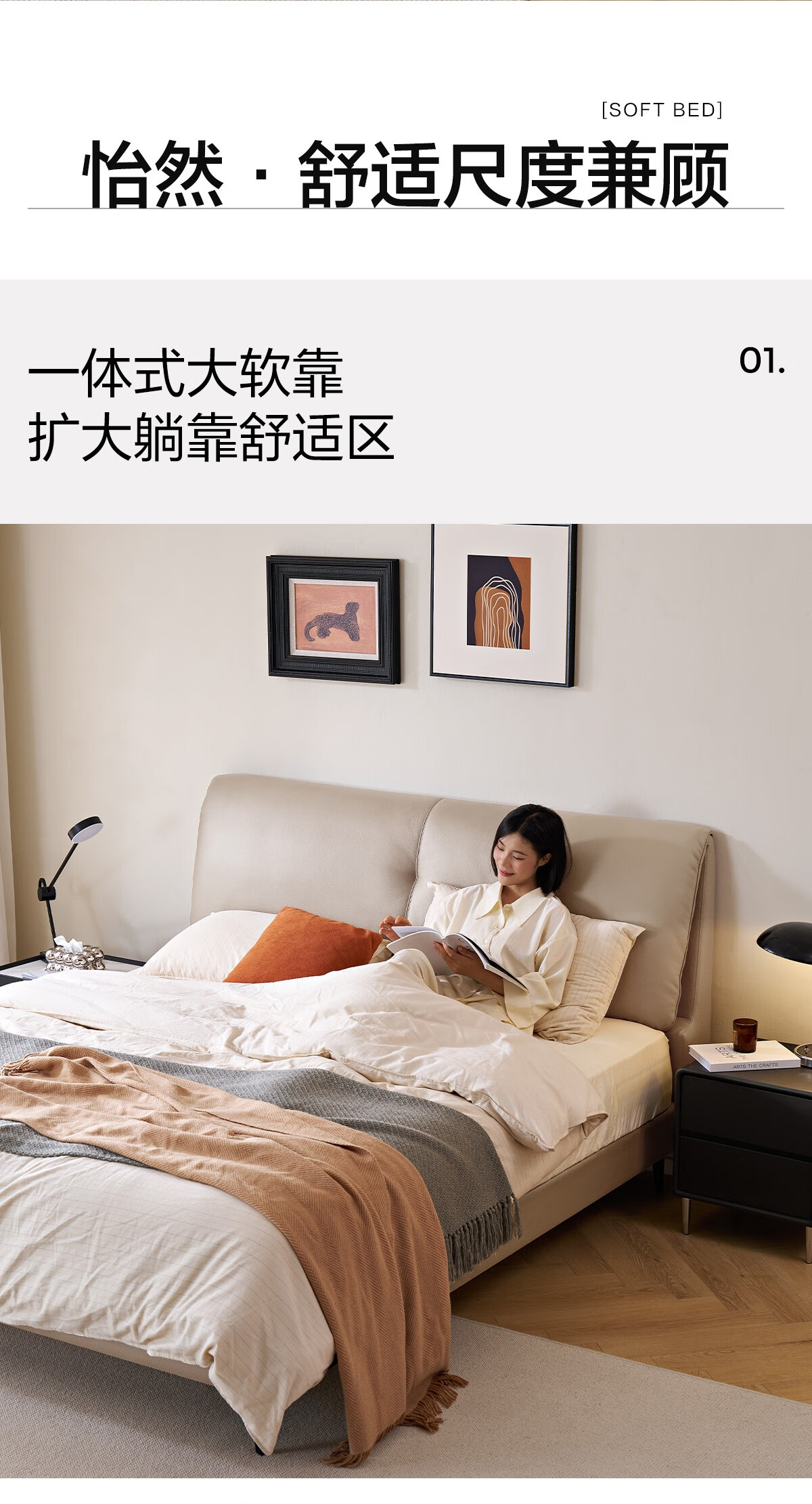 林氏家居1.8米x2米大象耳朵床双人床简约大气轻奢软靠包床主卧床PC587 栗棕色|高脚床 1800mm*2000mm
