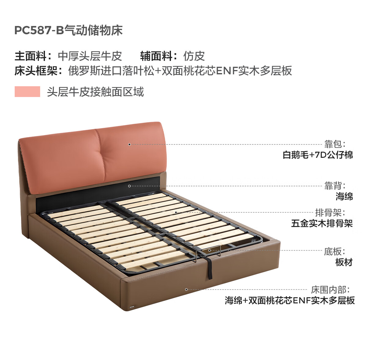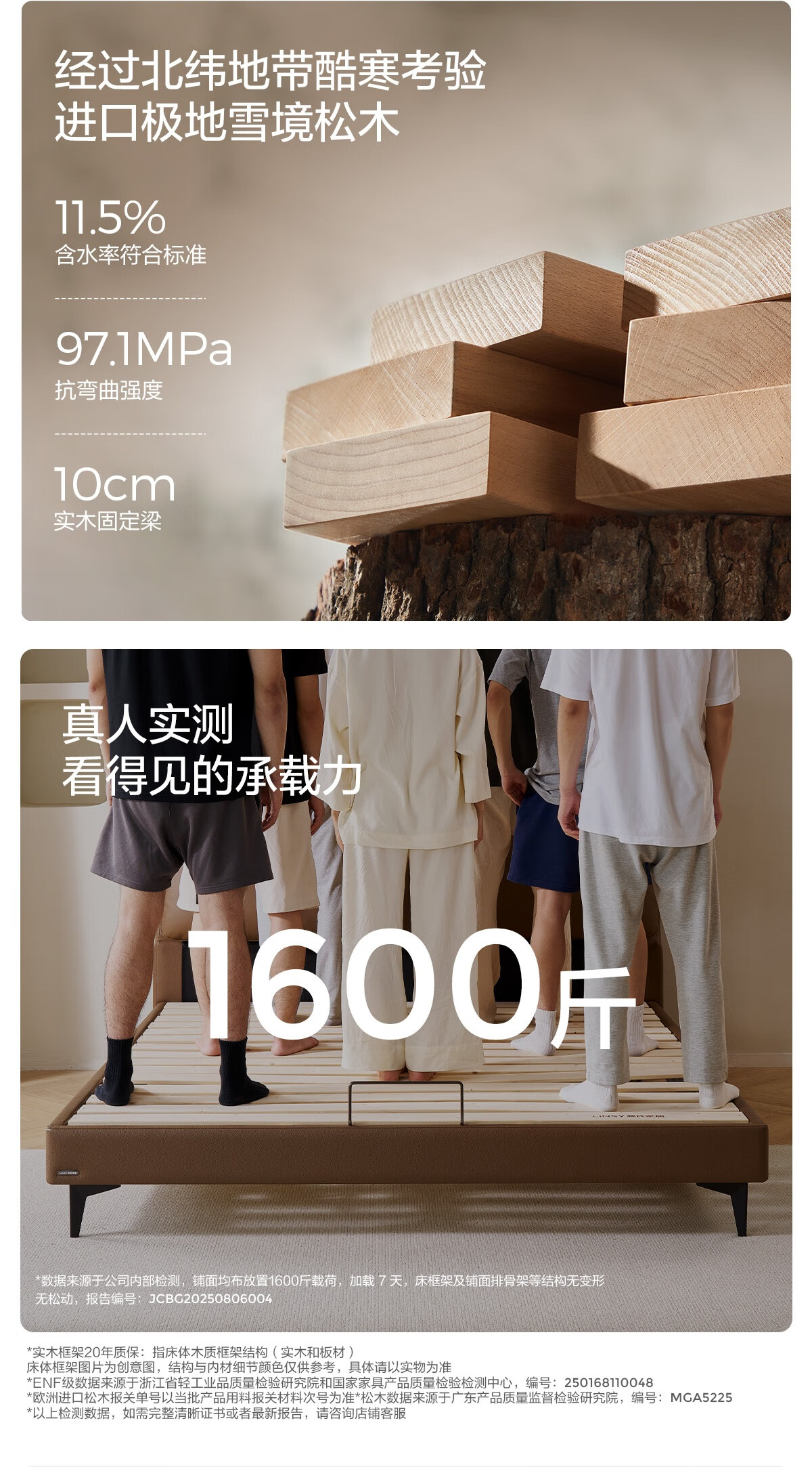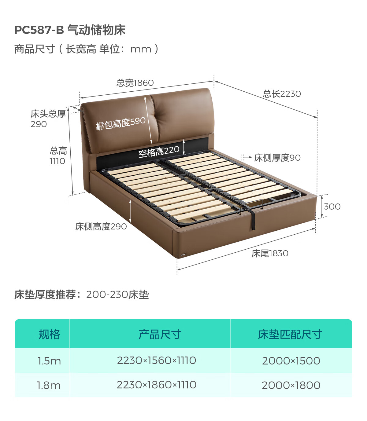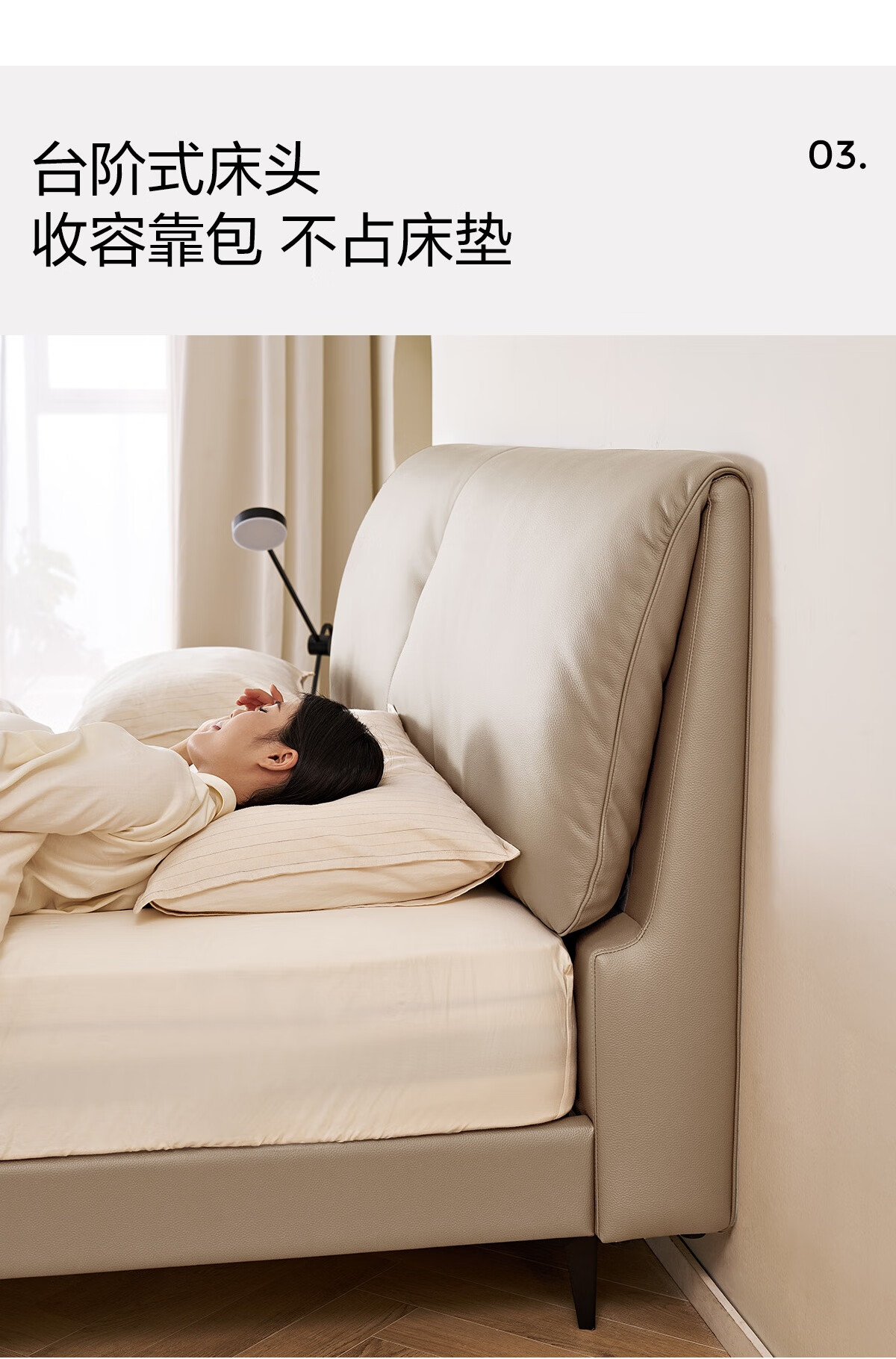 林氏家居1.8米x2米大象耳朵床双人床简约大气轻奢软靠包床主卧床PC587 栗棕色|高脚床 1800mm*2000mm