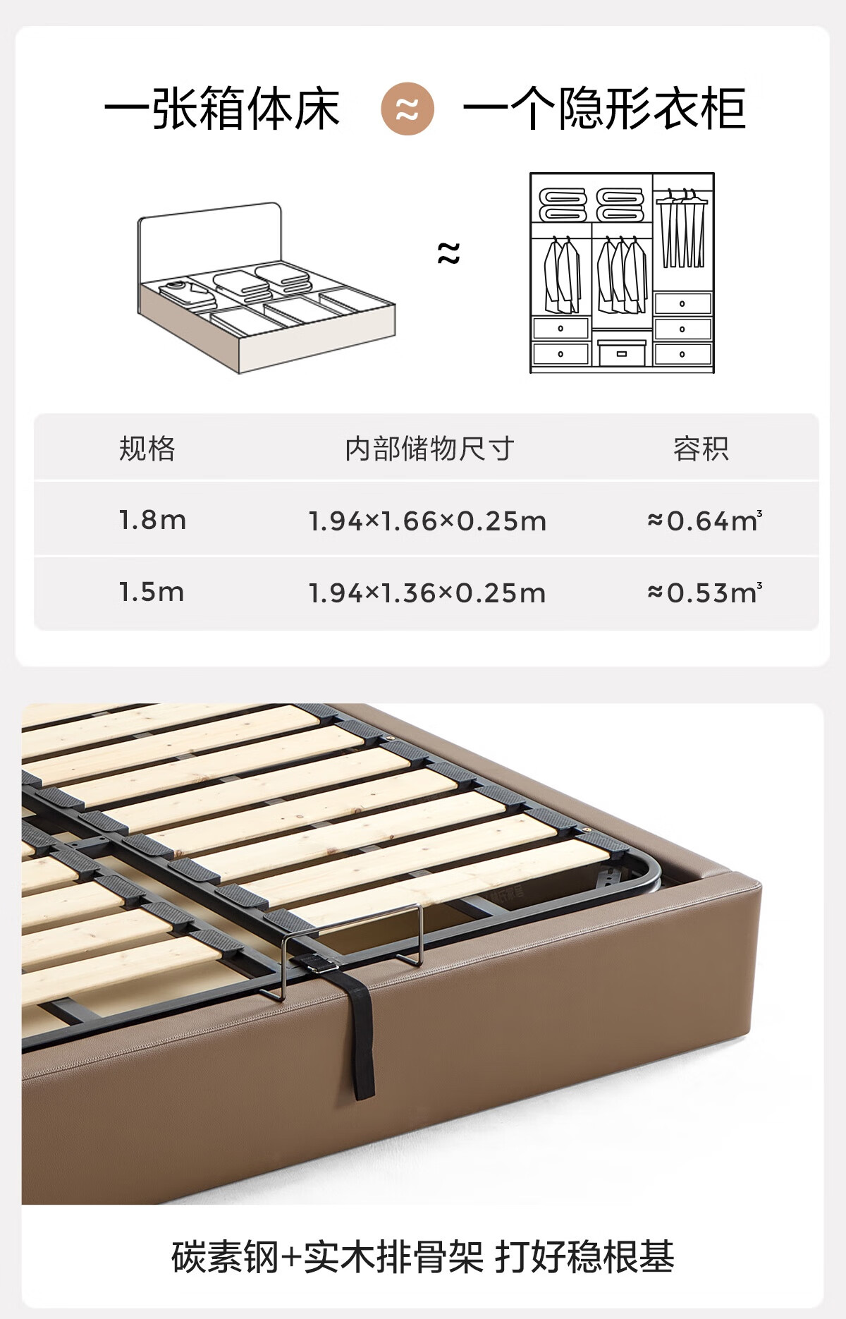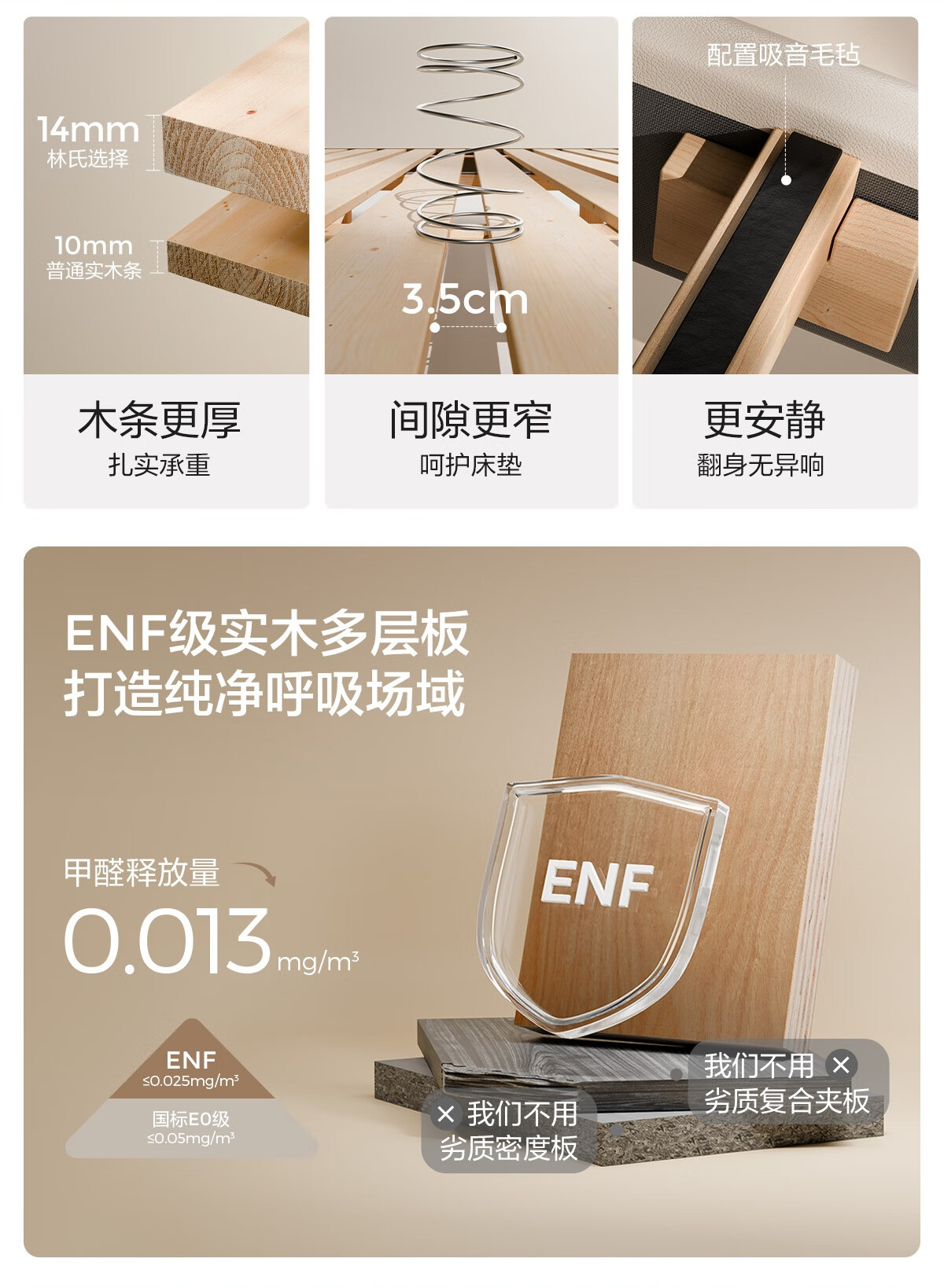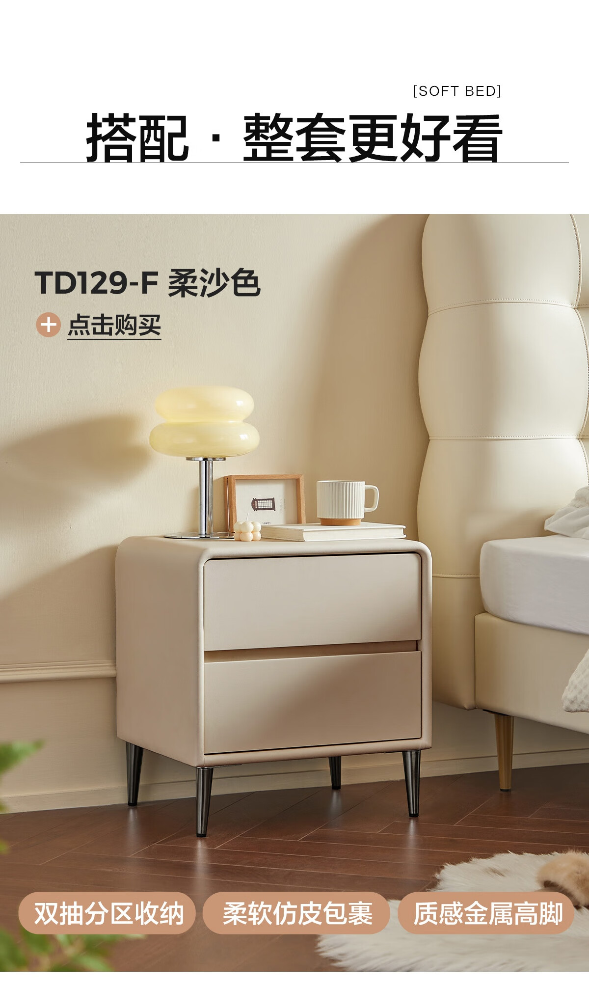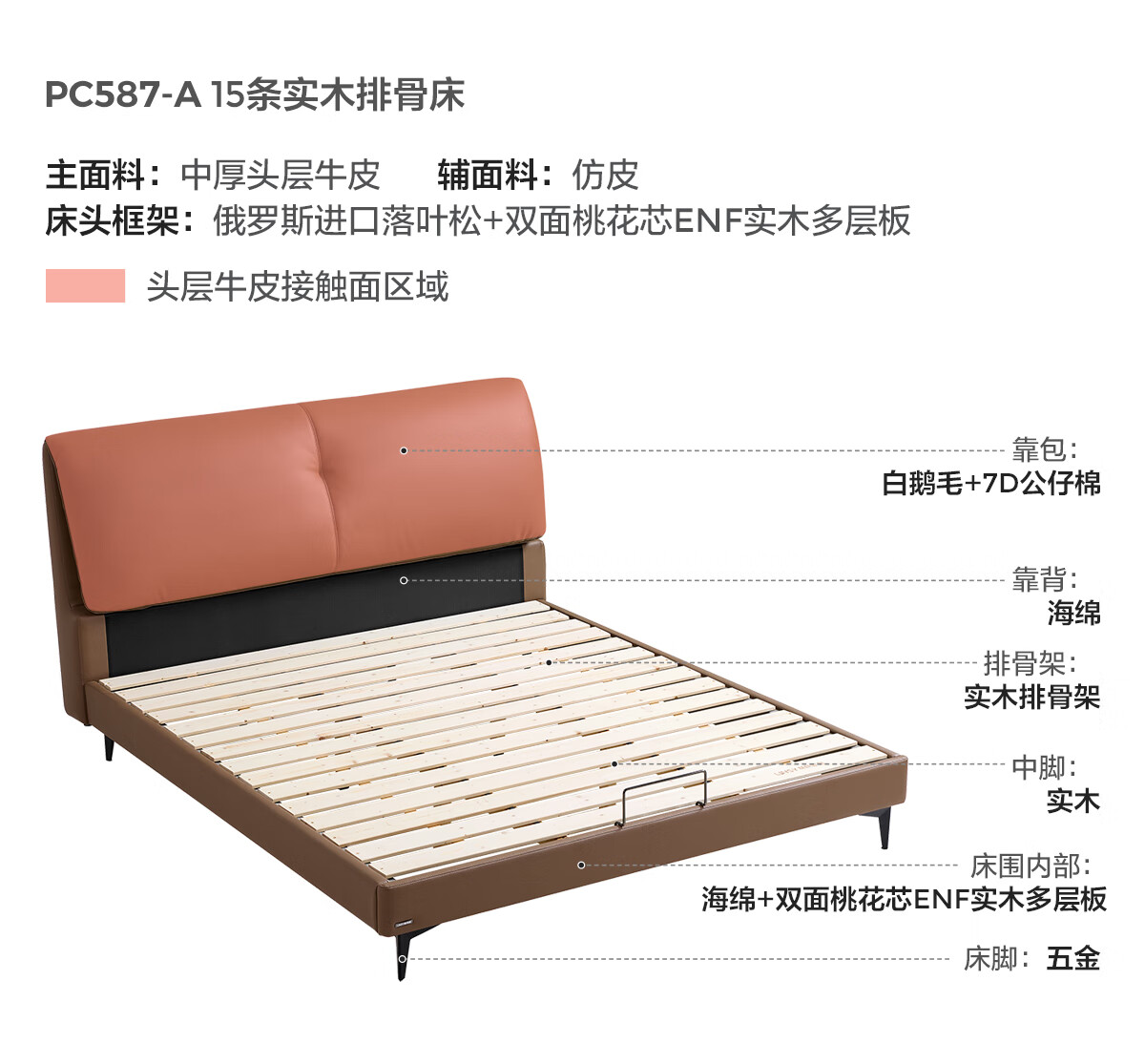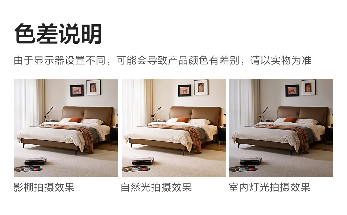 林氏家居1.8米x2米大象耳朵床双人床简约大气轻奢软靠包床主卧床PC587 栗棕色|高脚床 1800mm*2000mm