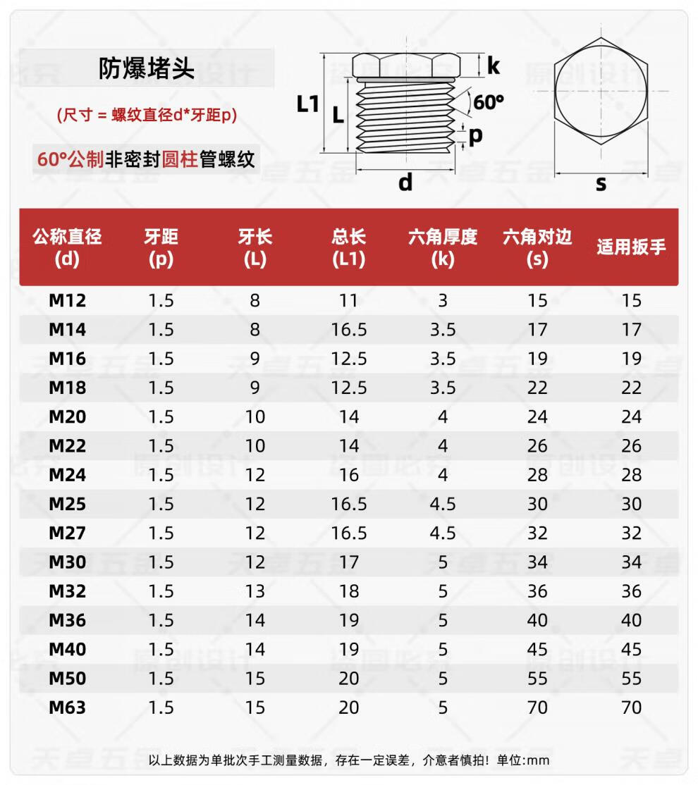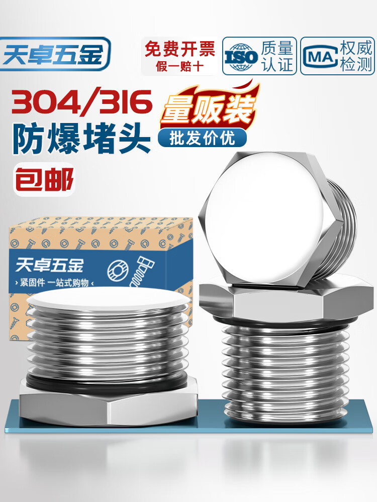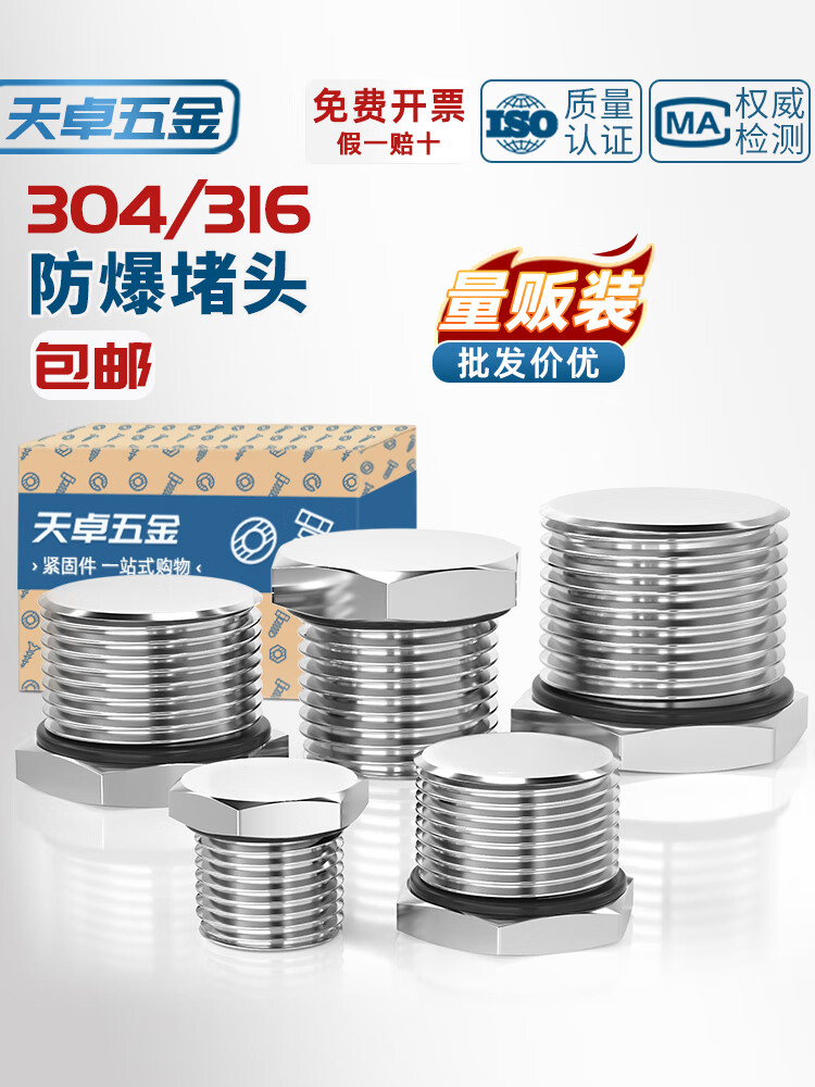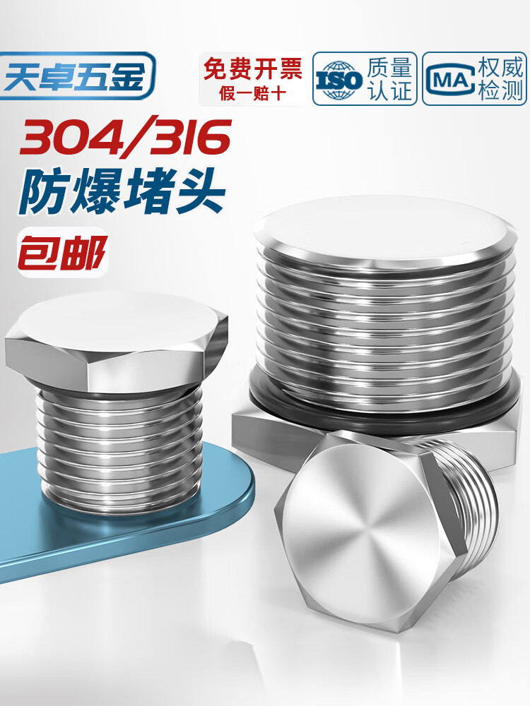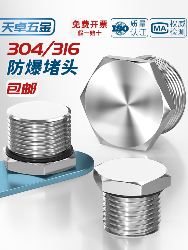 天卓五金304不锈钢外螺纹堵头M-G-NPT金属实心接头 防爆防水防尘堵头闷盖 M12*1.5【304材质】-5个