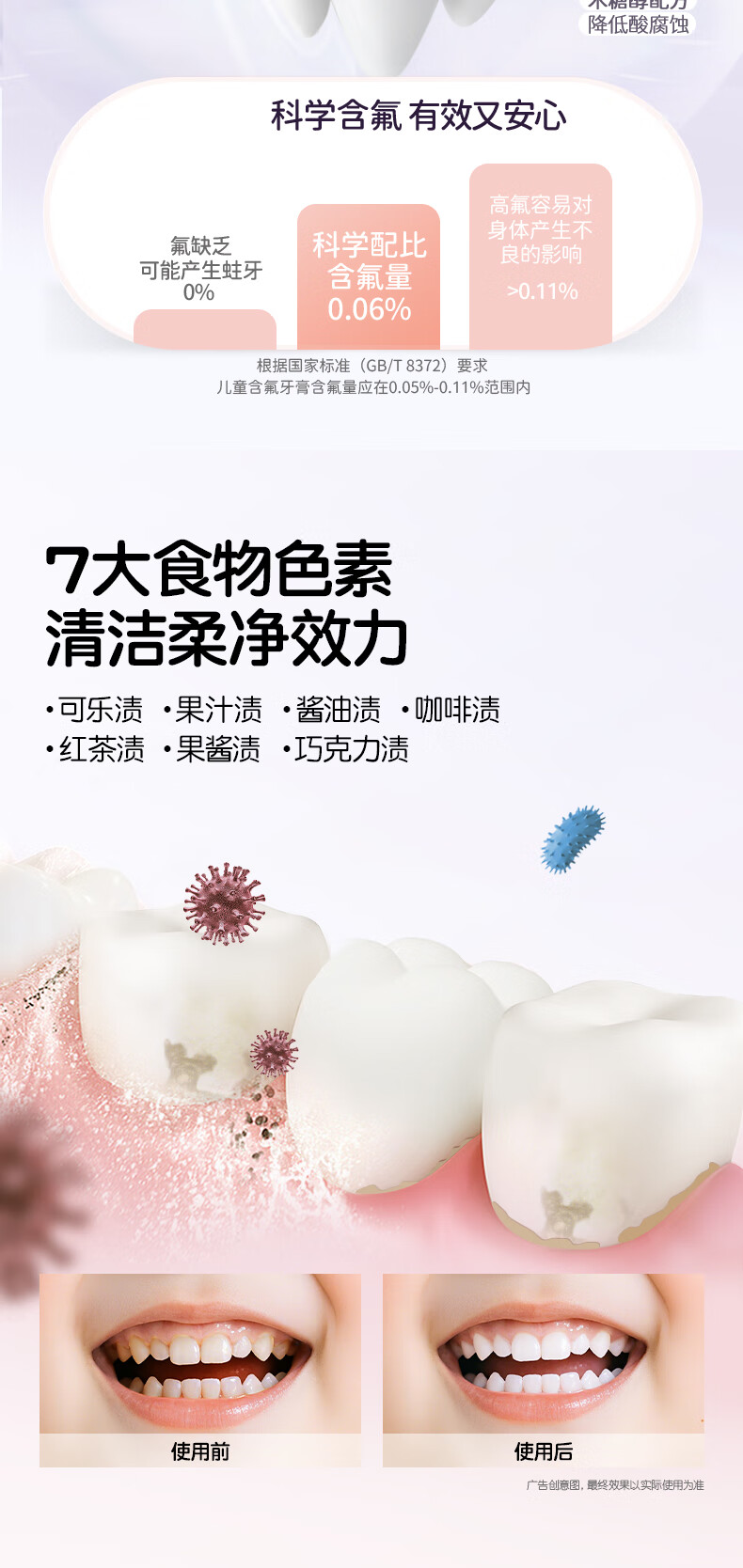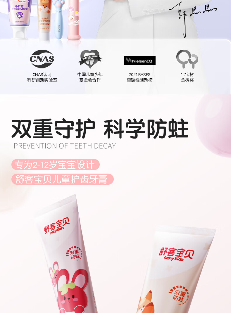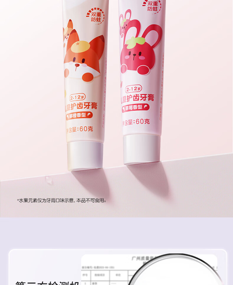 舒客儿童牙膏含氟2-3-6-12岁防蛀儿童宝宝换牙期 鲜橙60g+草莓60g