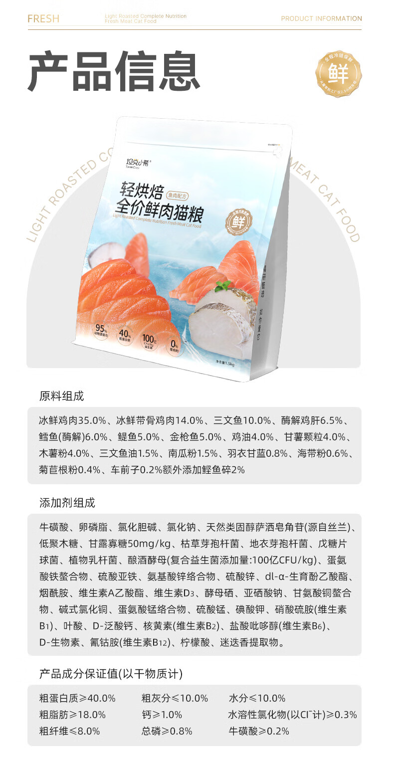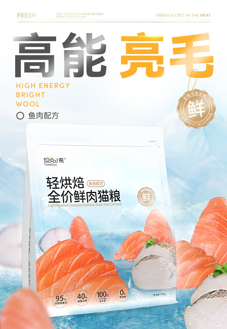 坦克小希猫粮轻烘焙全价鲜鱼肉化毛亮毛无谷0油脂成幼猫通用猫粮100g