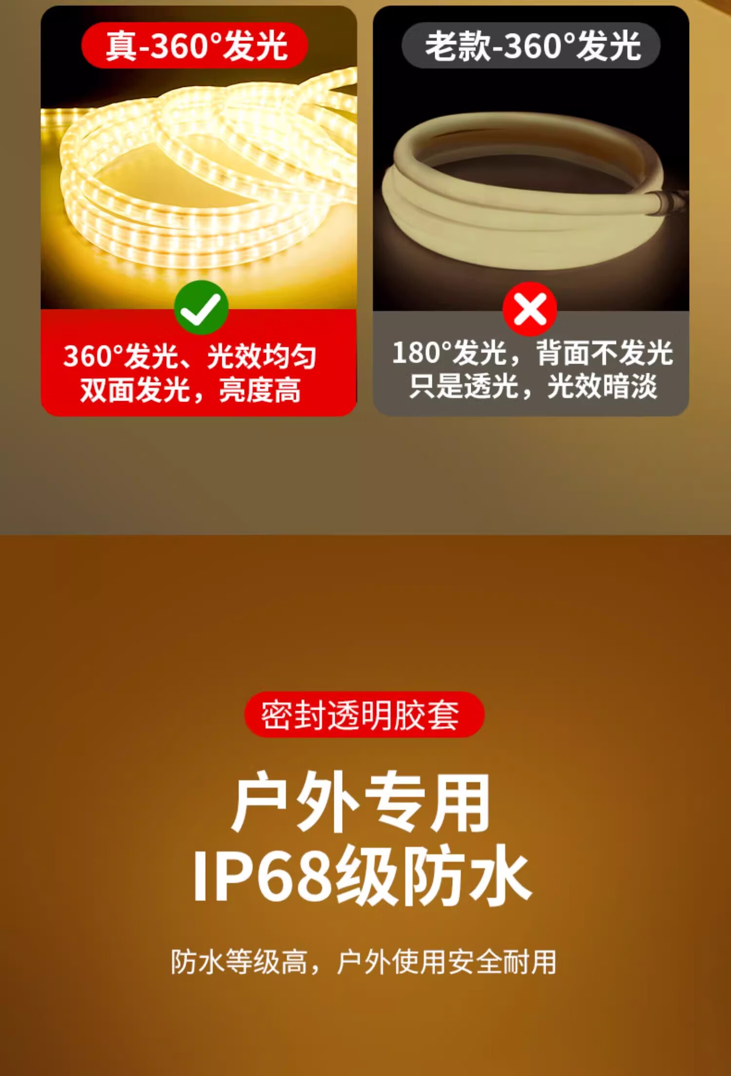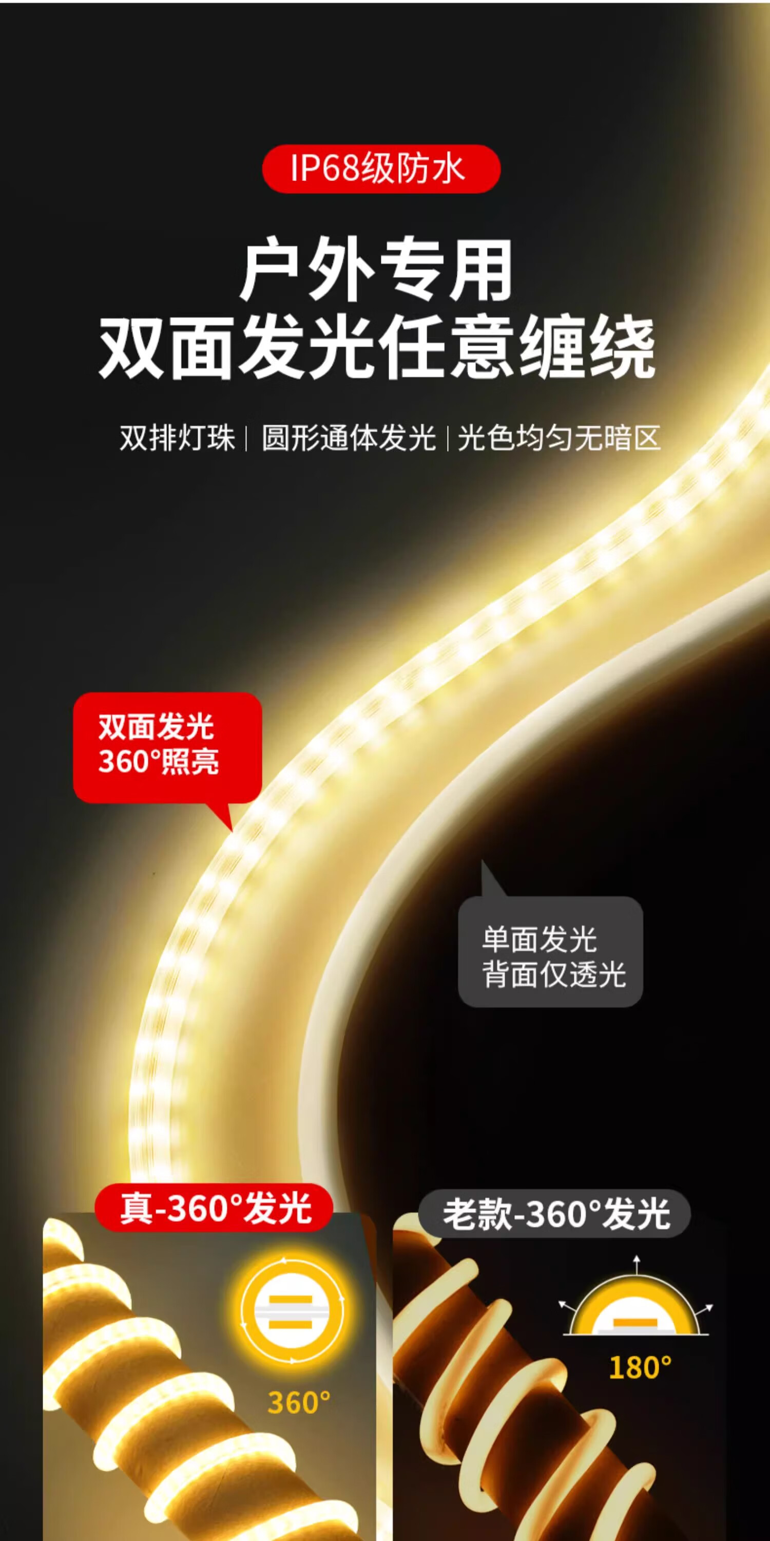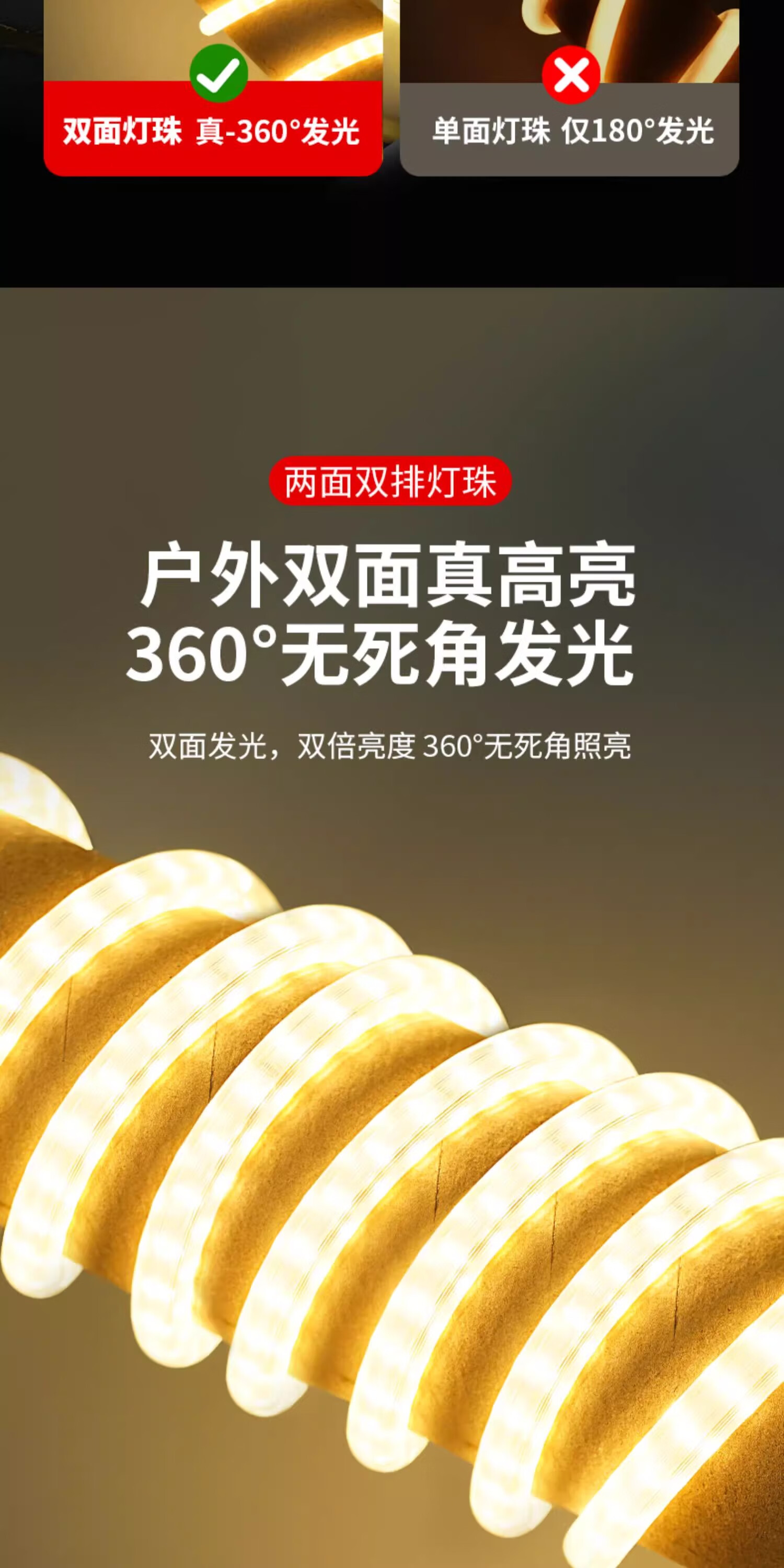 拉伯塔双面圆形灯带超亮led灯条户外防水工程外墙庭院照明2025年新款 120珠【白光】360°双面发光 圆形灯带专用插头