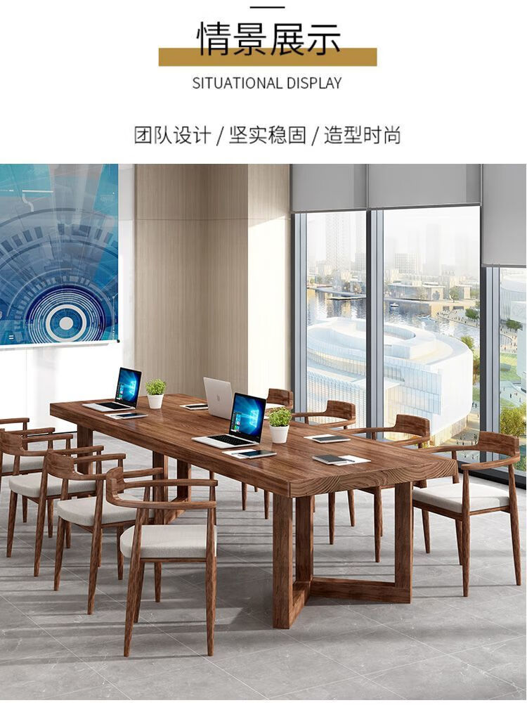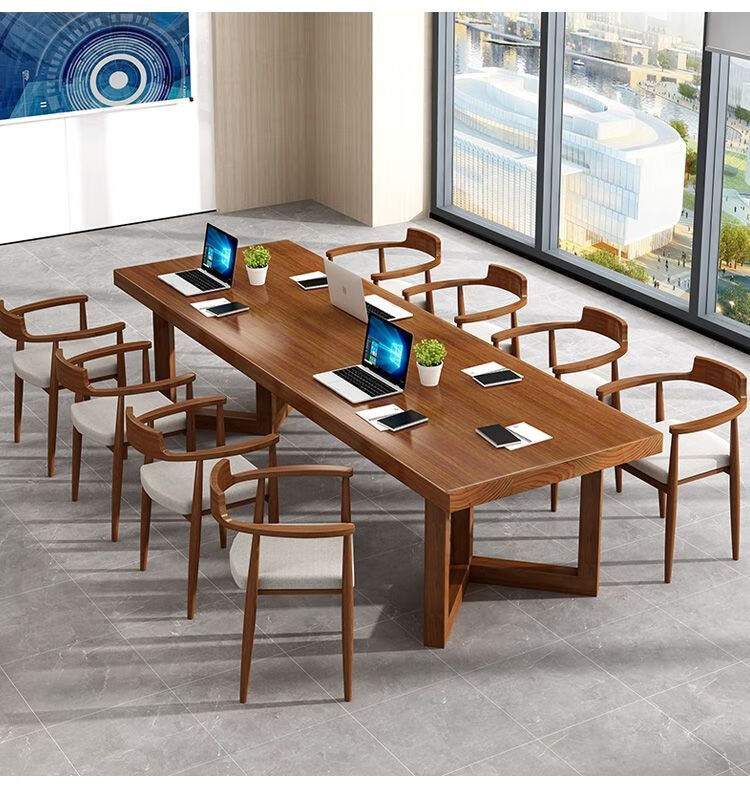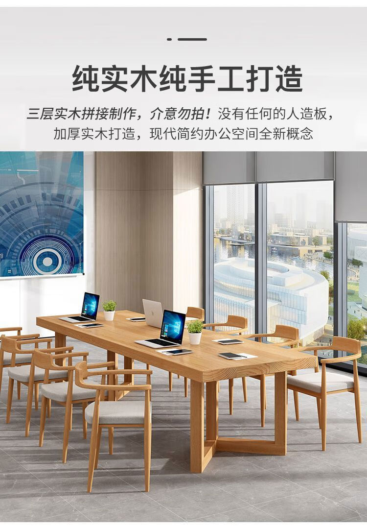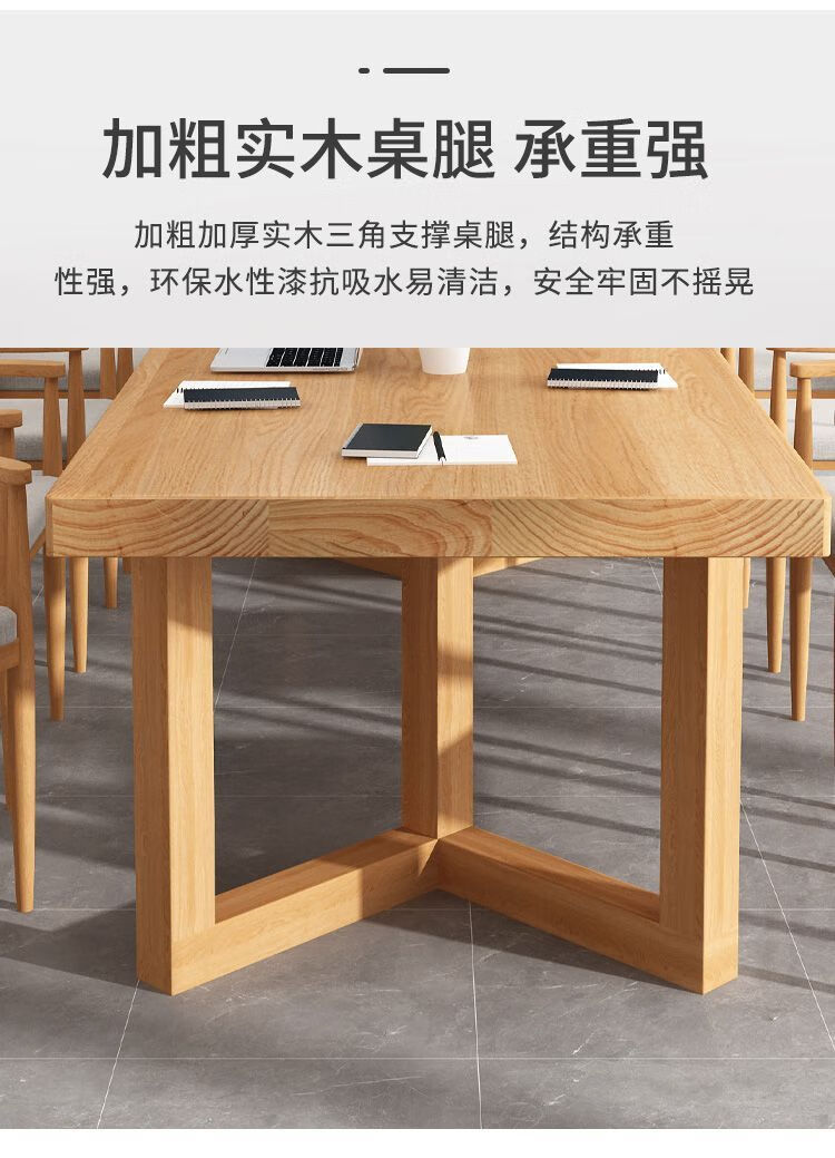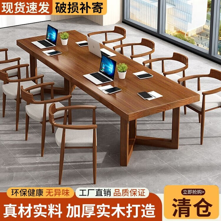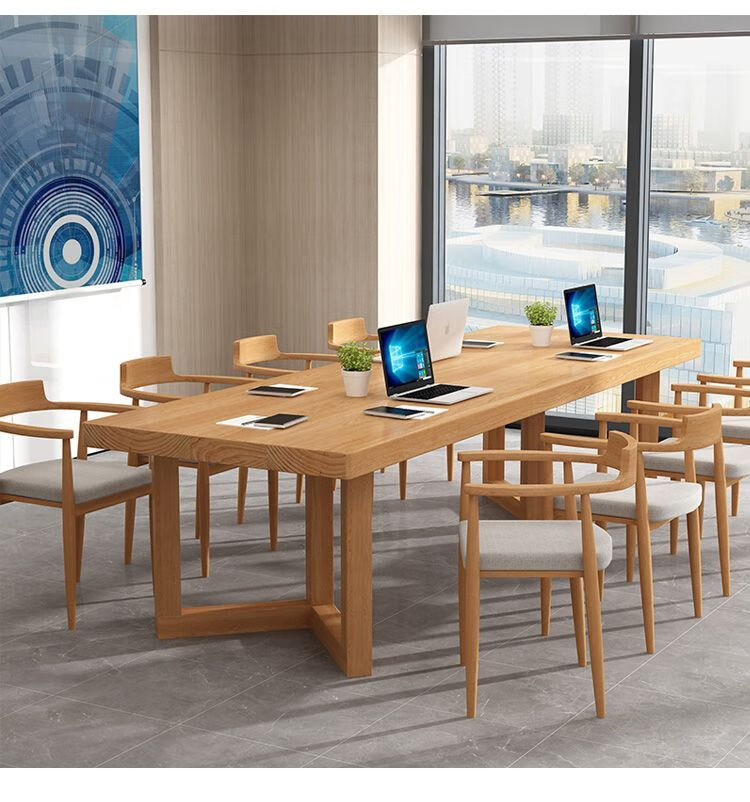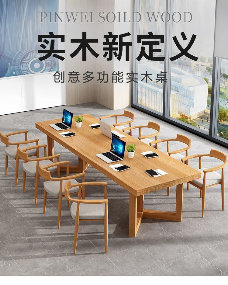 倘然之家简约现代全实木办公会议桌椅组合图书馆长条大桌子办公长桌工作台 【厚实纯实木用料】浅胡桃木/色 【松木材质】120*60cm+隔热垫*1