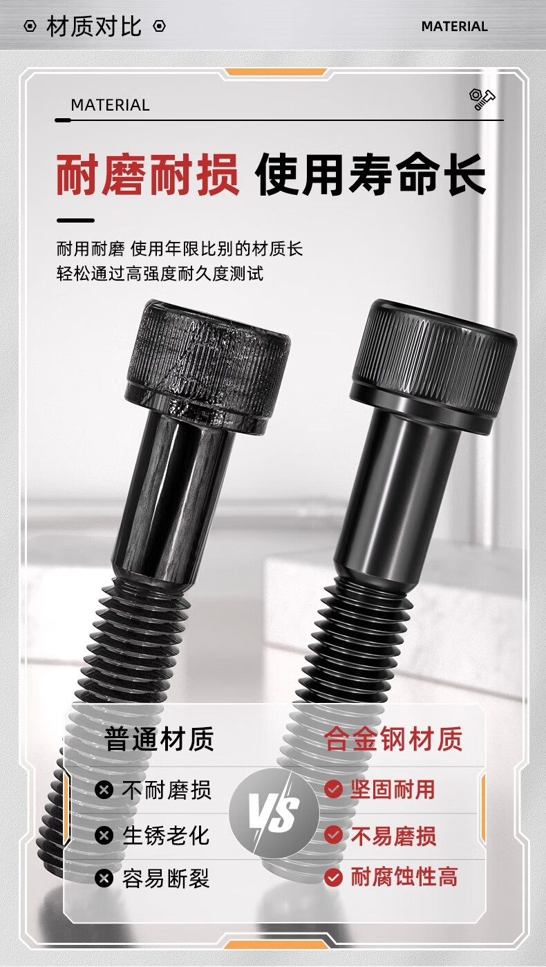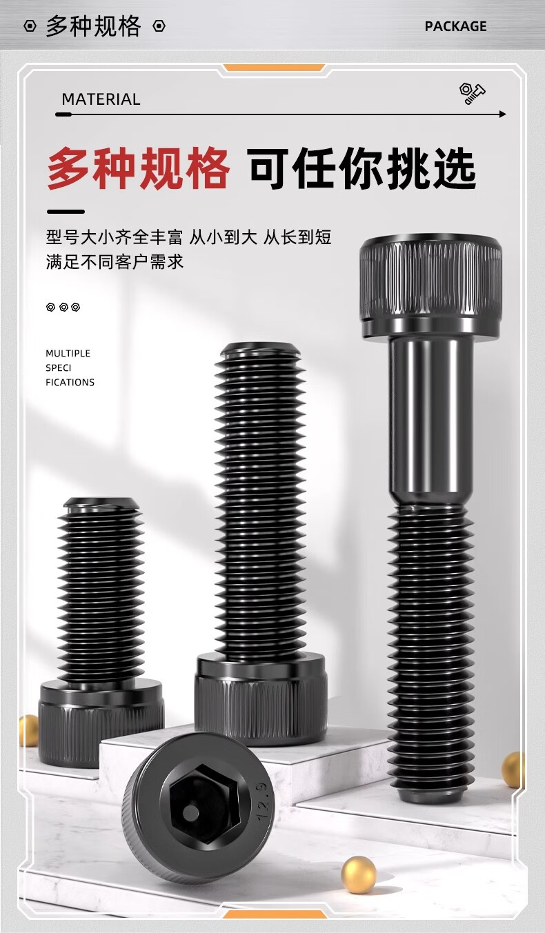 天卓五金12.9级高强度内六角螺丝钉圆柱头杯头螺栓M3M4M5M6M8M10M12M16M20 -螺丝表层 涂有【防锈油】-