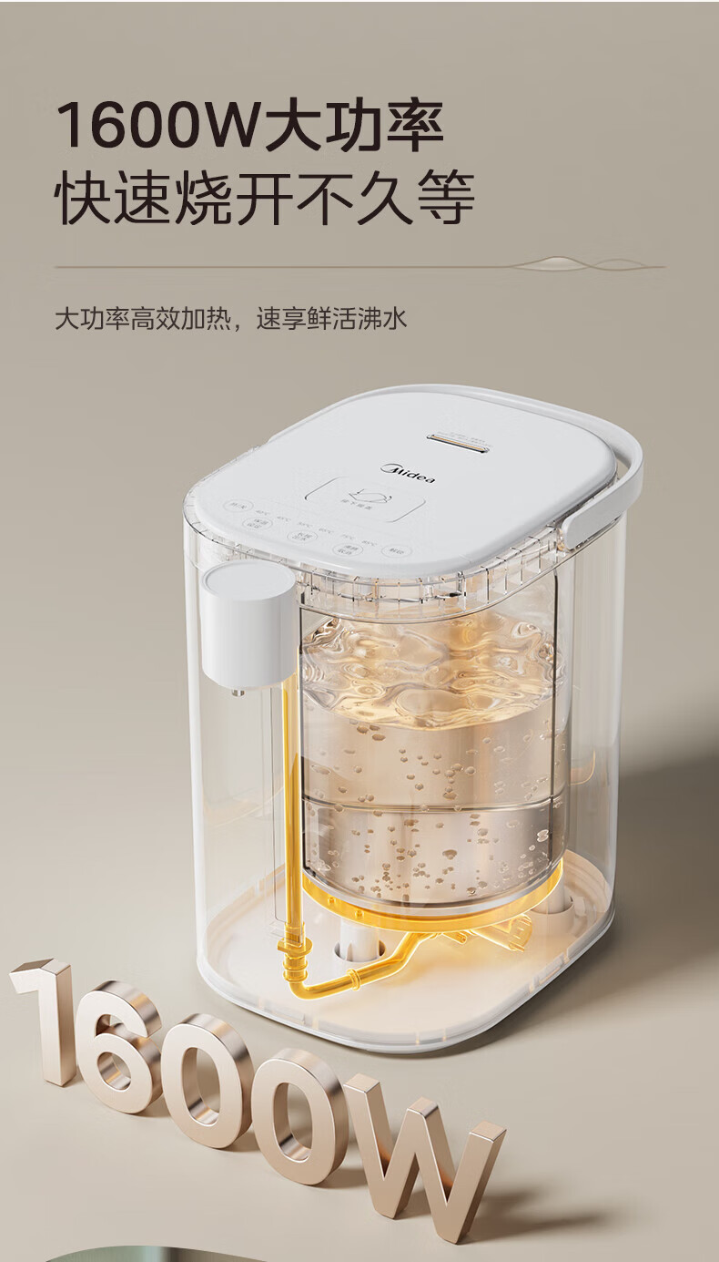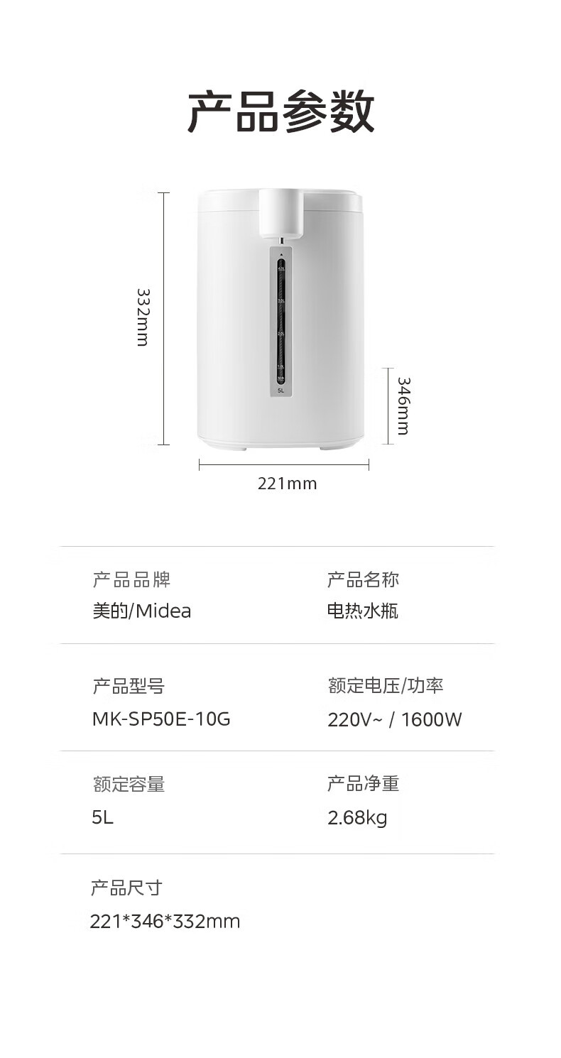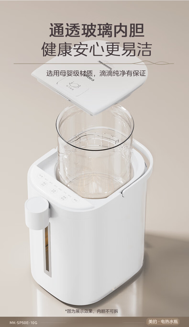 美的(Midea)电热水瓶 烧水壶保温一体机 玻璃内胆无异味 智能恒温 精准调温控温 冲奶神器 5L大容量50E-10G 5L 【玻璃内胆】母婴级材质