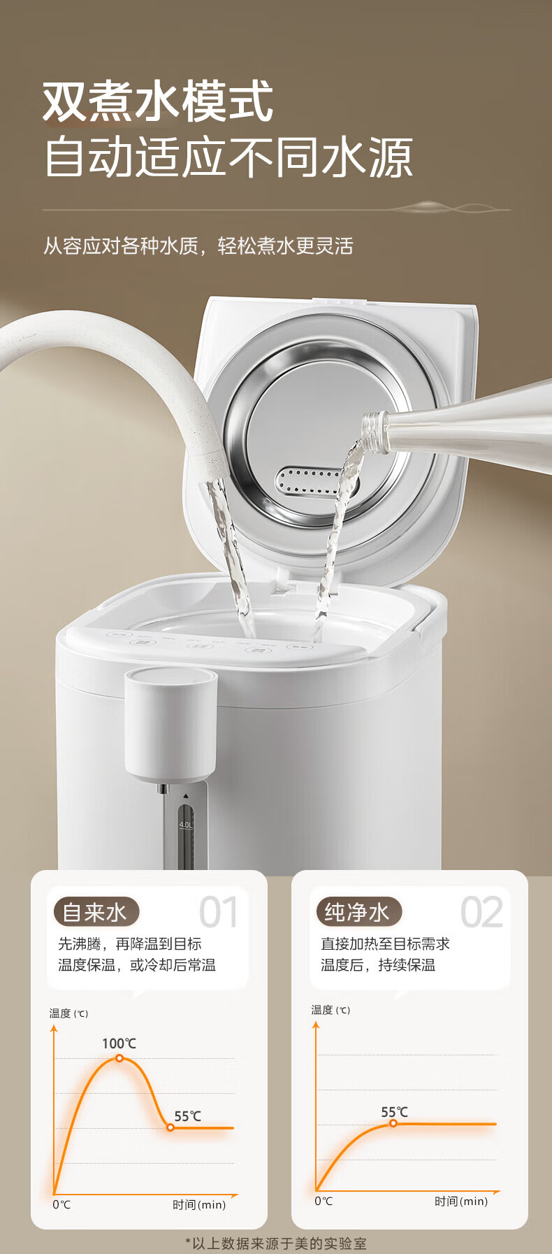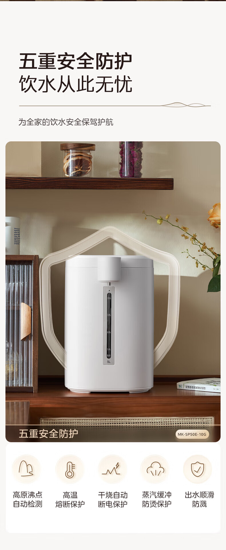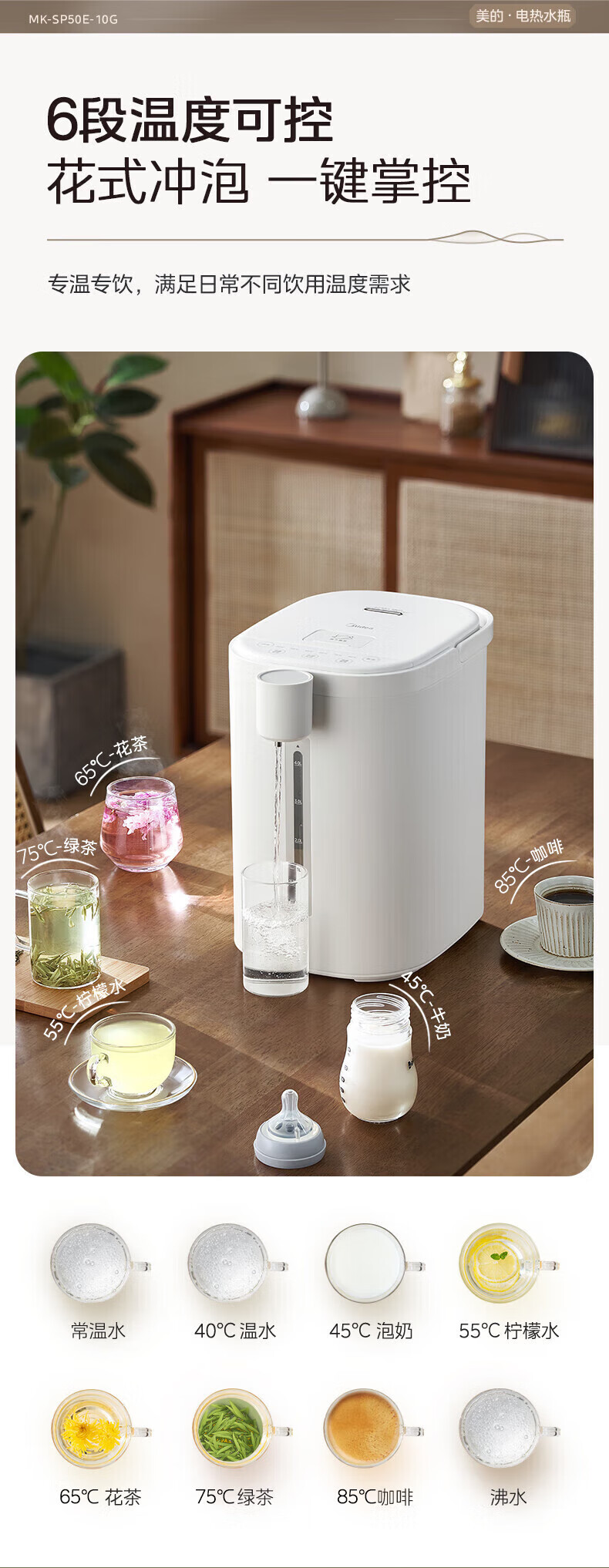 美的(Midea)电热水瓶 烧水壶保温一体机 玻璃内胆无异味 智能恒温 精准调温控温 冲奶神器 5L大容量50E-10G 5L 【玻璃内胆】母婴级材质