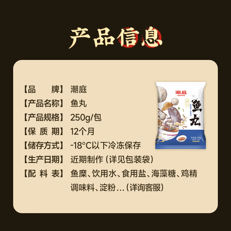 潮庭潮汕鱼丸250g 低脂高蛋白 内海新鲜海鱼 儿童早餐火锅夜宵年货