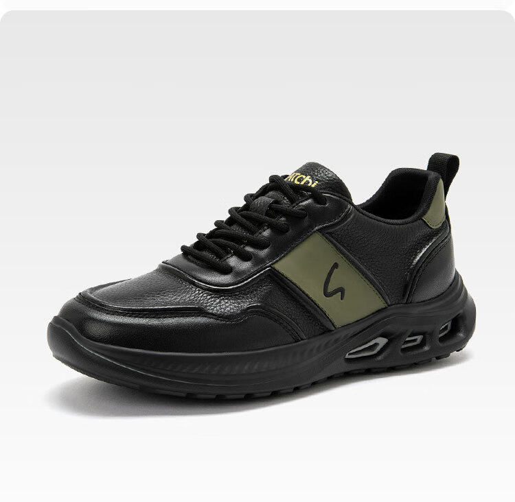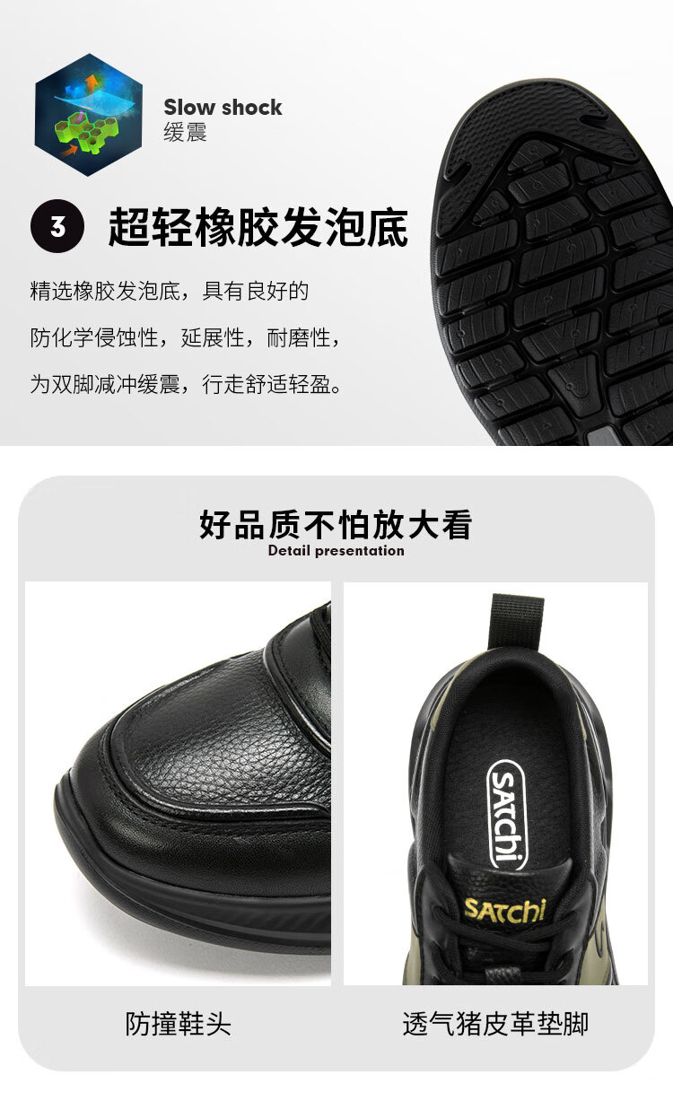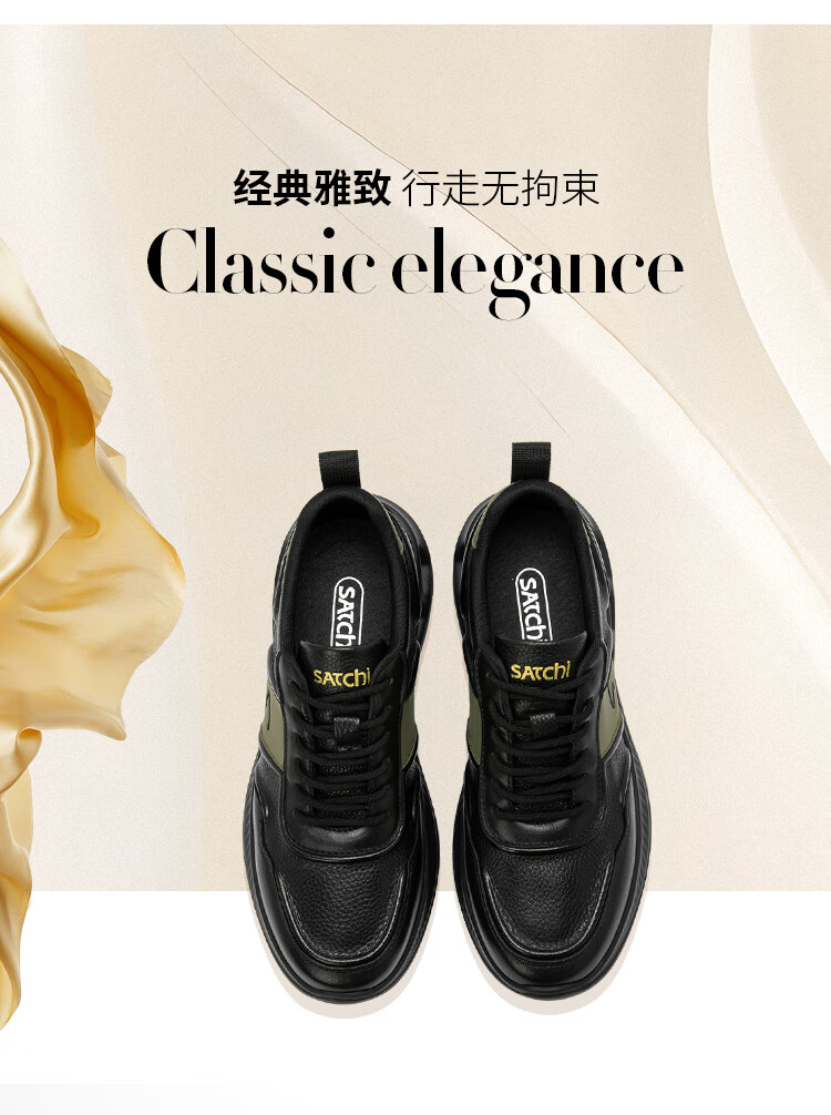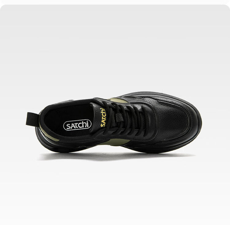 沙驰(SATCHI)男鞋新款牛皮拼接酷感缓震休闲运动鞋厚底潮流跑步鞋老爹鞋板鞋 黑色(1DXVB0130) 43 欧码(选小一码)