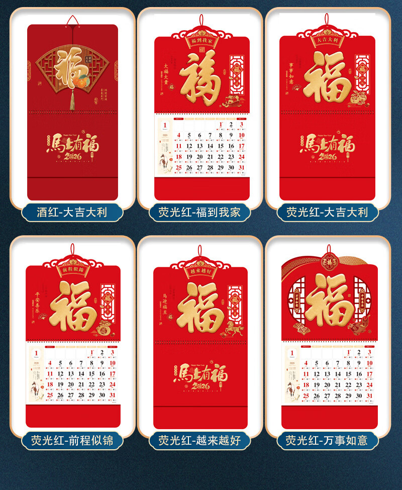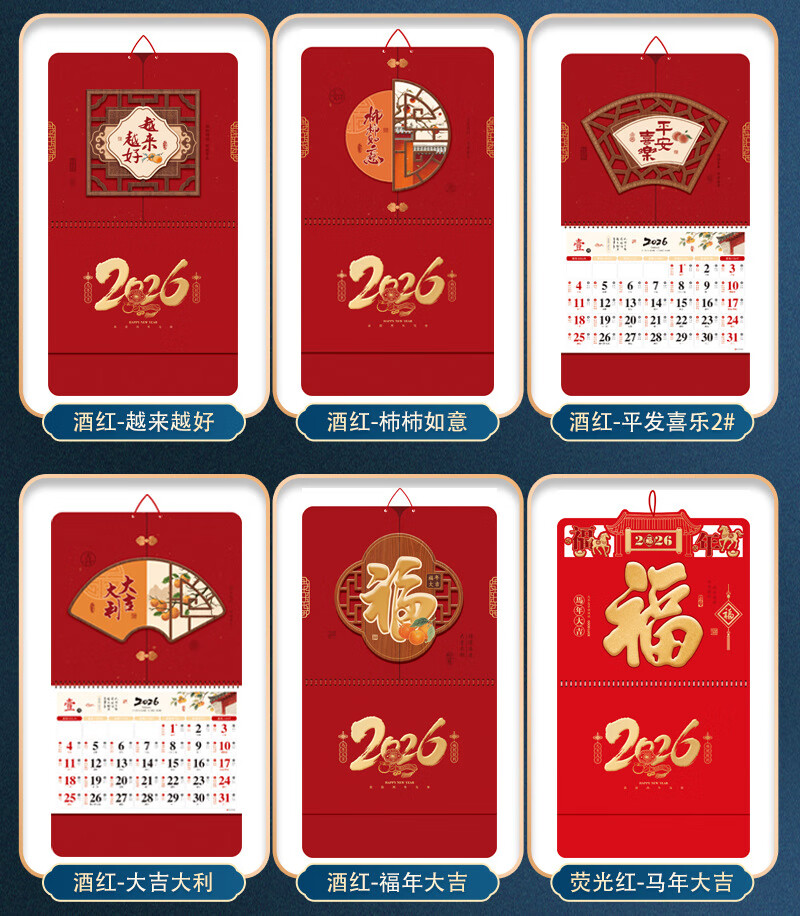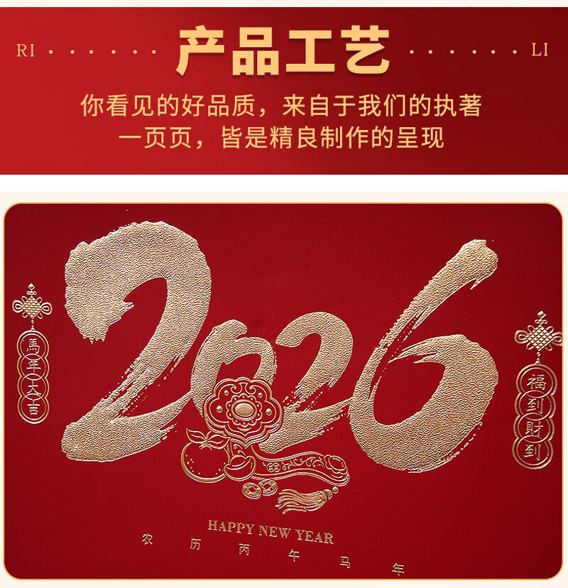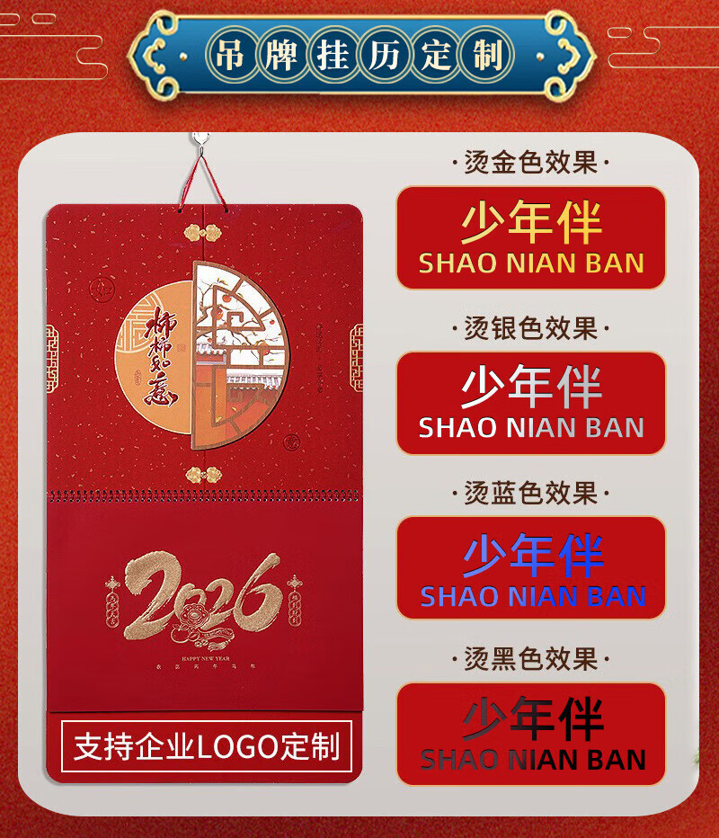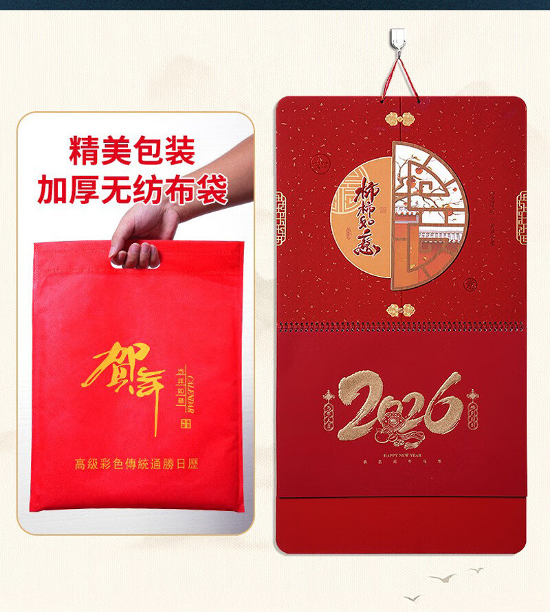 少年伴挂历日历2026年马年月历农历精致家用办公挂墙式黄历正六开吊历中国风定制广告公司 大吉大利26147