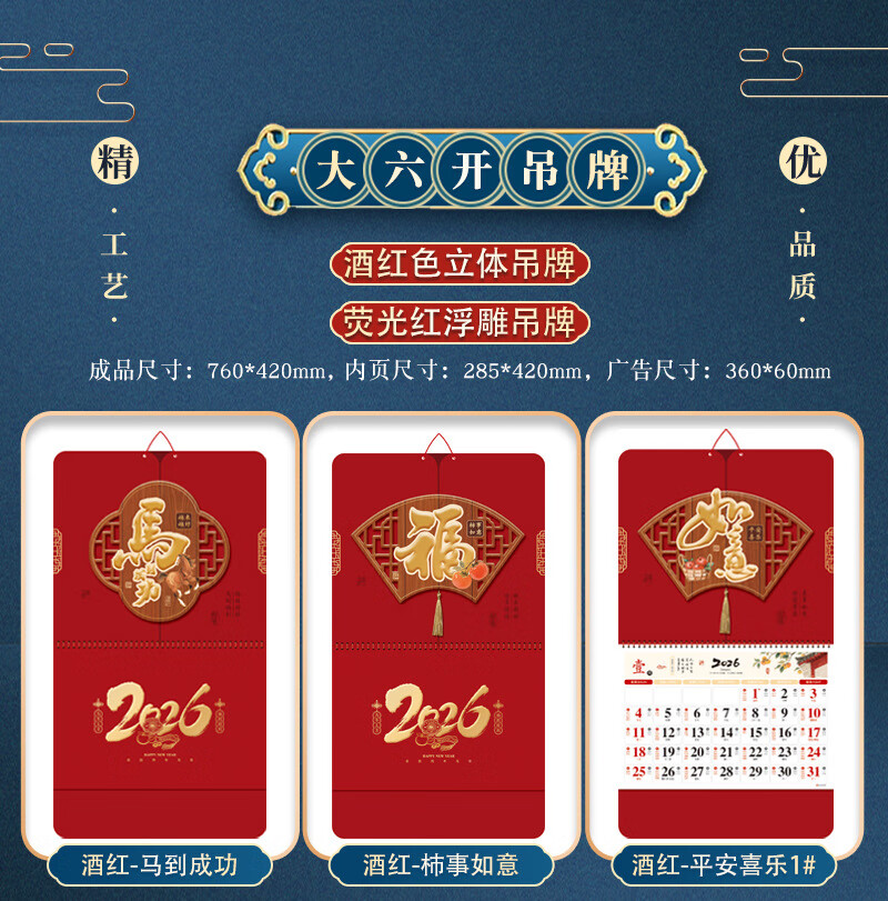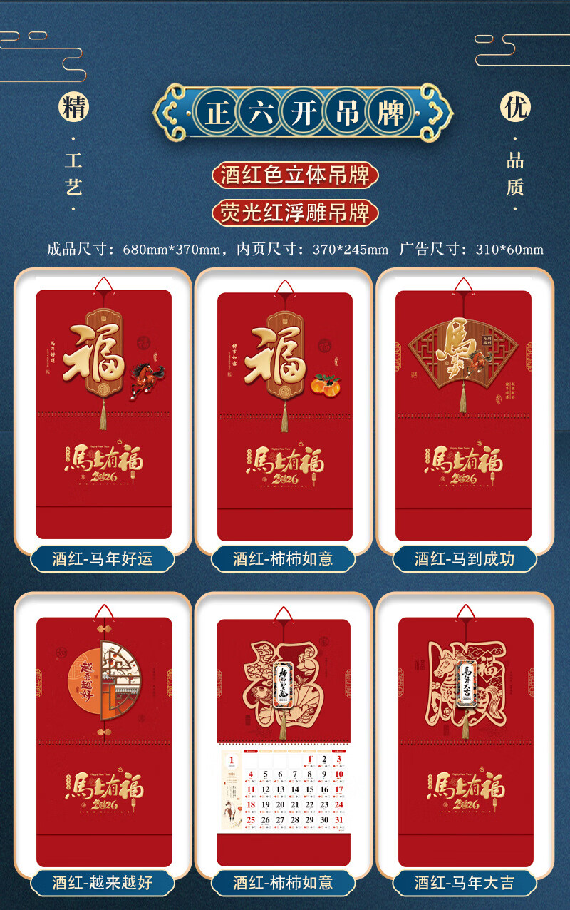 具才挂历2026年挂墙式家用办公高档卷轴日历马年龙马精神水墨风骏马画手撕月历年历竹席款13张筒装厂直