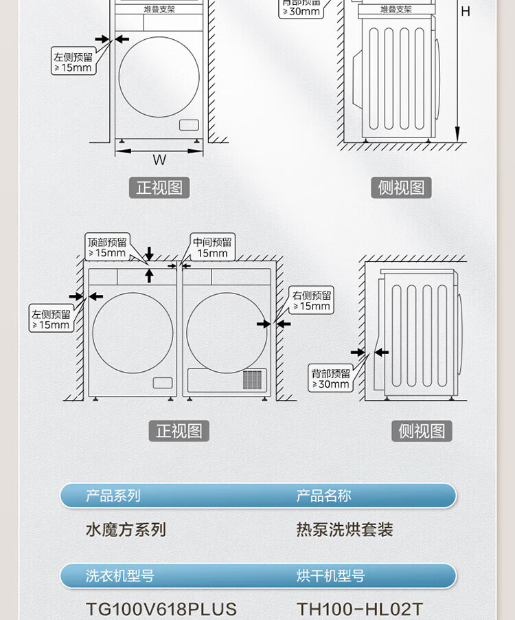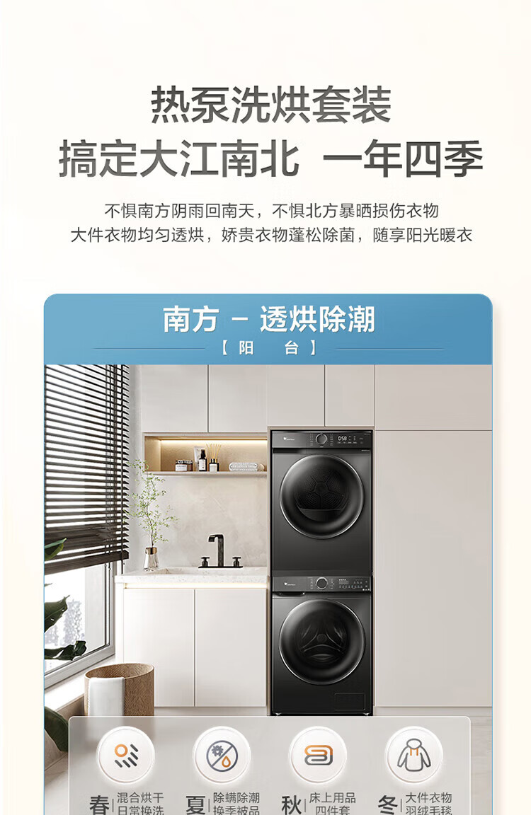 小天鹅(LittleSwan)小乌梅3.0洗烘套装10KG全自动滚筒洗衣机+10KG变频热泵烘干机 纯平全嵌一级能效 TG10VE40+TH10VE40
