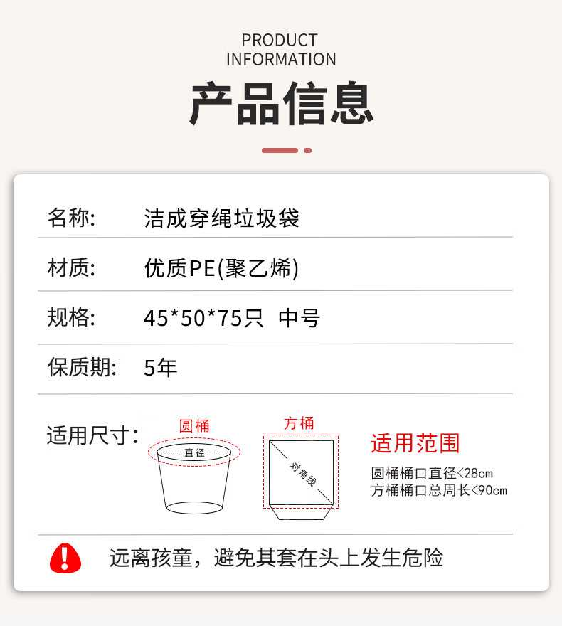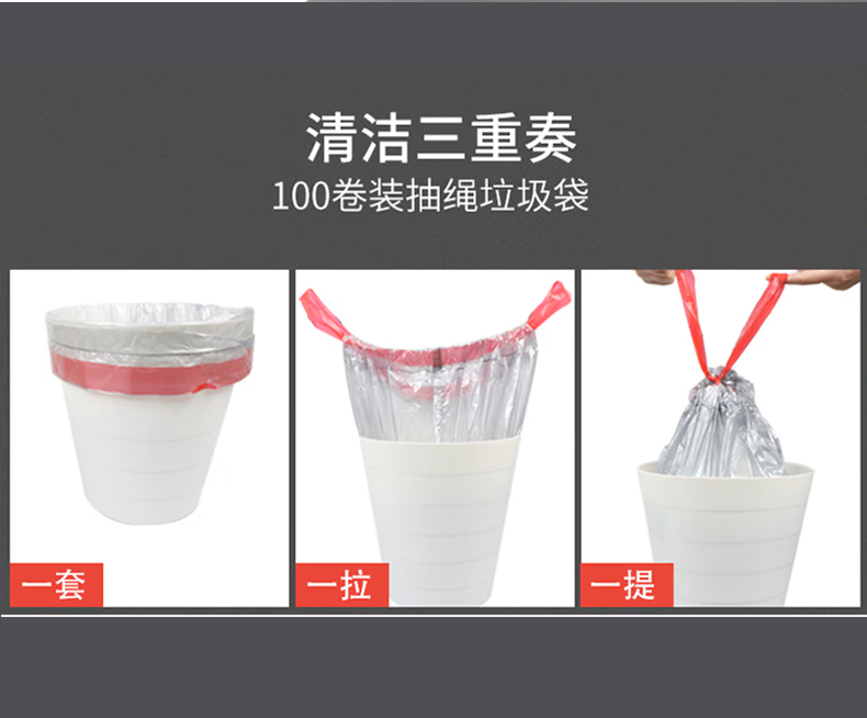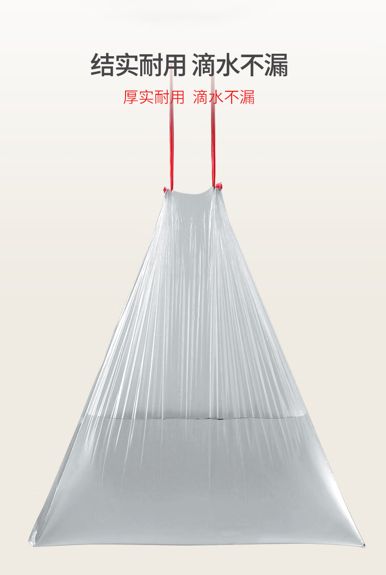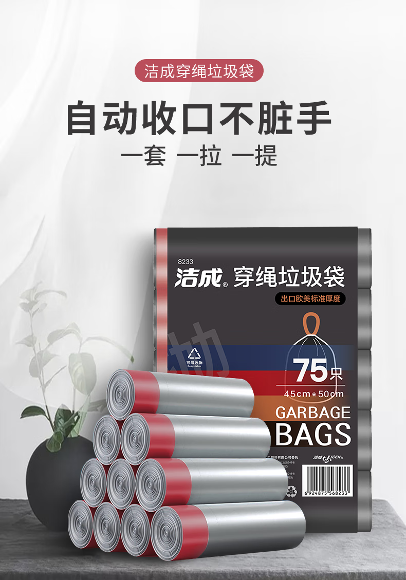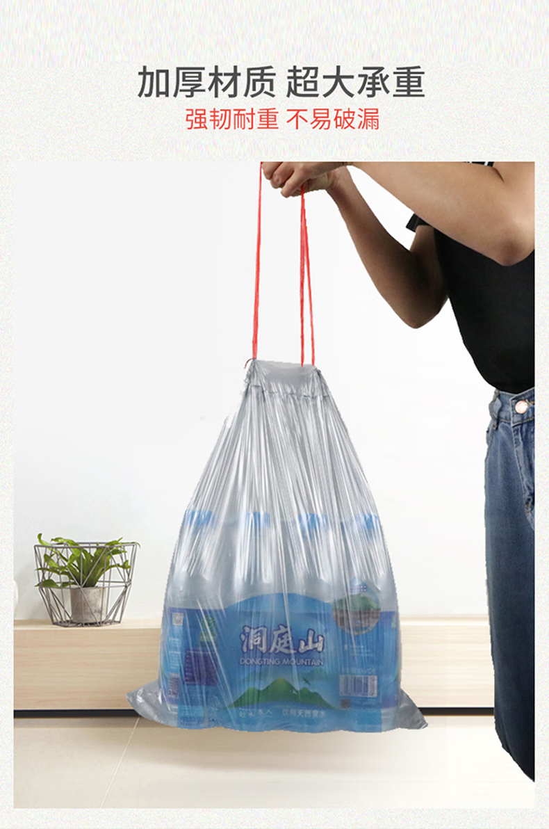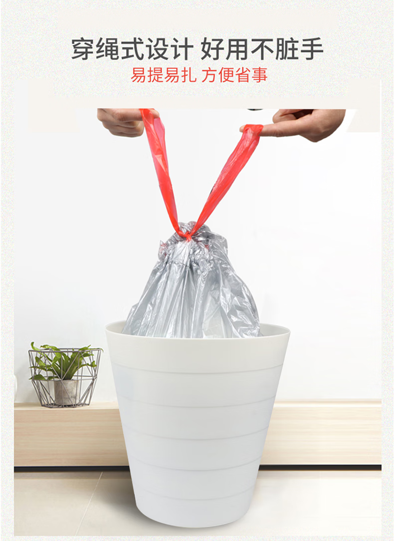 洁成抽绳垃圾袋自动收口手提家用穿绳袋 【加厚款】抽绳50cm*45cm*150只