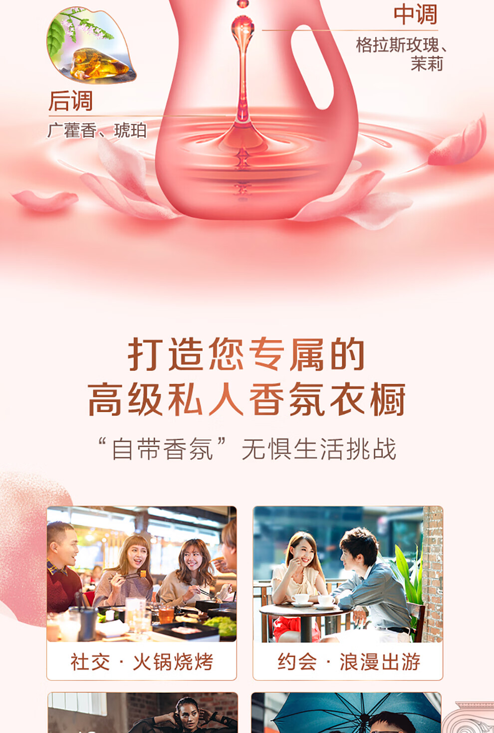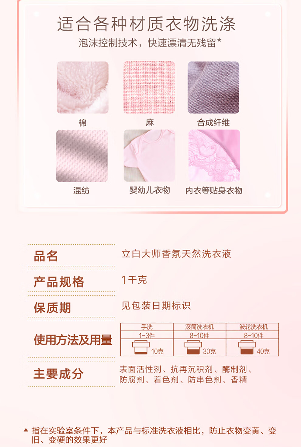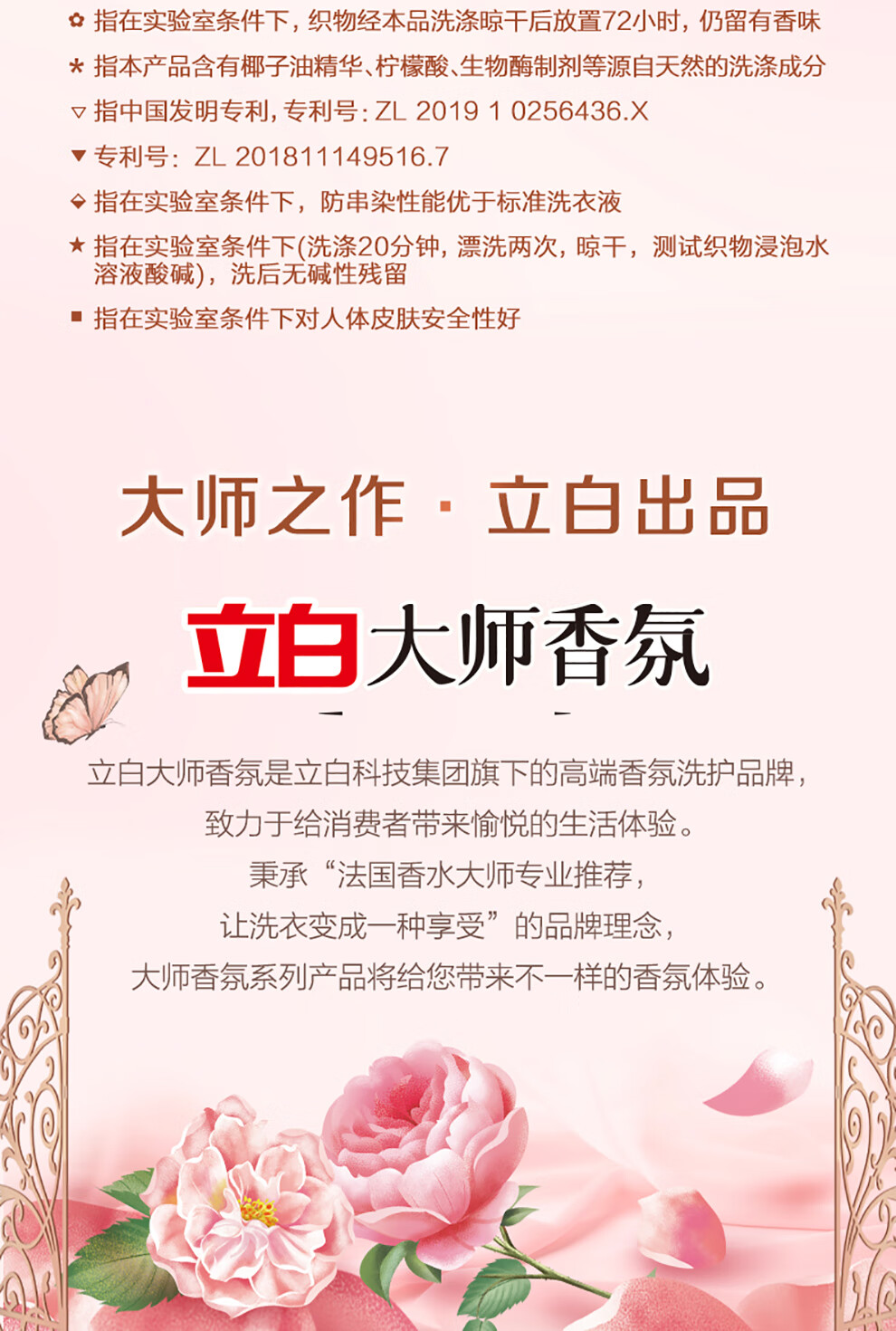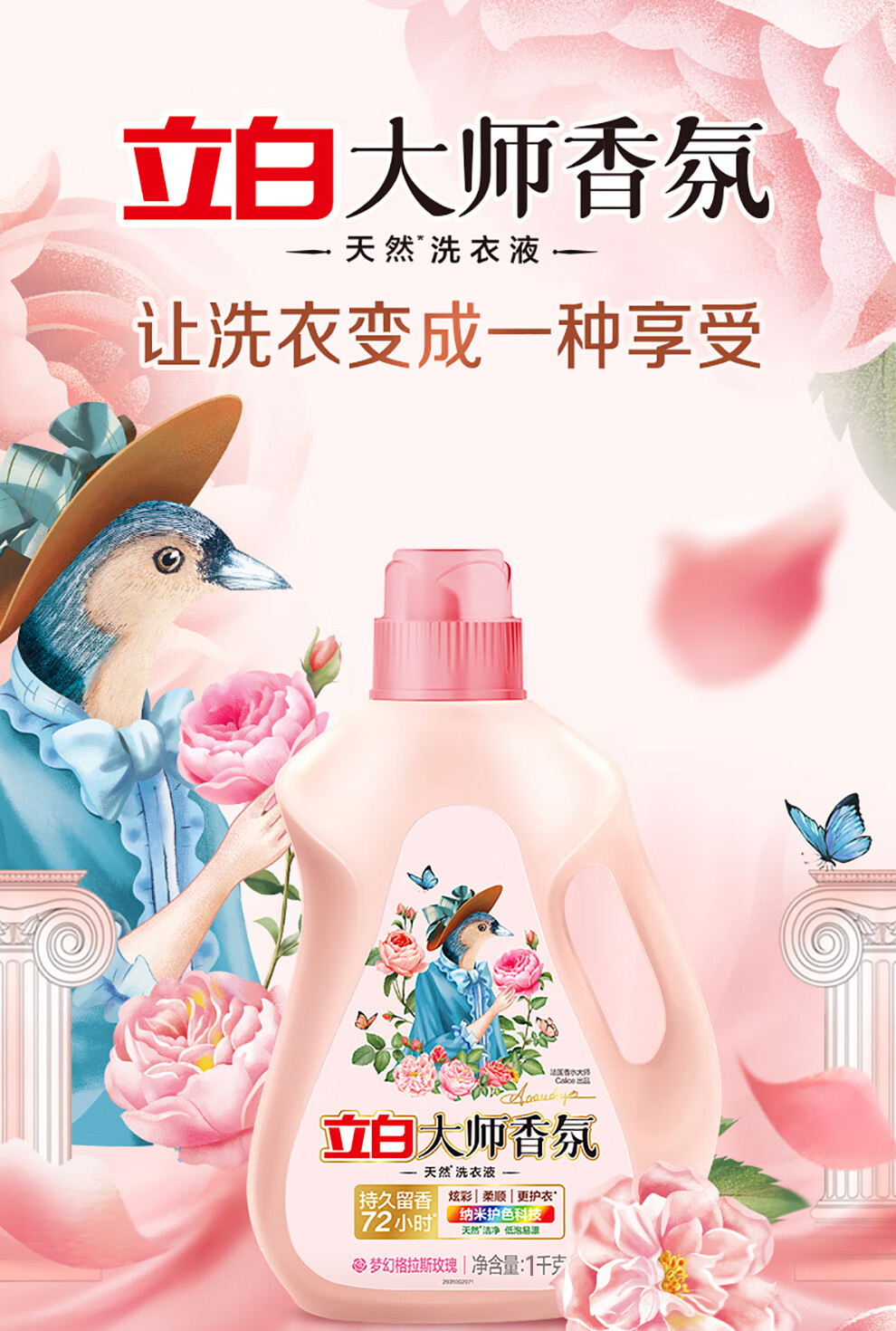 立白大师香氛洗衣液梦幻格拉斯玫瑰天然香型 4斤(1kg/瓶*2)大师香氛洗衣液
