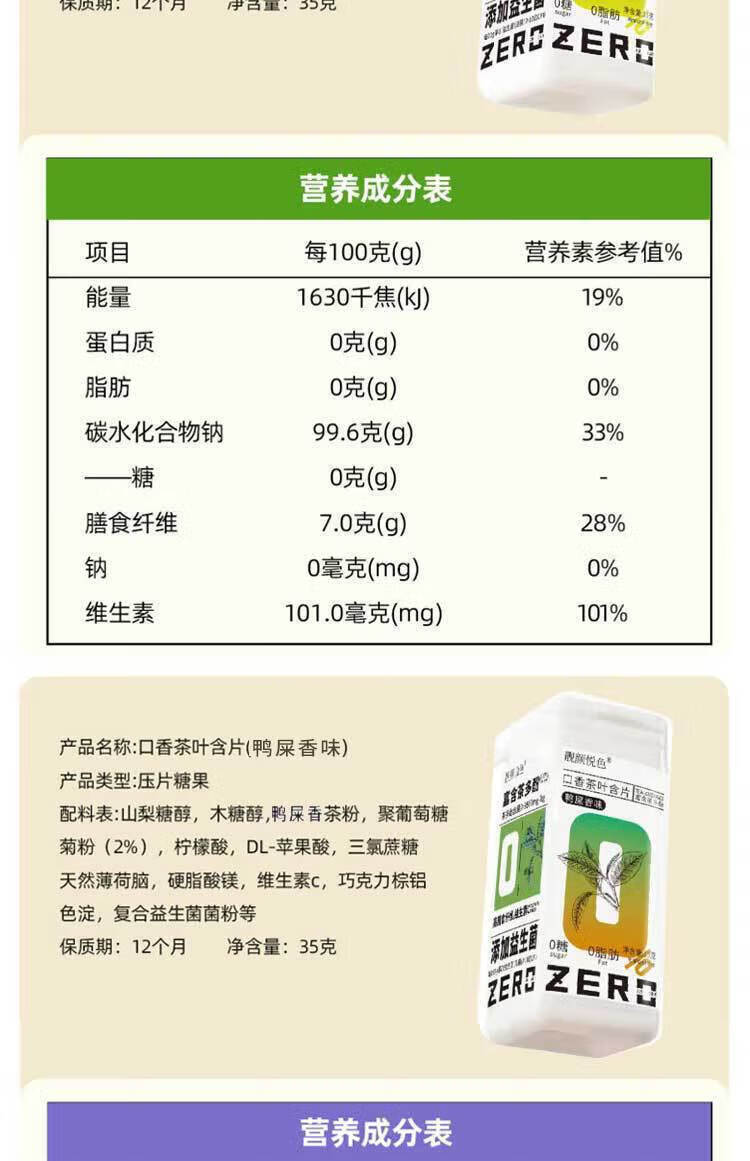 通用茶叶含片口气清新0蔗糖0脂茶多酚益生菌 鸭屎香茶1瓶