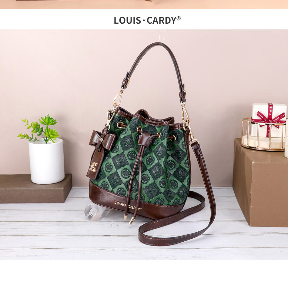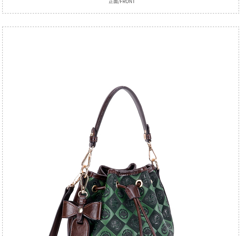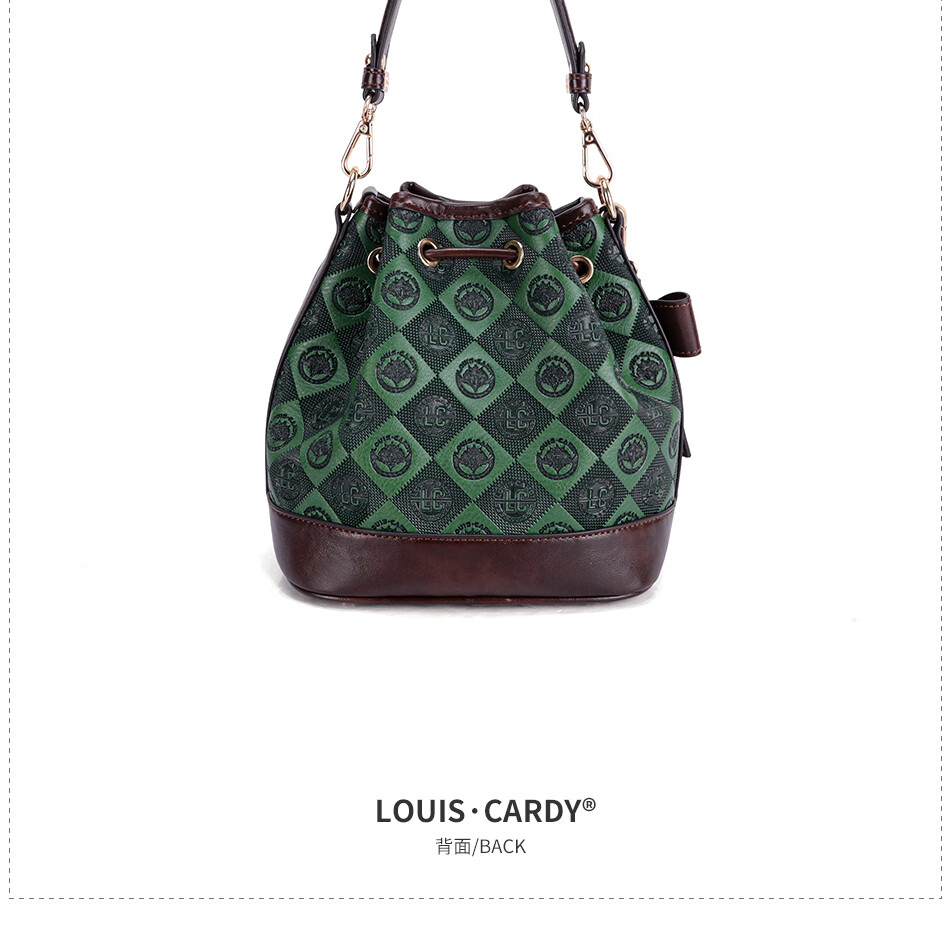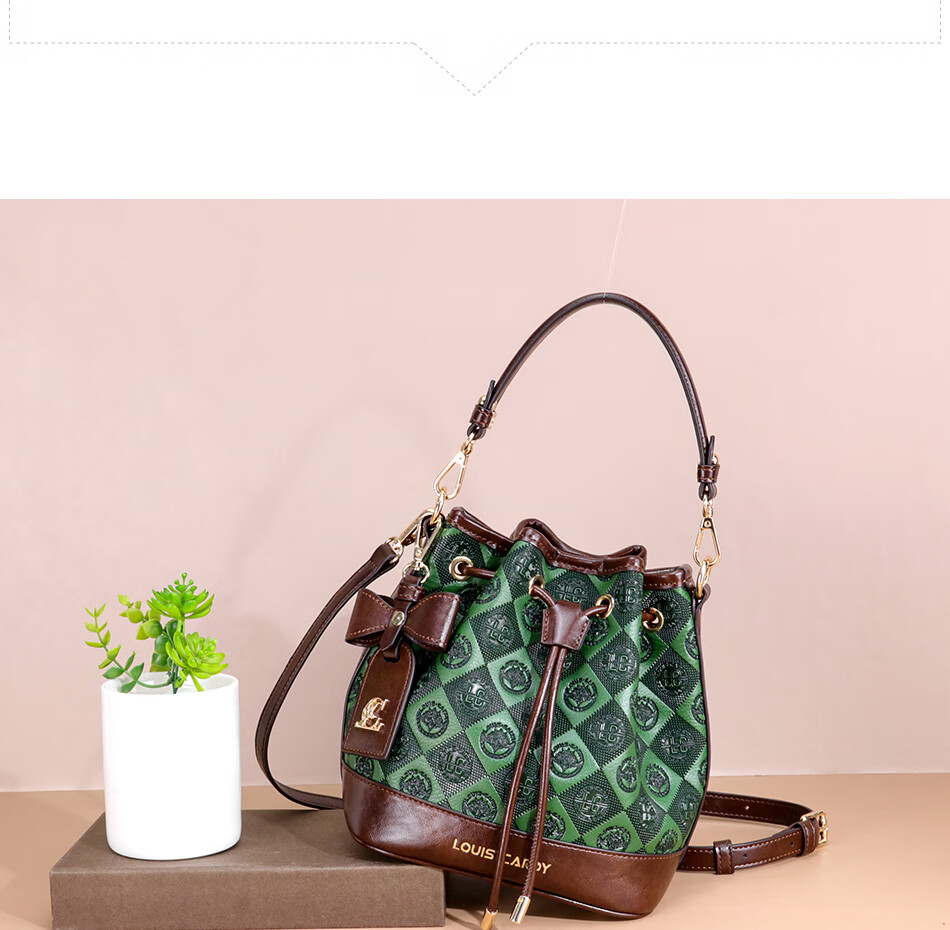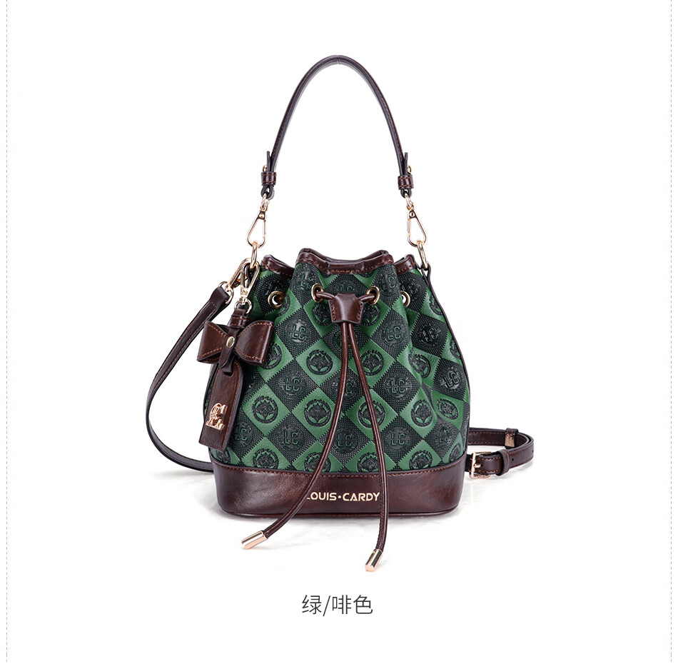 路易.卡迪水桶包 压花绿野仙棕拼色手提斜挎包送女友老婆圣诞元旦新年礼物 绿/啡色