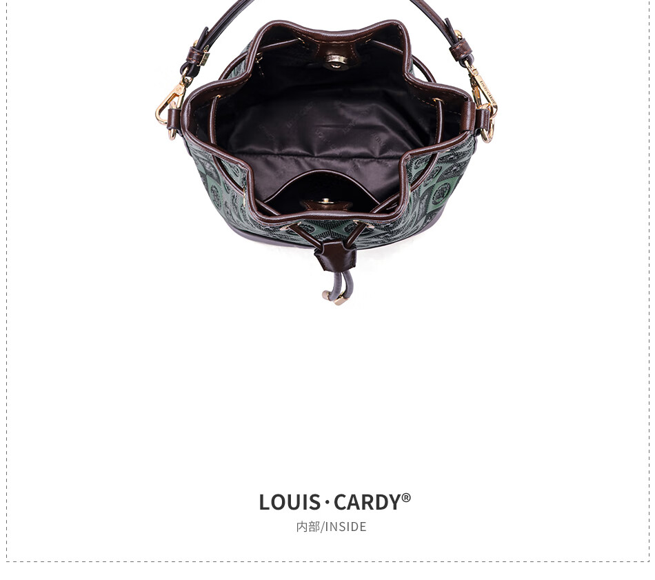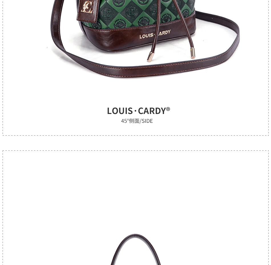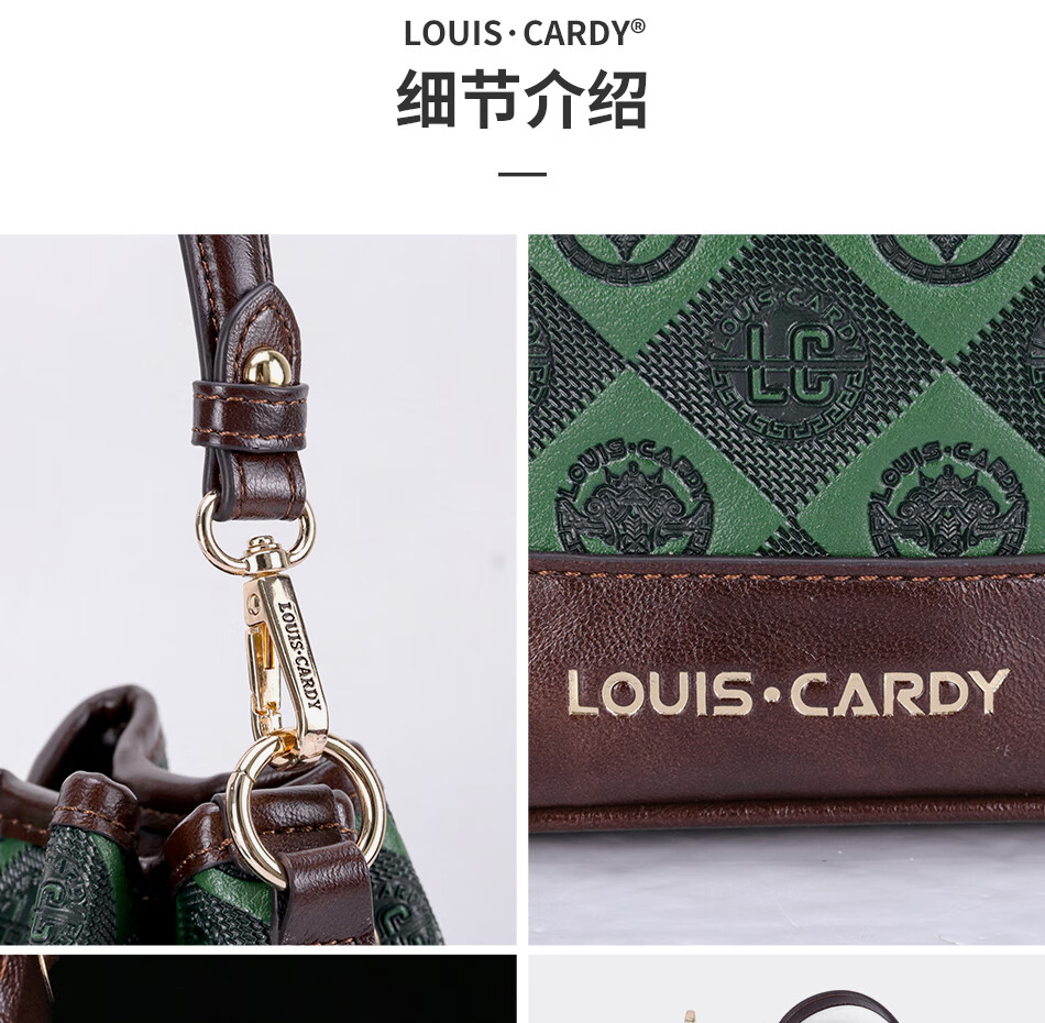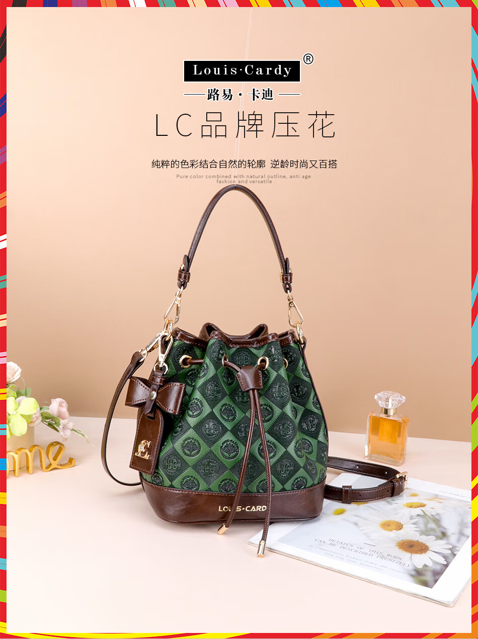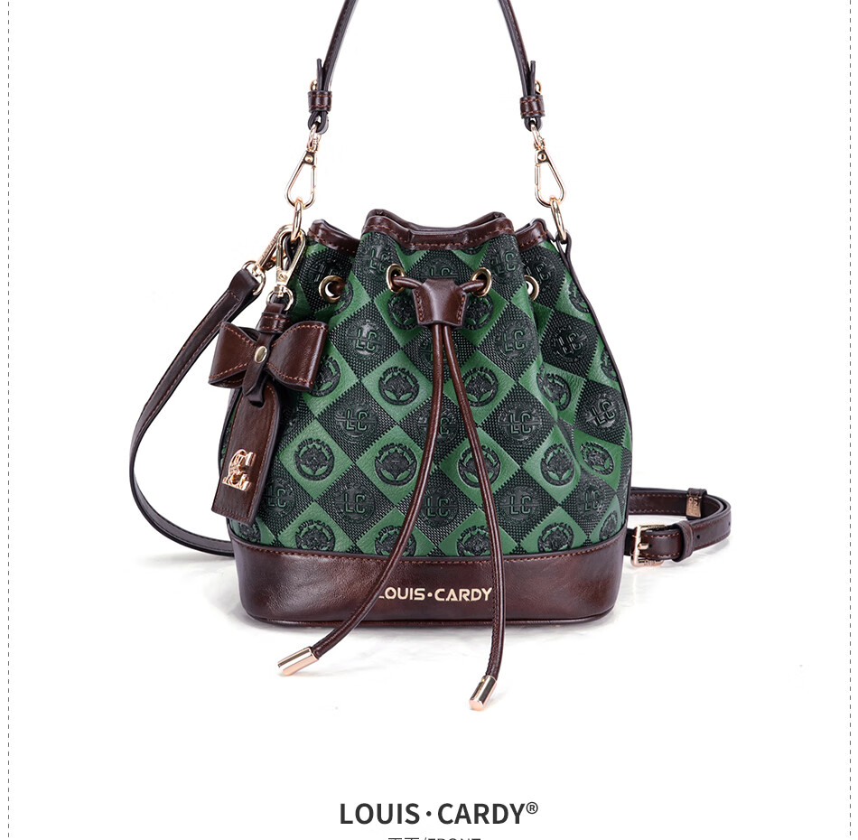 路易.卡迪水桶包 压花绿野仙棕拼色手提斜挎包送女友老婆圣诞元旦新年礼物 绿/啡色