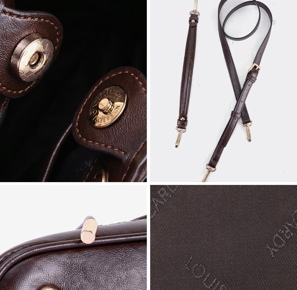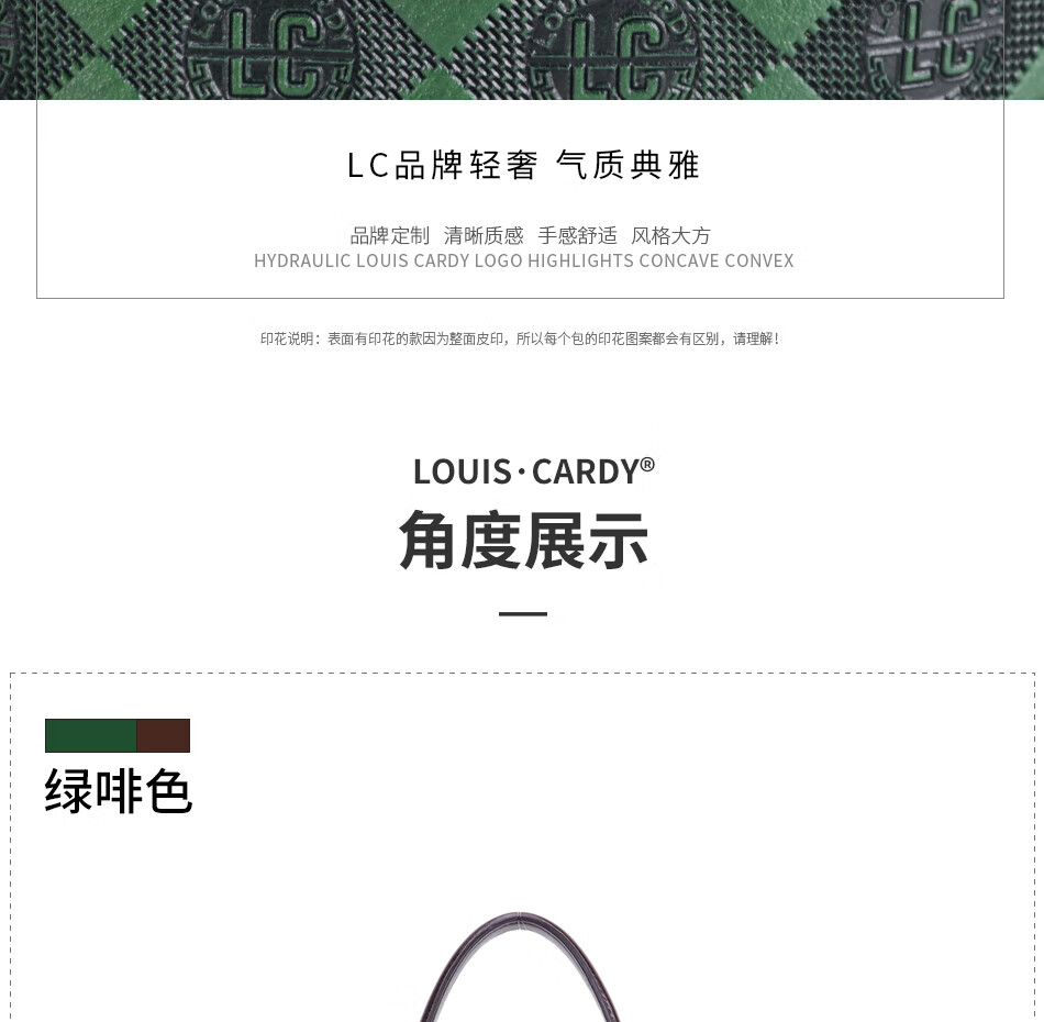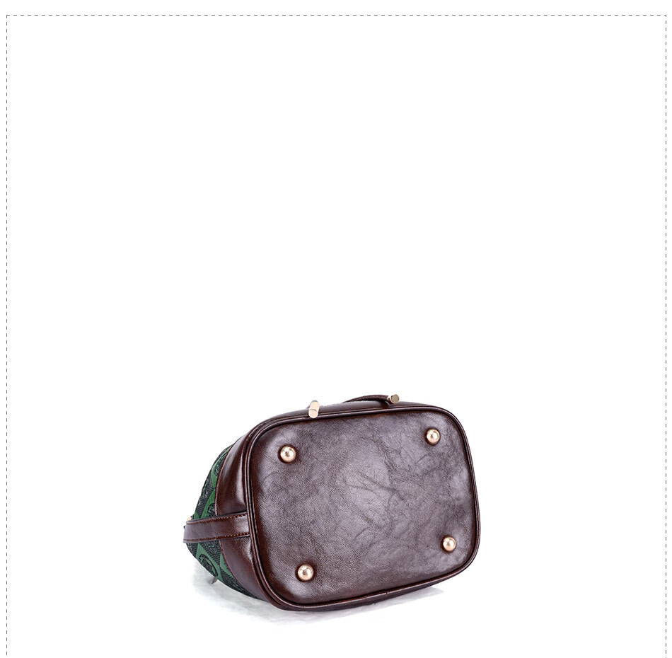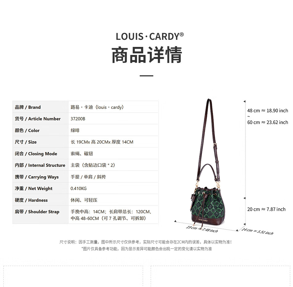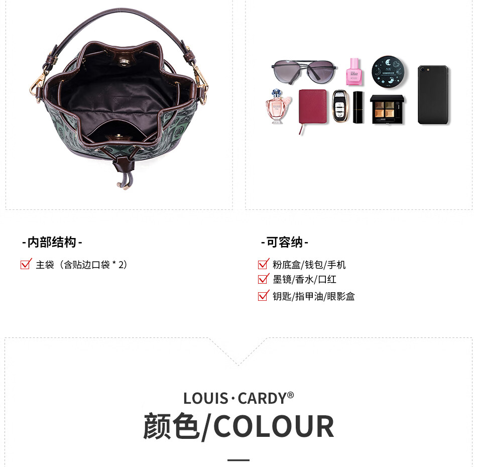 路易.卡迪水桶包 压花绿野仙棕拼色手提斜挎包送女友老婆圣诞元旦新年礼物 绿/啡色