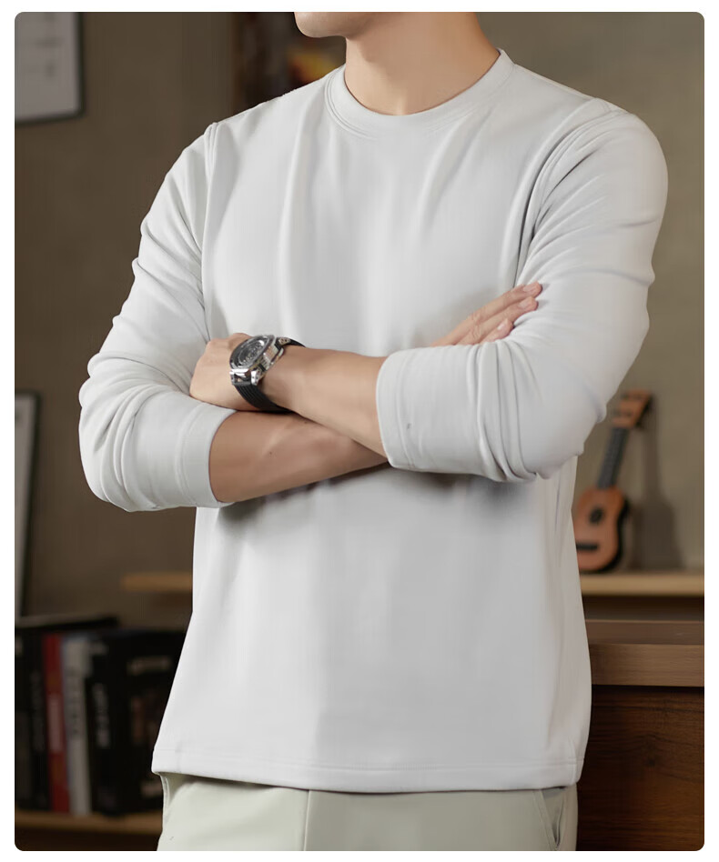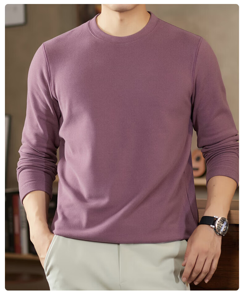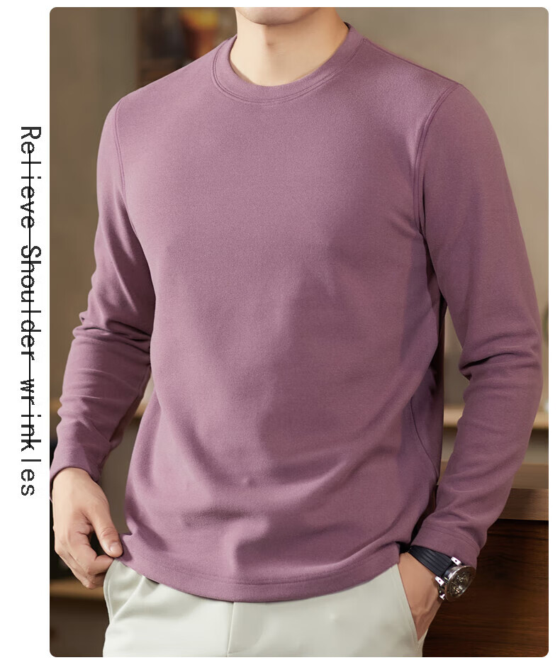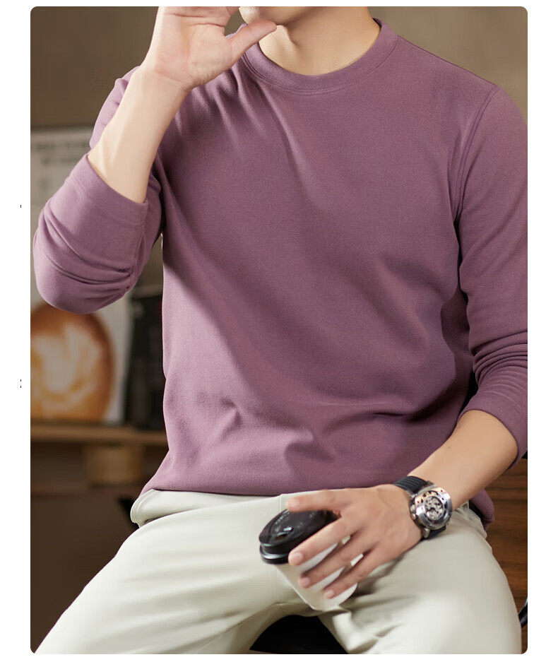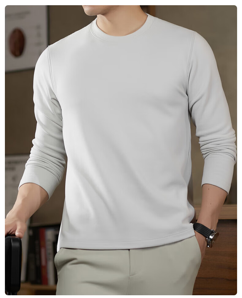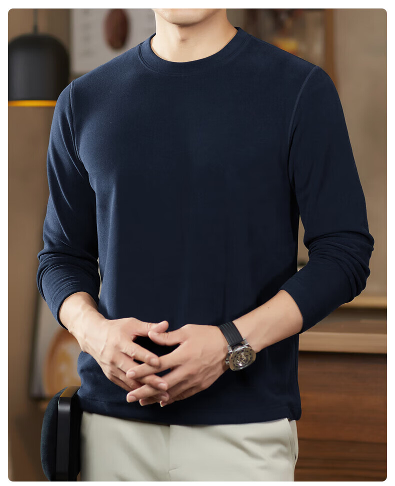 罗蒙(ROMON)驼绒长袖T恤男加绒含桑蚕丝莱赛尔圆领高弹2025秋季新款抗皱打底 浅驼 L (175)【建议120-135斤】