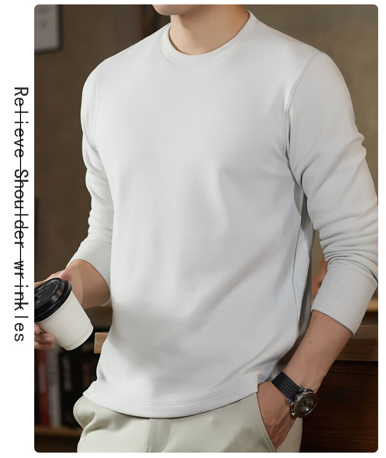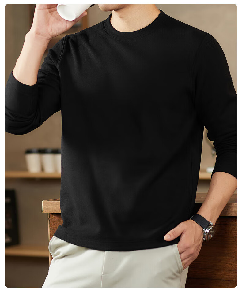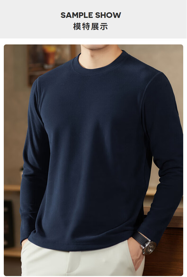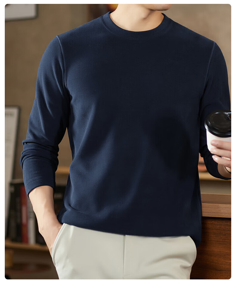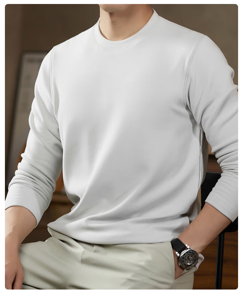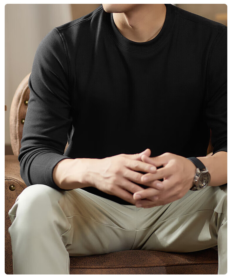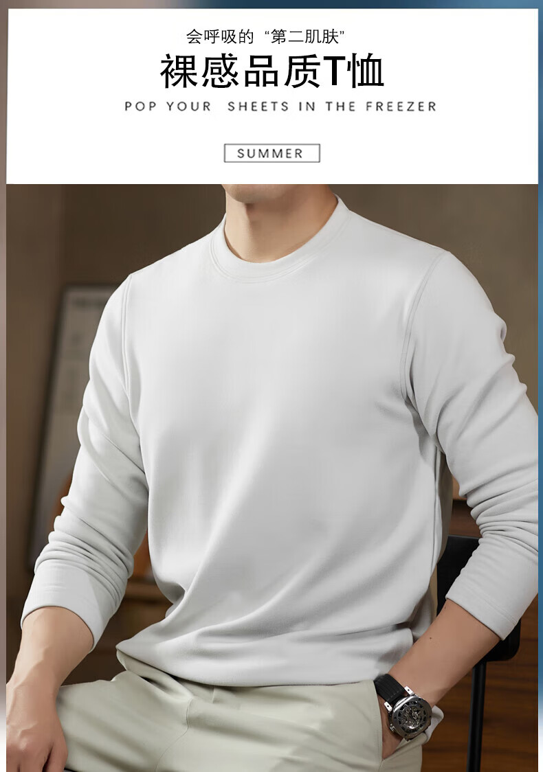 罗蒙(ROMON)驼绒长袖T恤男加绒含桑蚕丝莱赛尔圆领高弹2025秋季新款抗皱打底 浅驼 L (175)【建议120-135斤】
