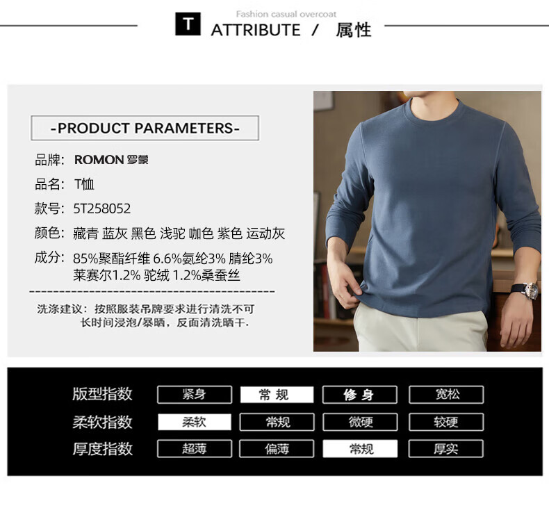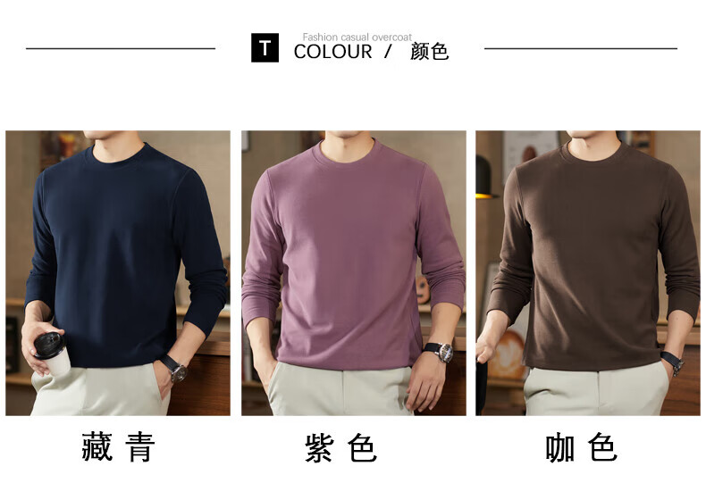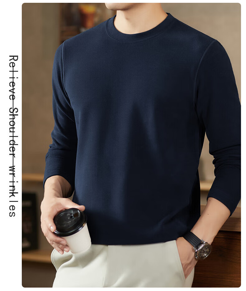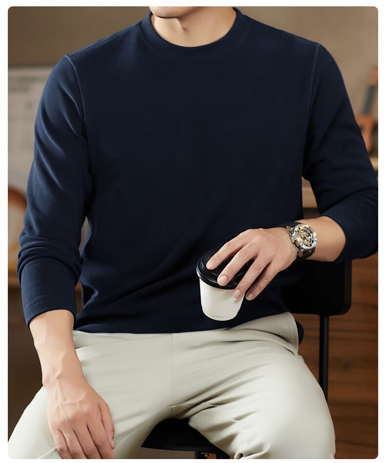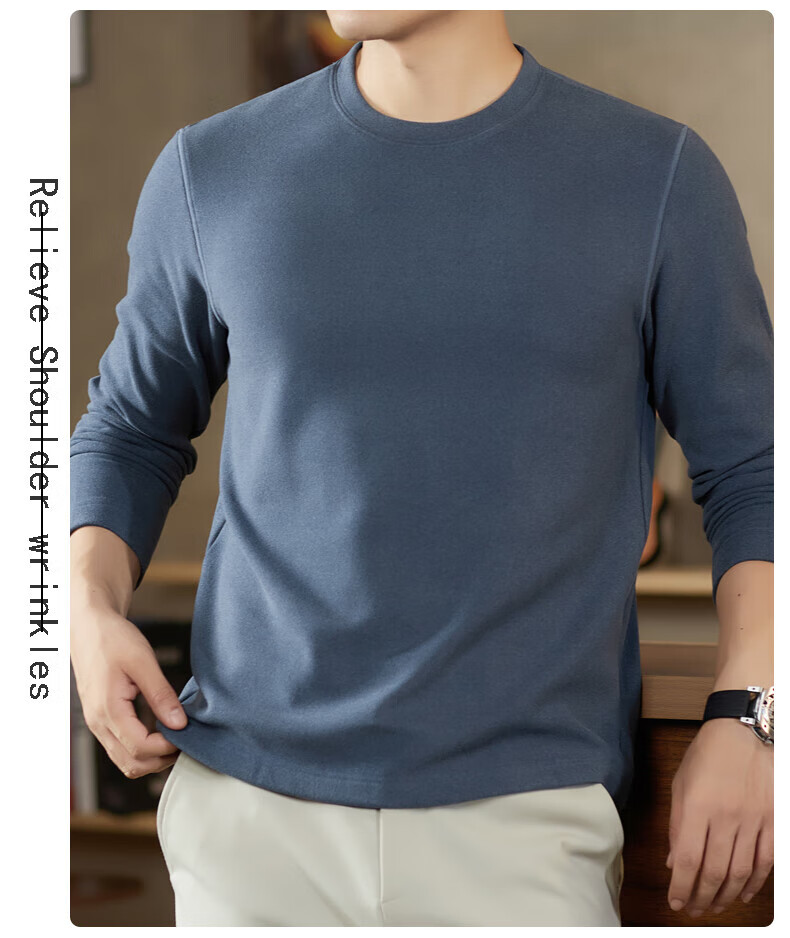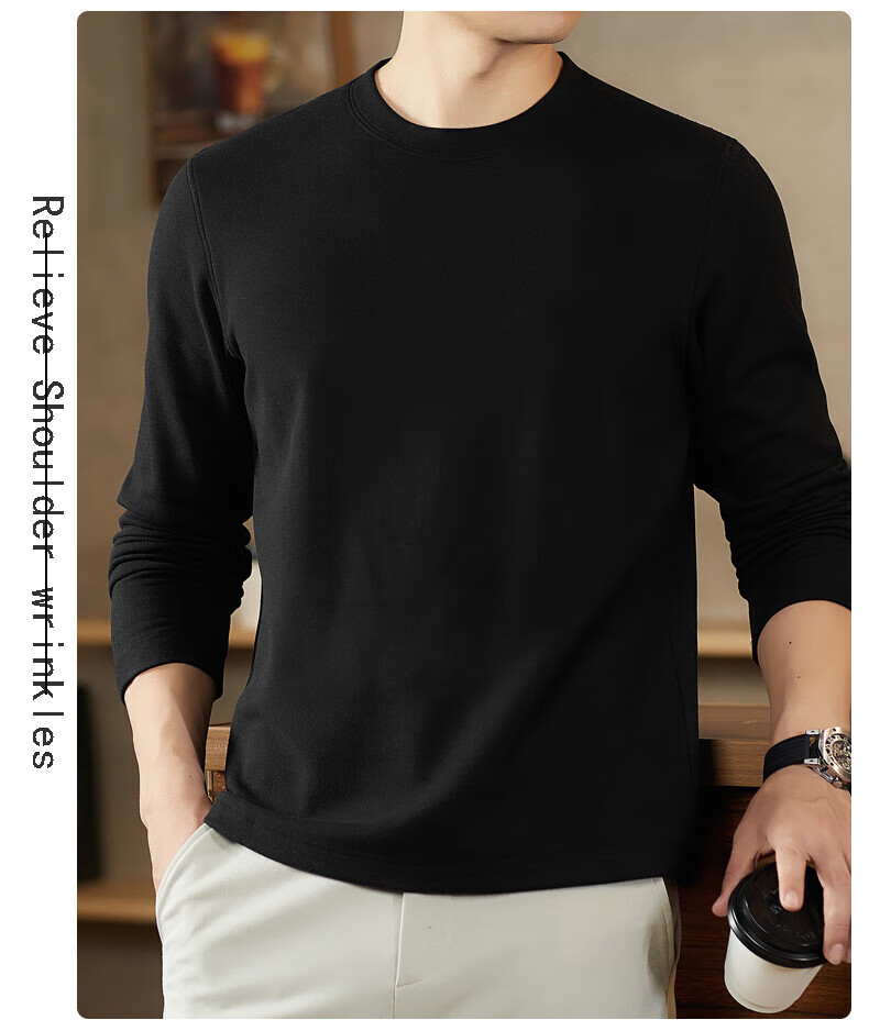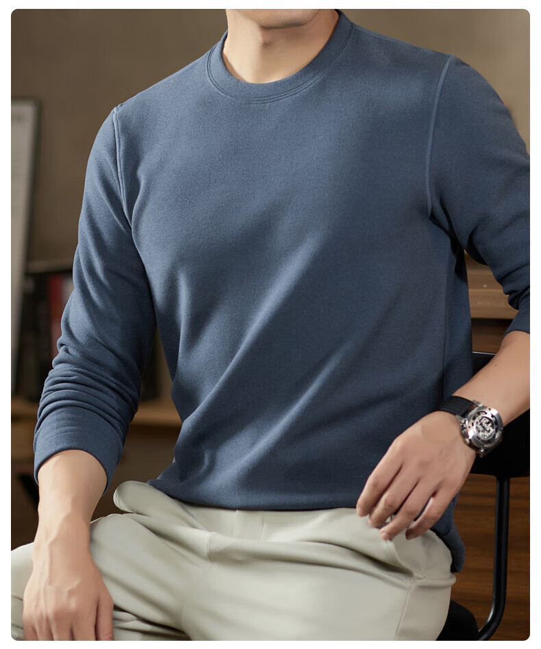 罗蒙(ROMON)驼绒长袖T恤男加绒含桑蚕丝莱赛尔圆领高弹2025秋季新款抗皱打底 浅驼 L (175)【建议120-135斤】