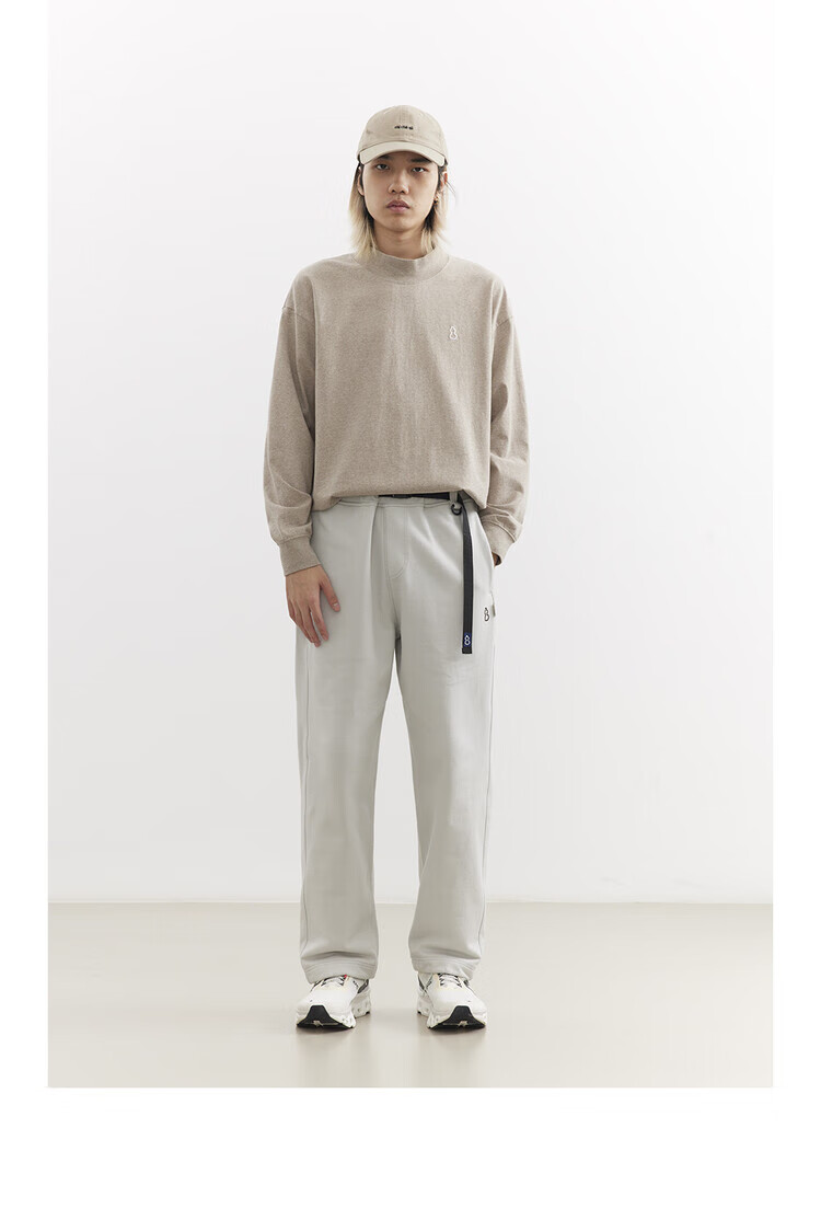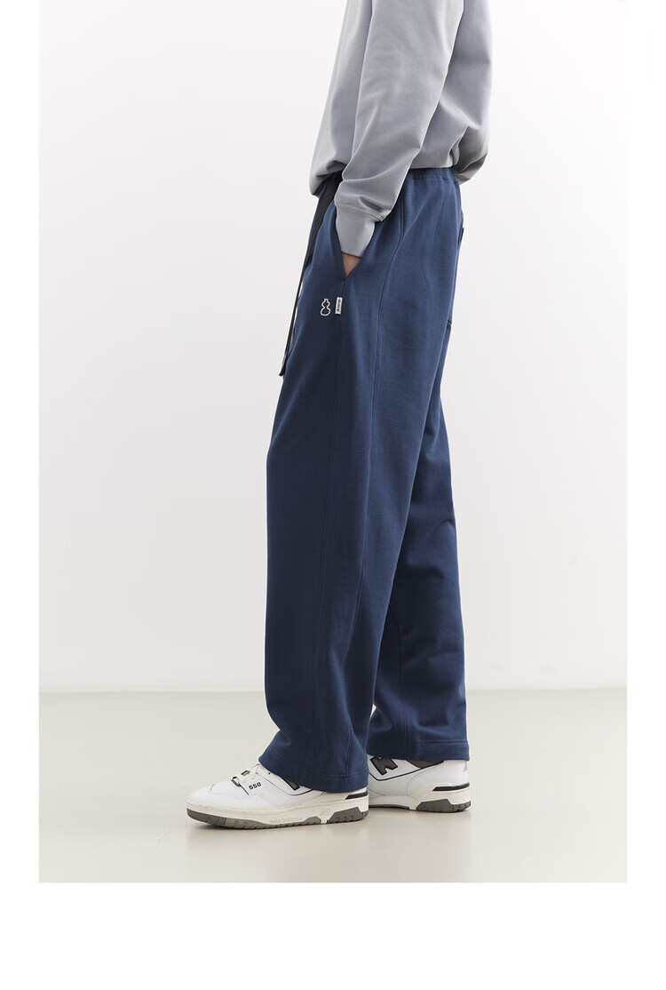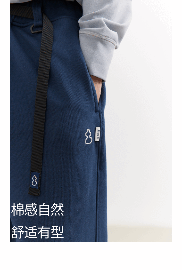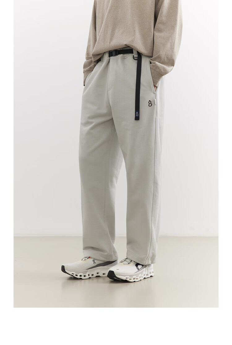 chichaqu吃茶去25经典全棉宽松直筒卡扣长卫裤复古运动休闲百搭 浅灰 XL
