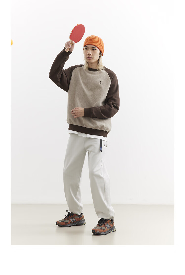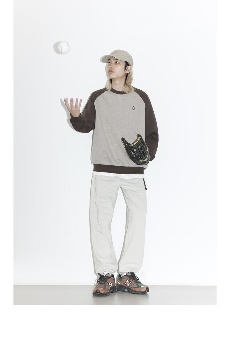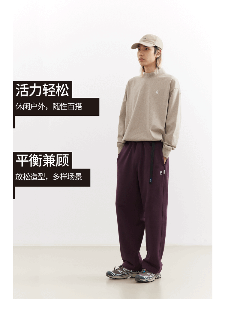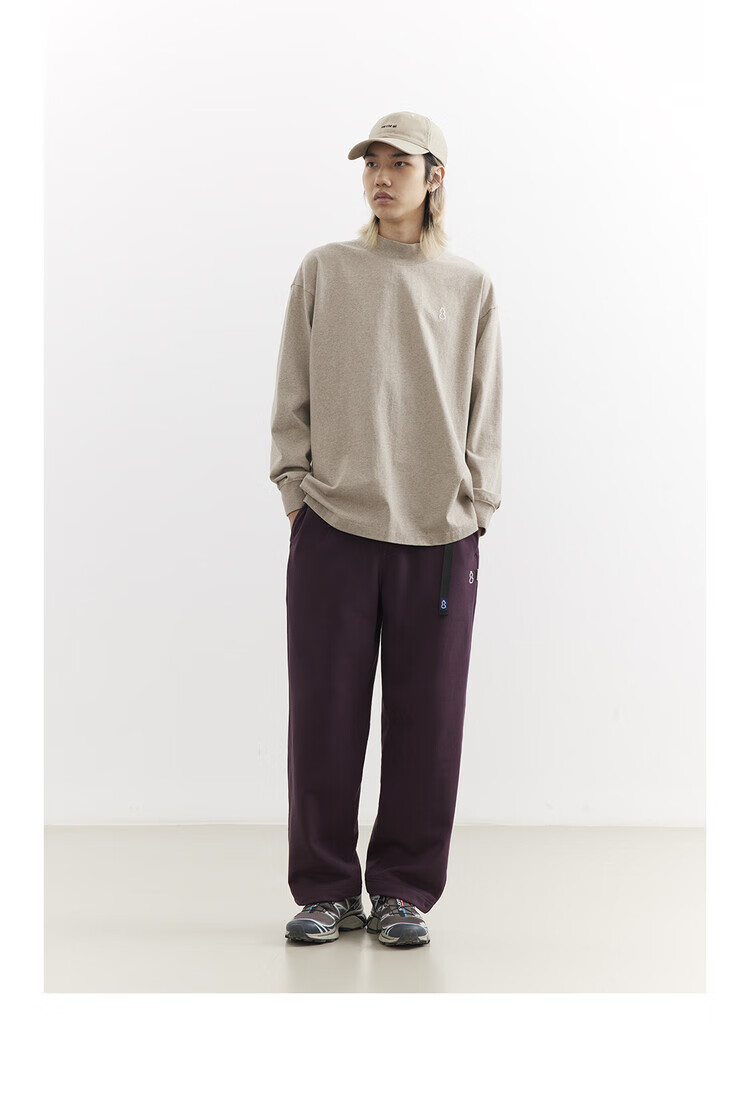 chichaqu吃茶去25经典全棉宽松直筒卡扣长卫裤复古运动休闲百搭 浅灰 XL