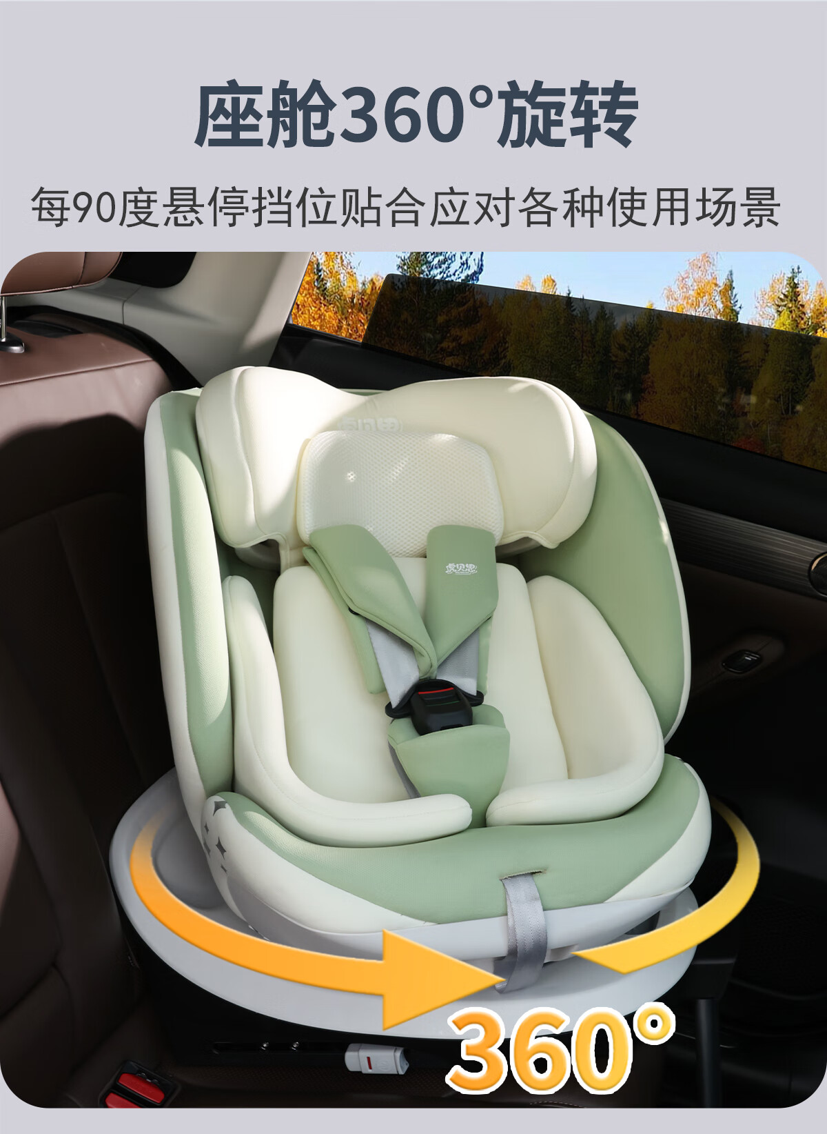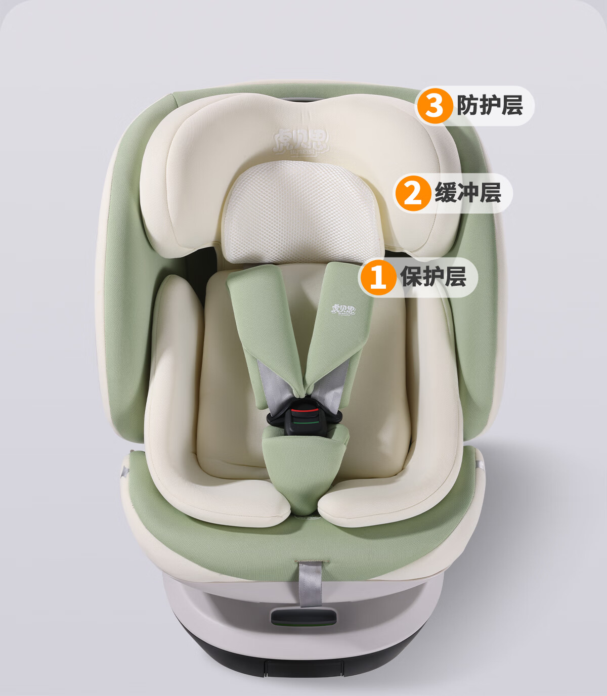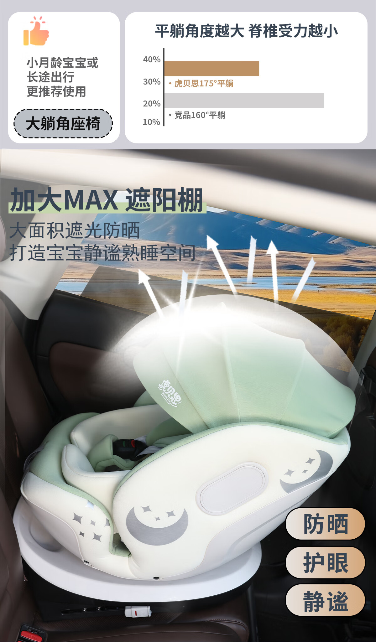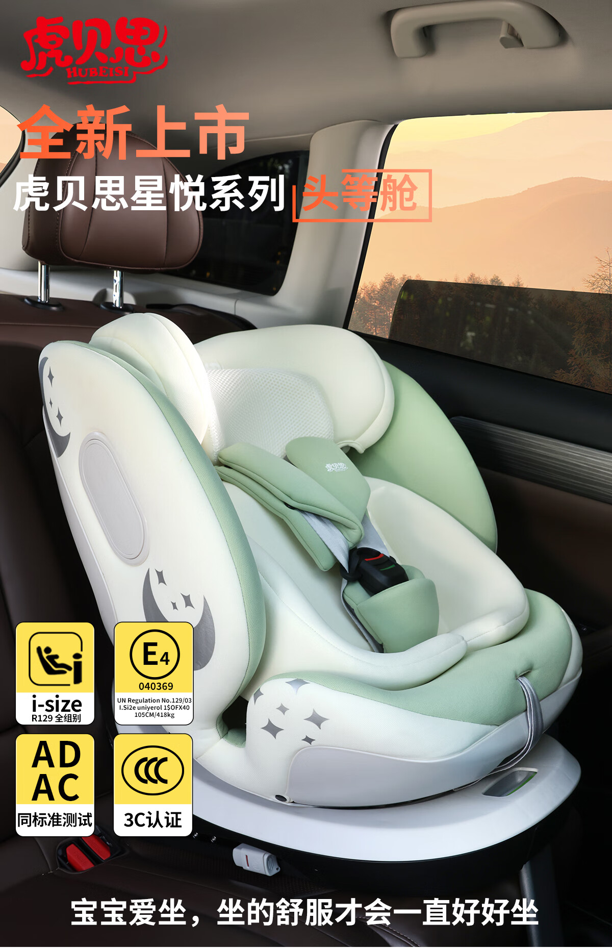 虎贝思星悦儿童安全座椅汽车用婴儿宝宝智能通风车载可坐躺0-12岁 星悦-MAX通风加热【胖嘟嘟】(绿色)
