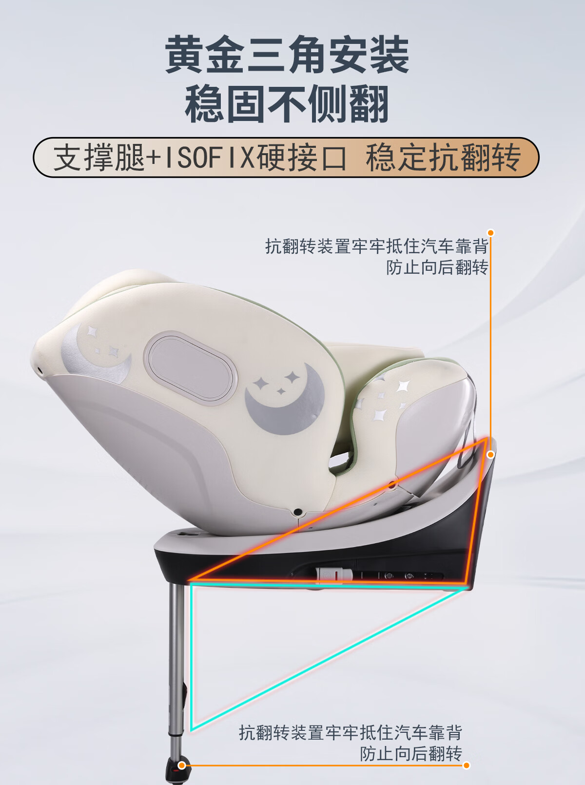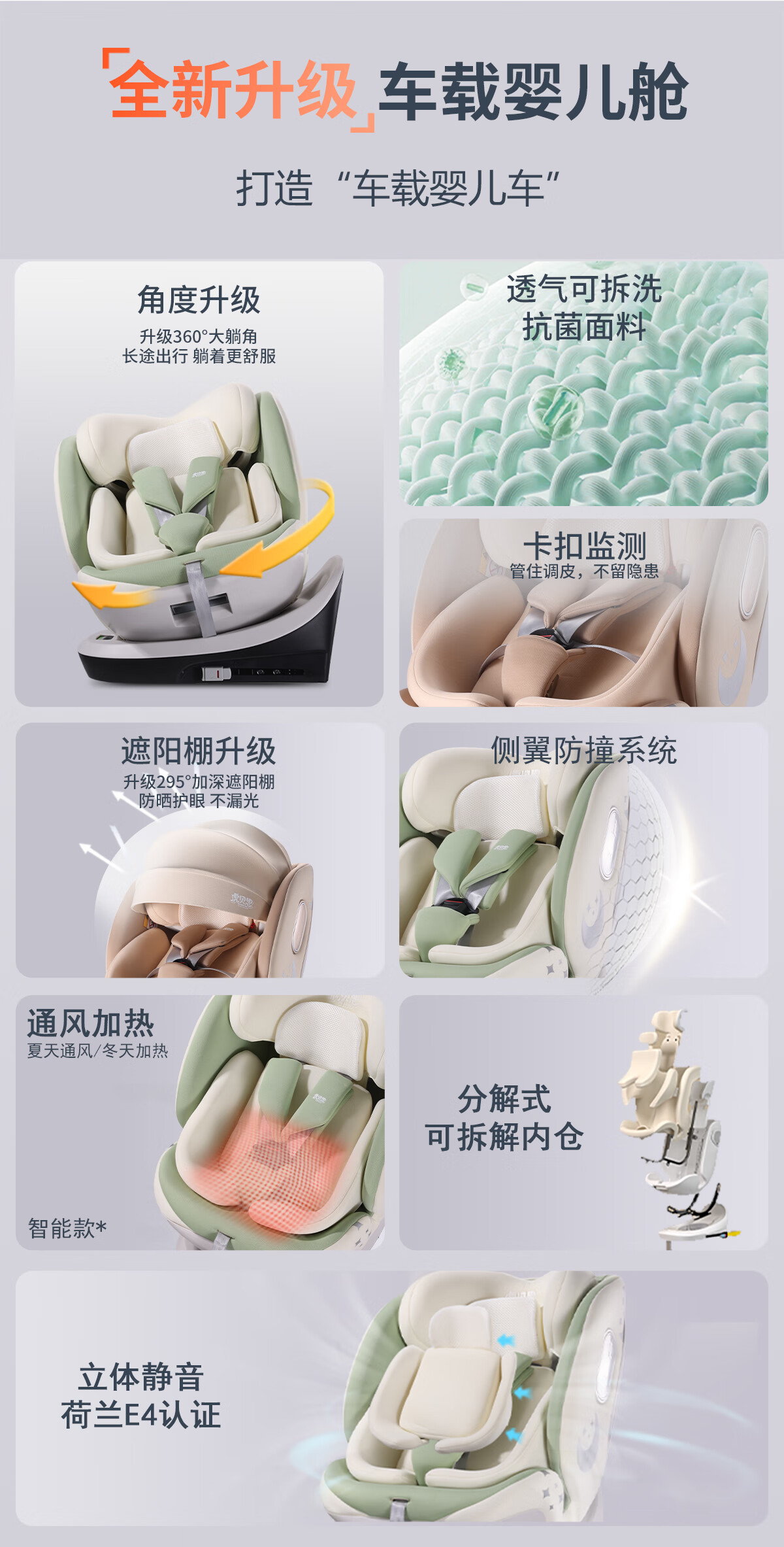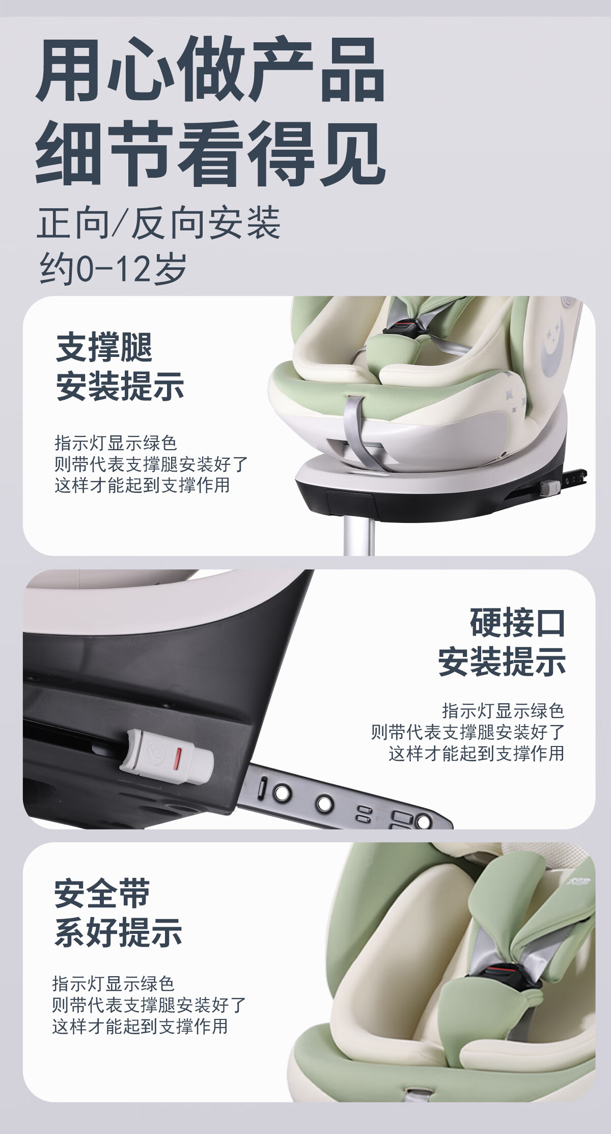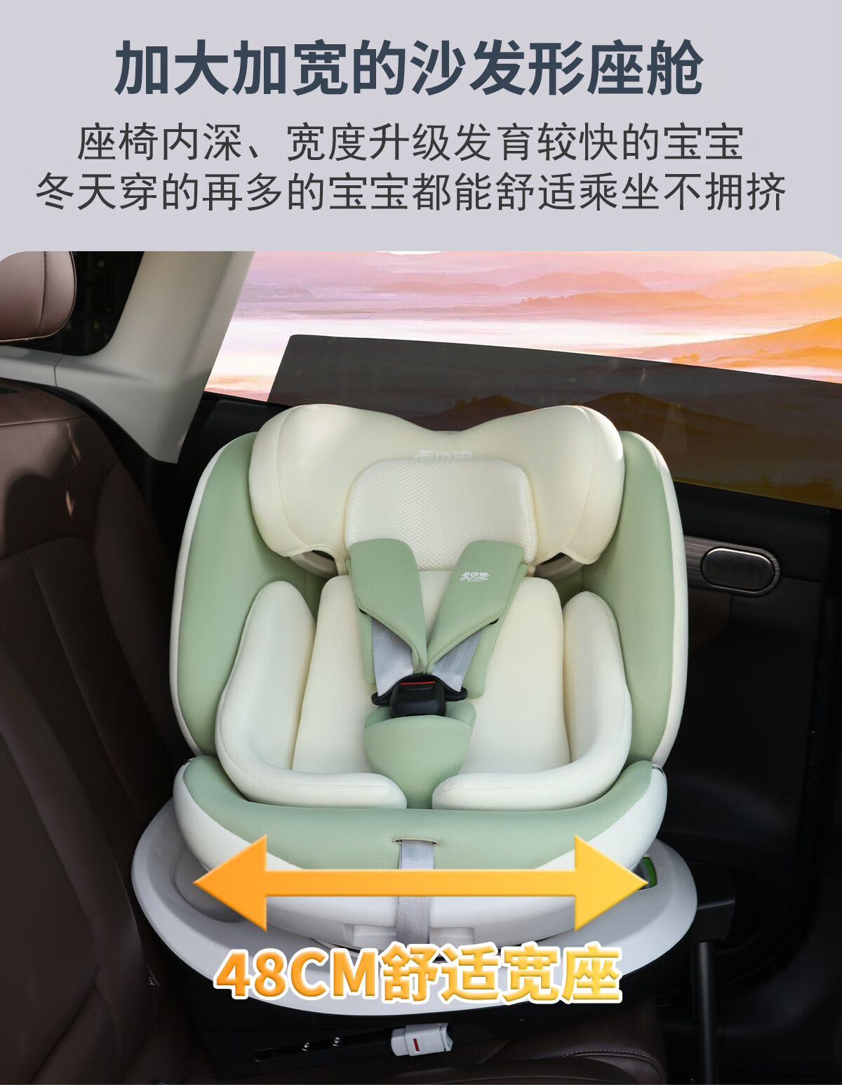 虎贝思星悦儿童安全座椅汽车用婴儿宝宝智能通风车载可坐躺0-12岁 星悦-MAX通风加热【胖嘟嘟】(绿色)