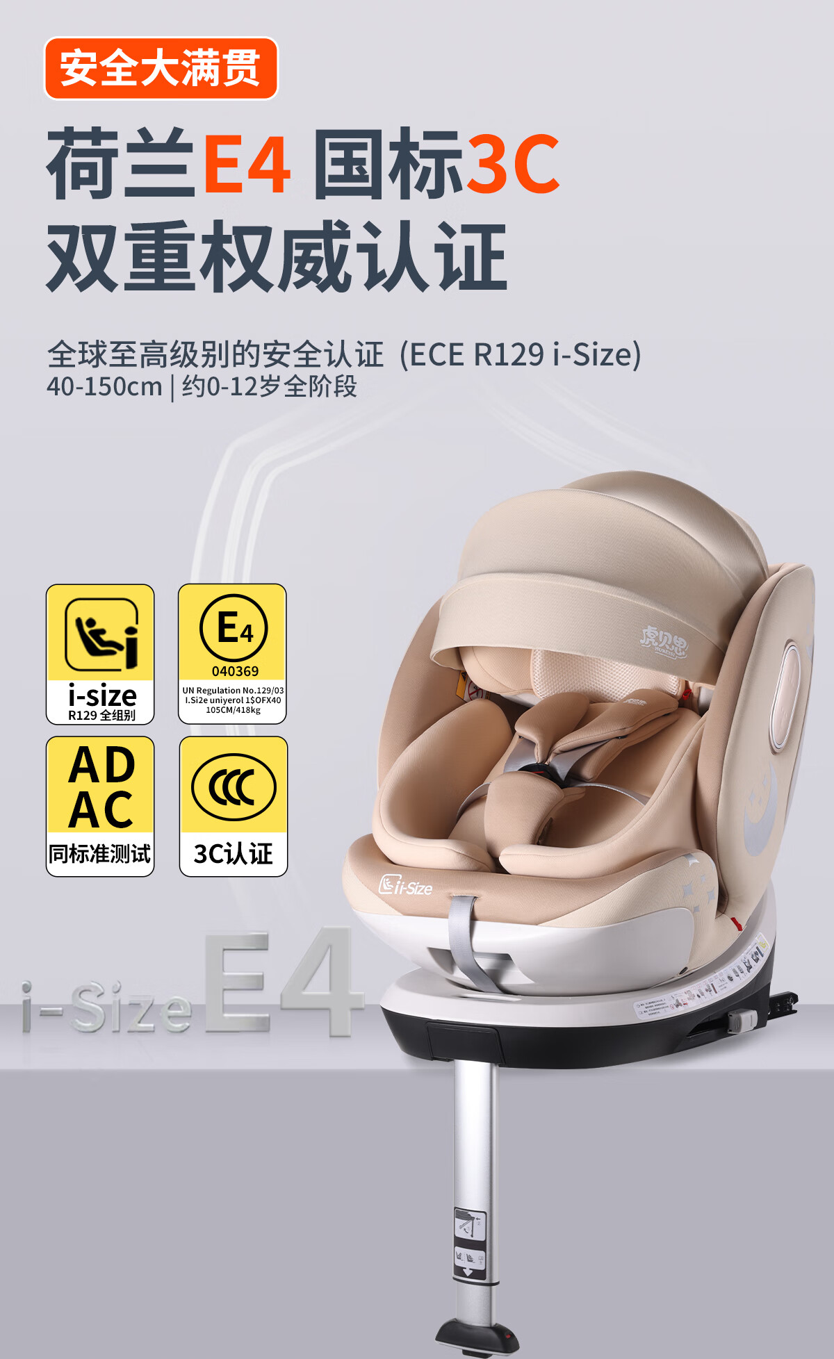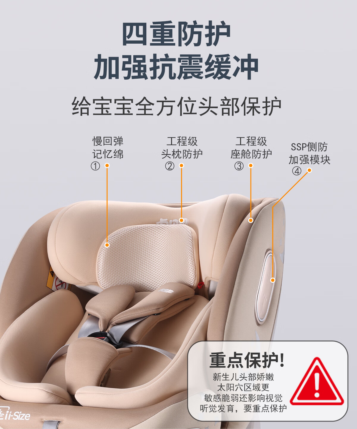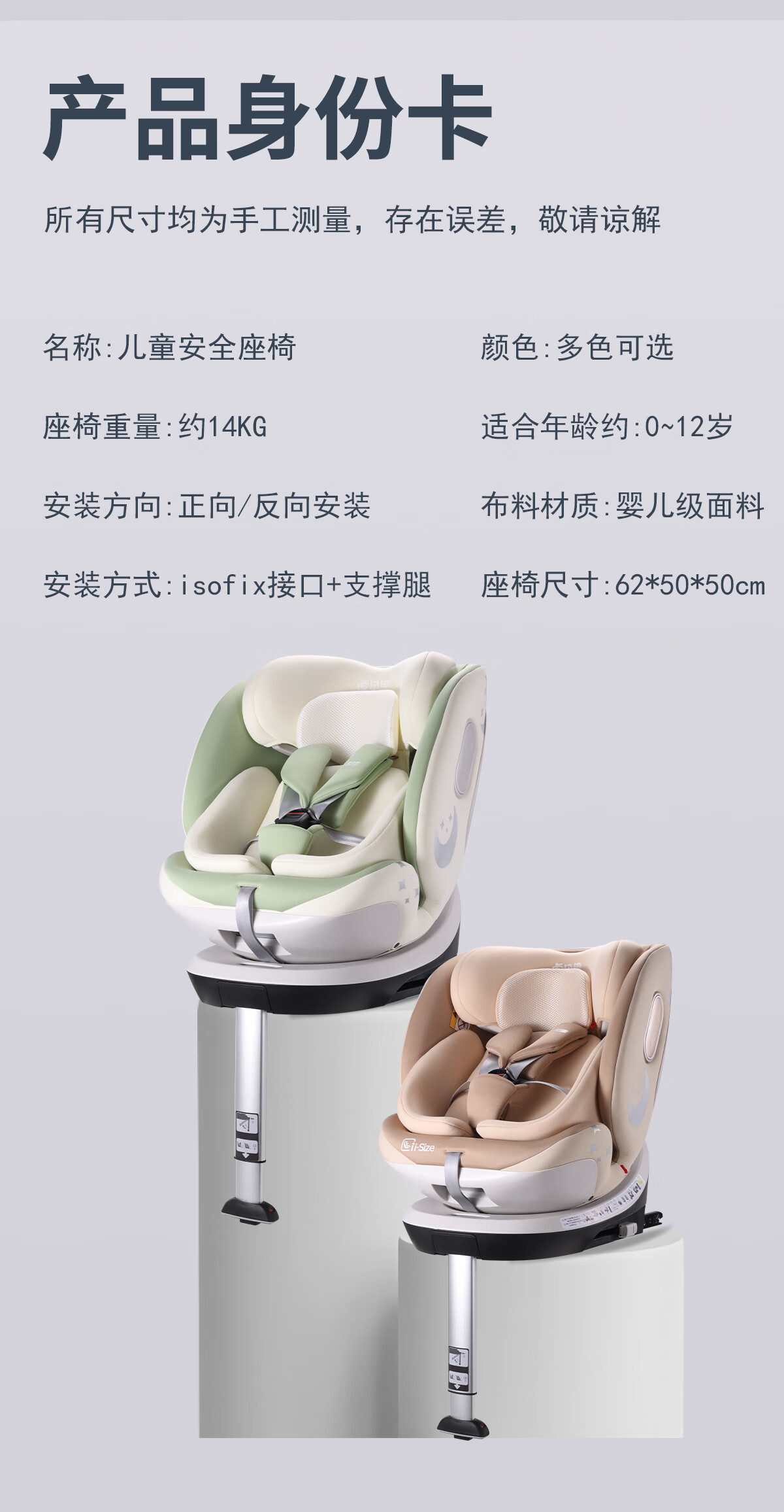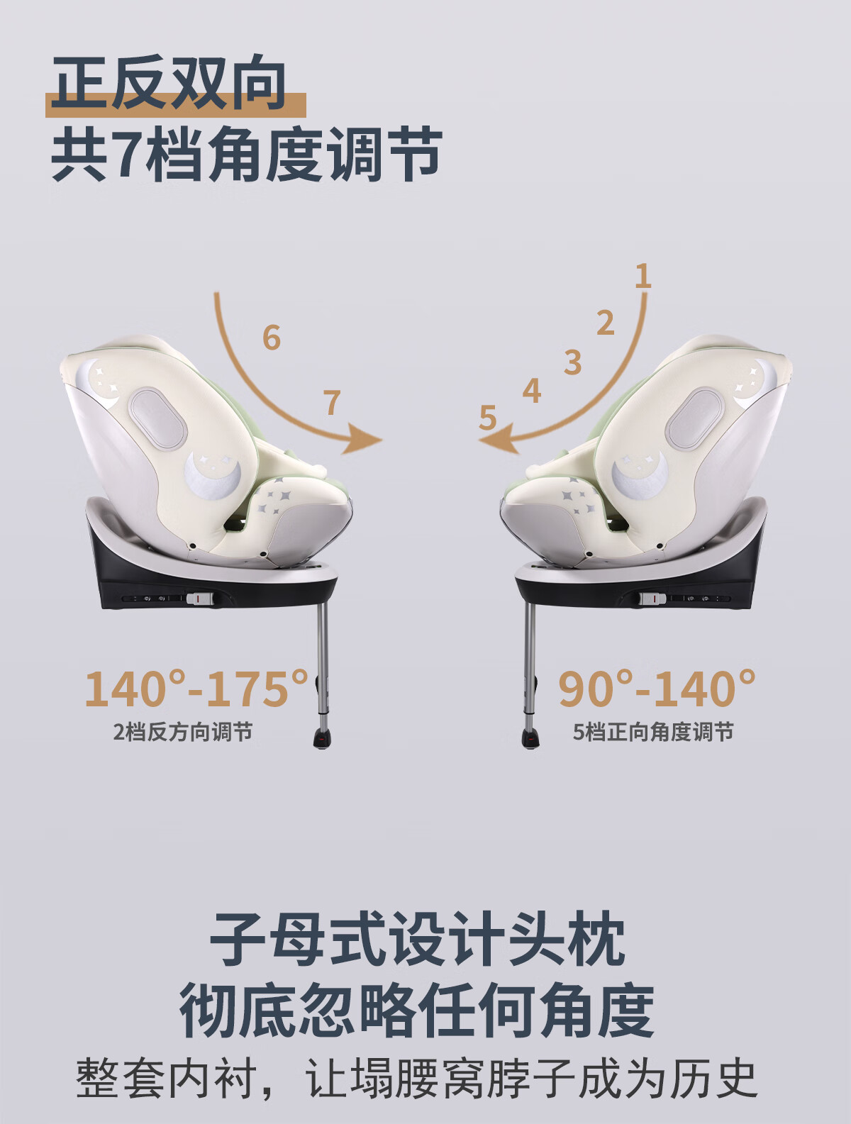 虎贝思星悦儿童安全座椅汽车用婴儿宝宝智能通风车载可坐躺0-12岁 星悦-MAX通风加热【胖嘟嘟】(绿色)