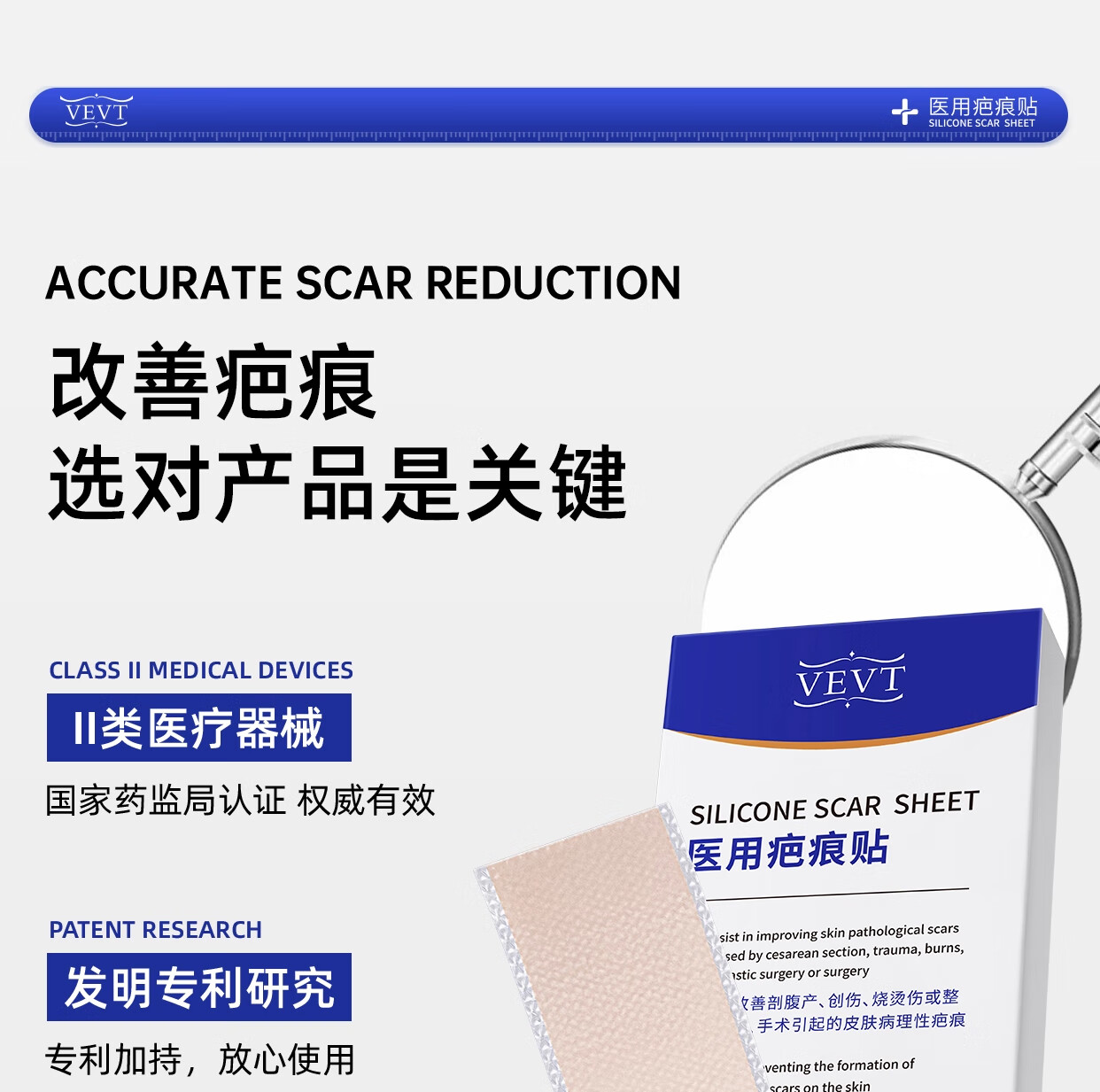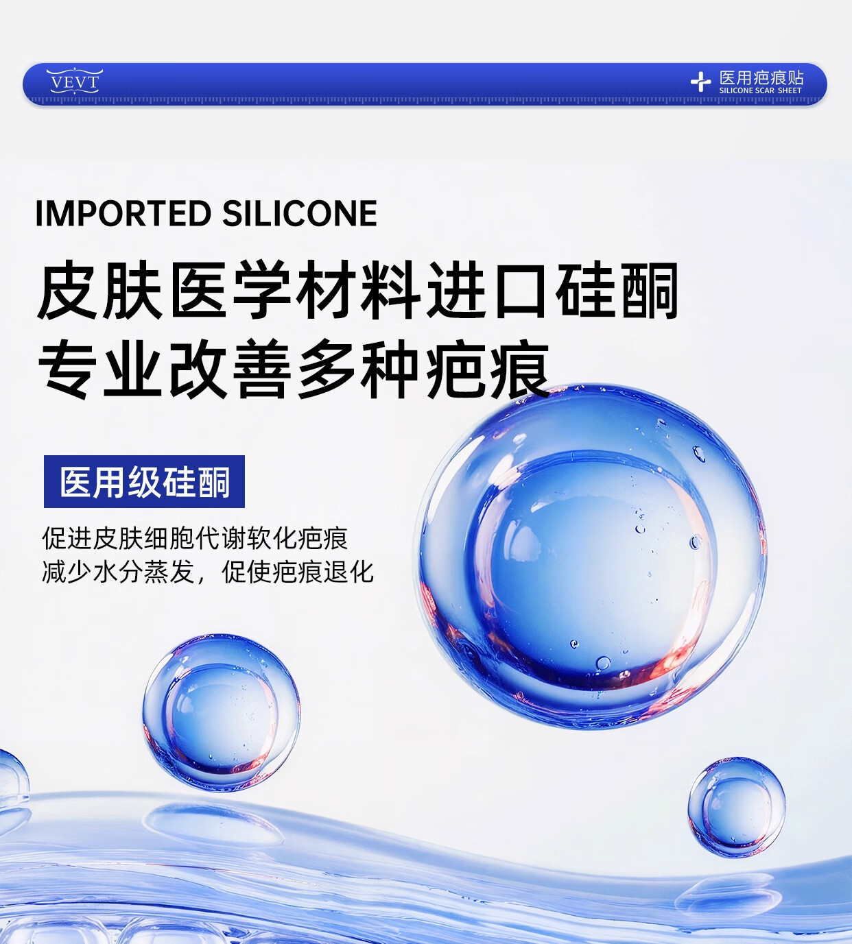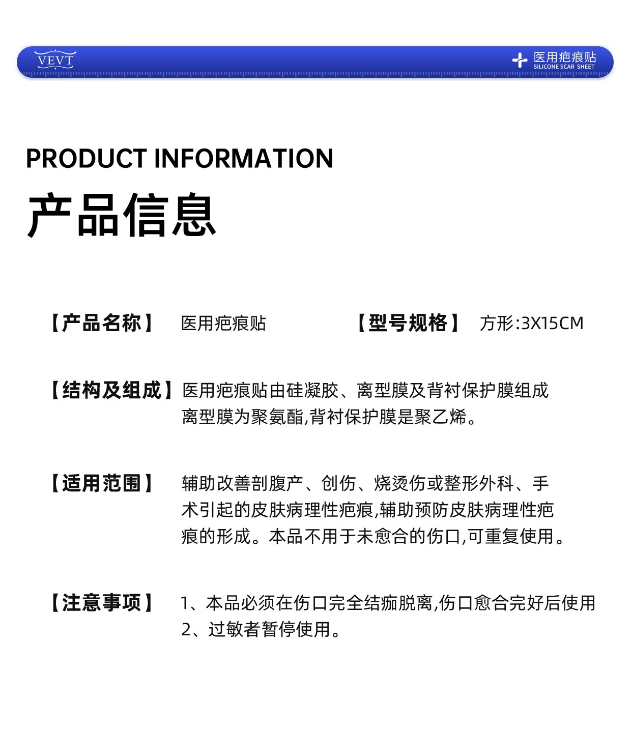 VEVT疤痕贴VVT硅酮贴EVT小蓝板剖腹产疤痕贴硅酮改善疤痕 一盒装(新生疤痕)